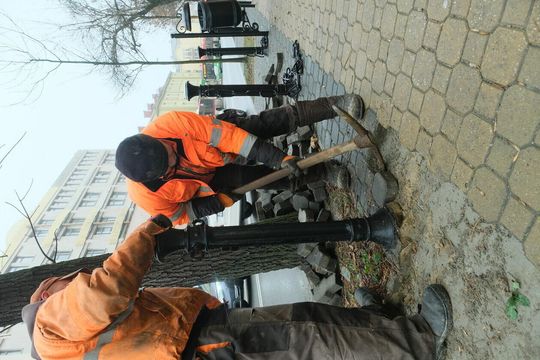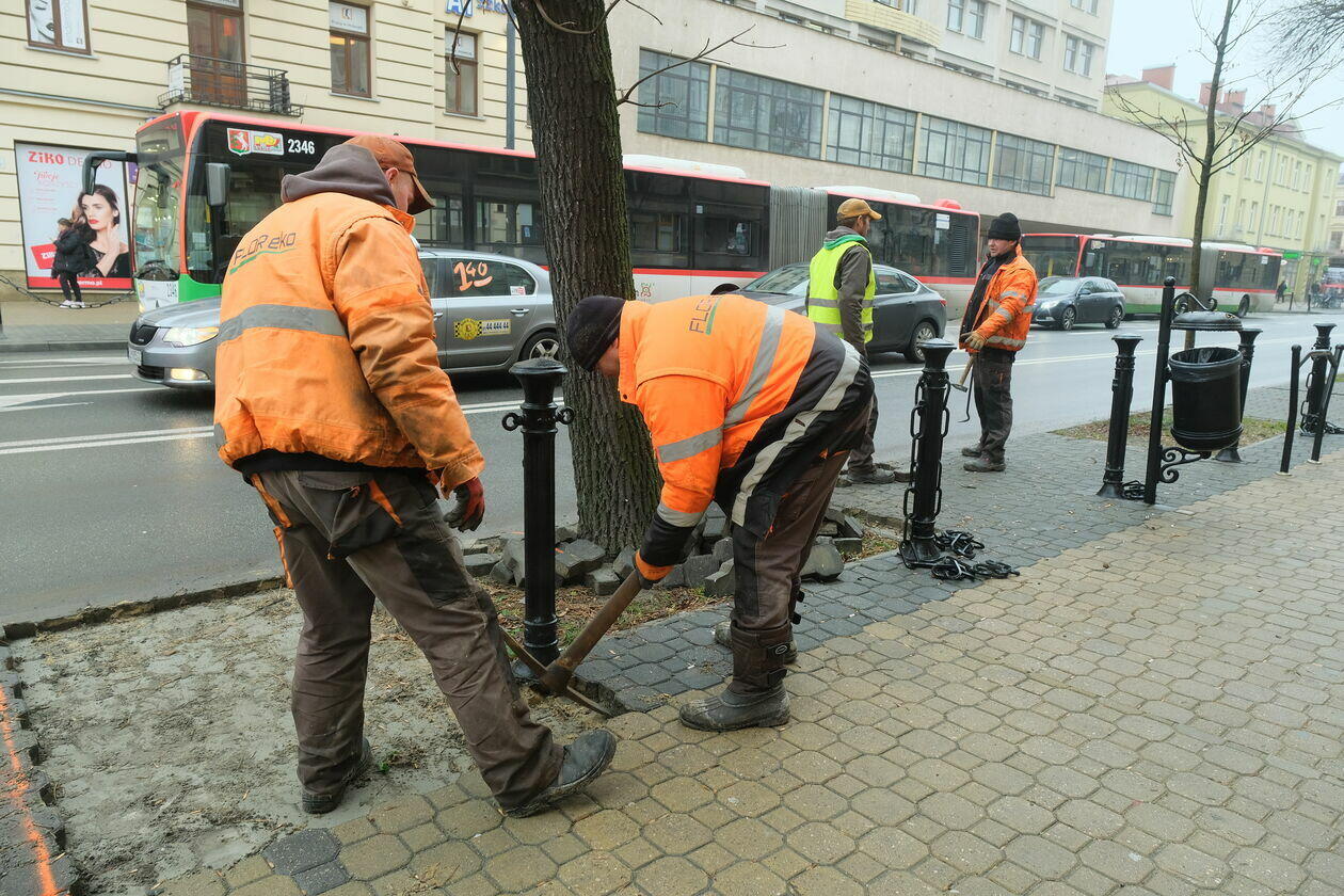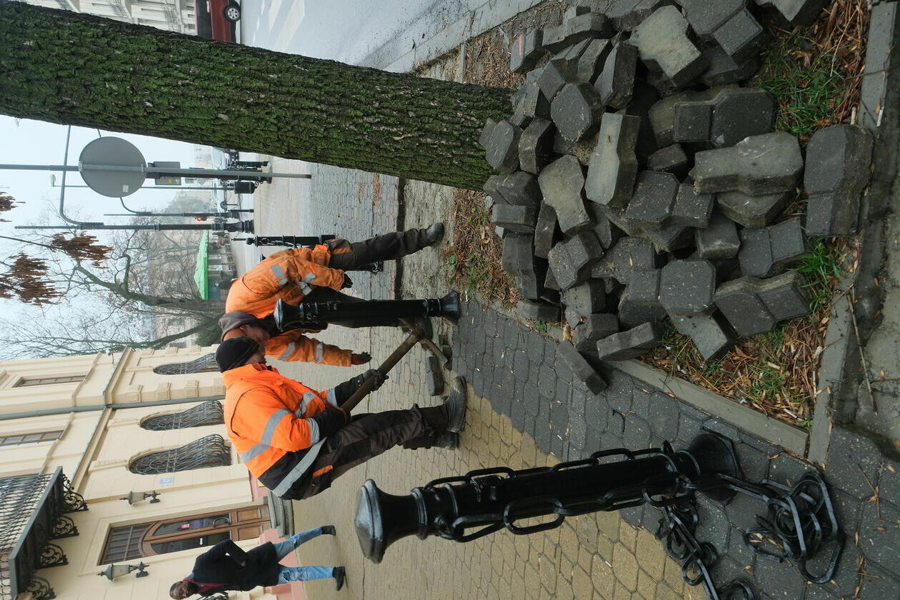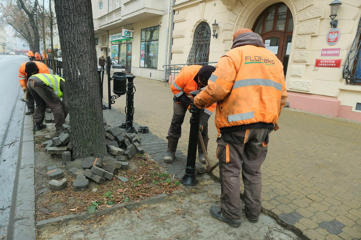 Usuwanie kostki brukowej na Krakowskim Przedmieściu