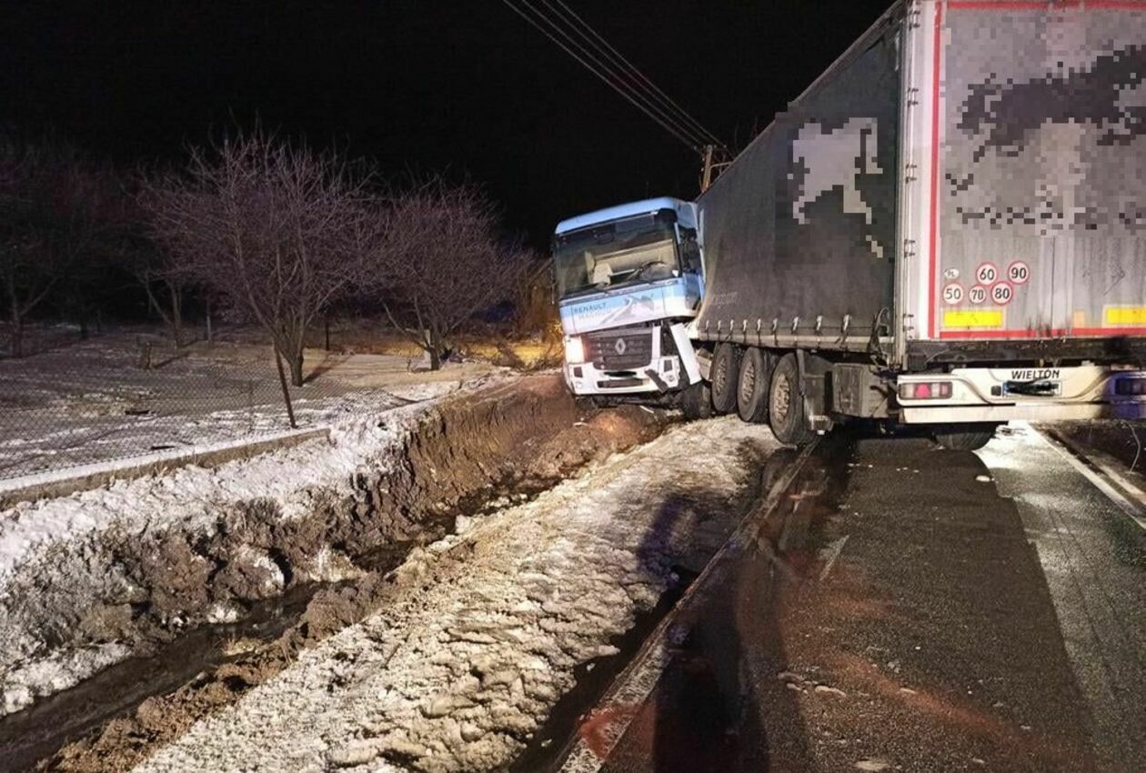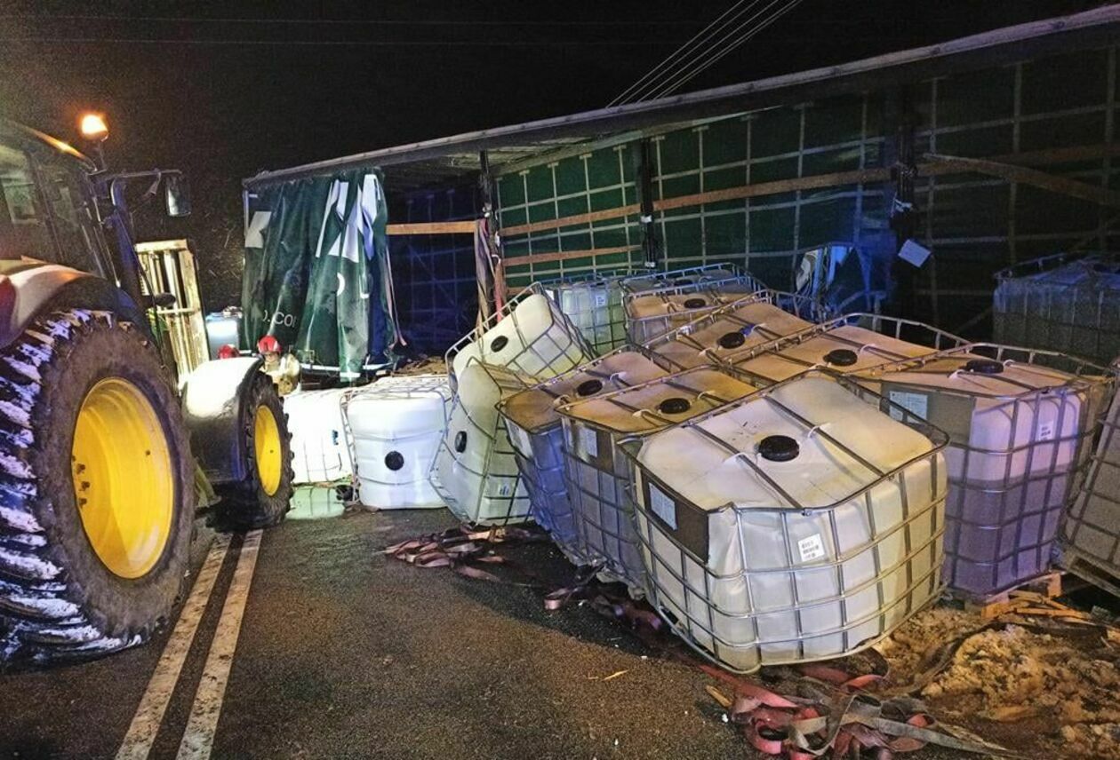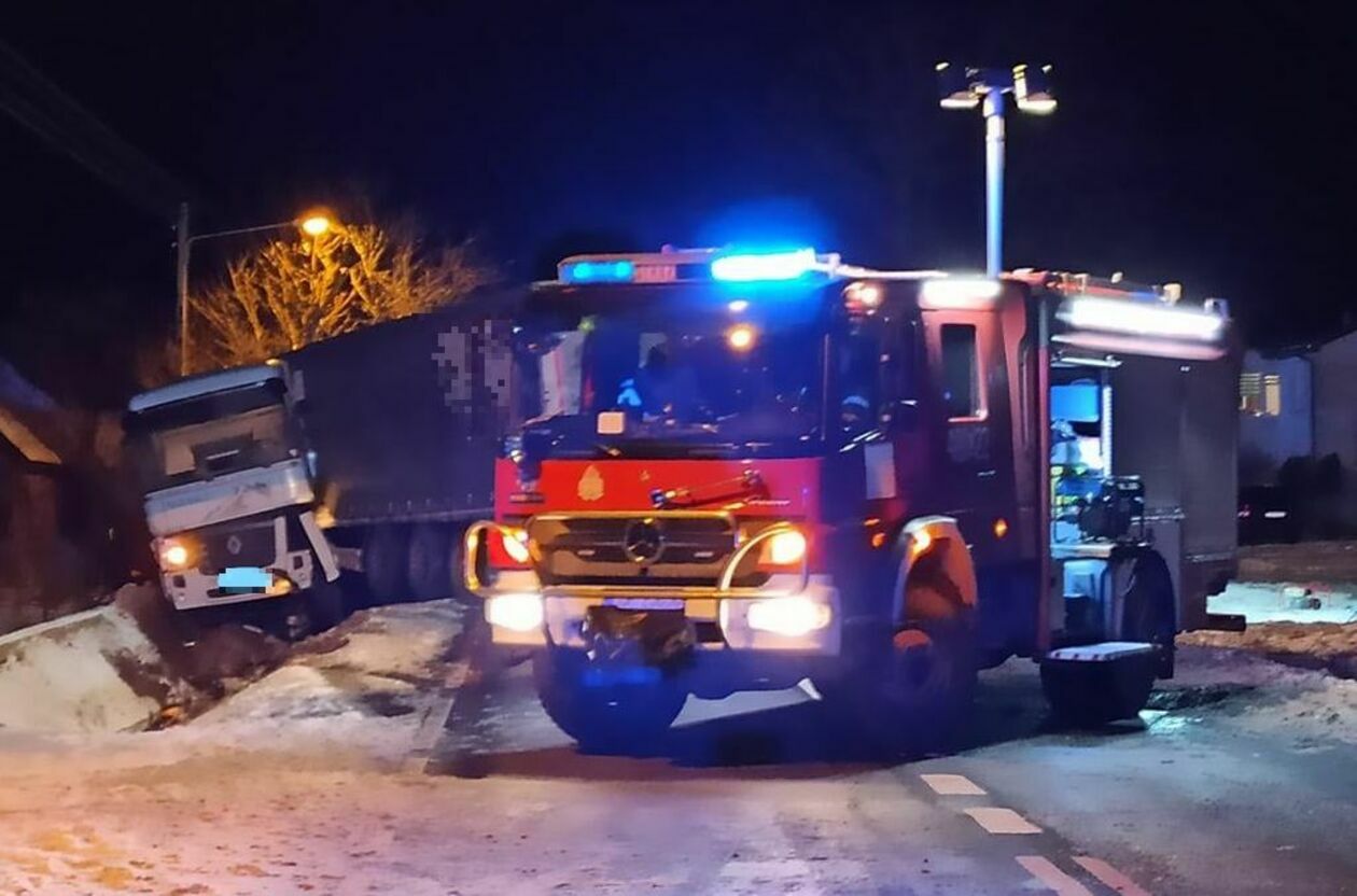 Ciężarówka przewożąca glikol wpadł do rowu w Ożarowie