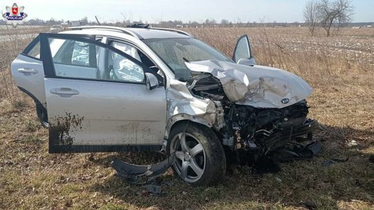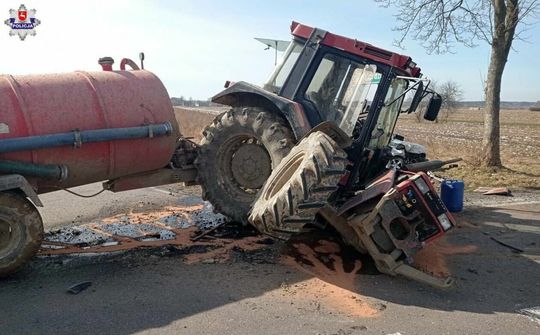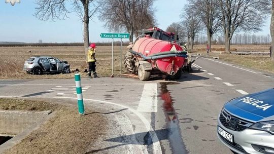 Kocudza. Wypadek samochodu i ciągnika