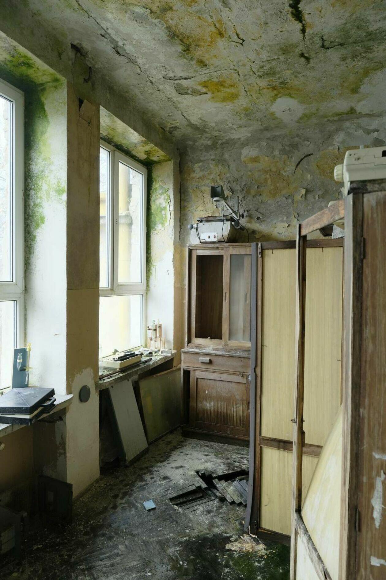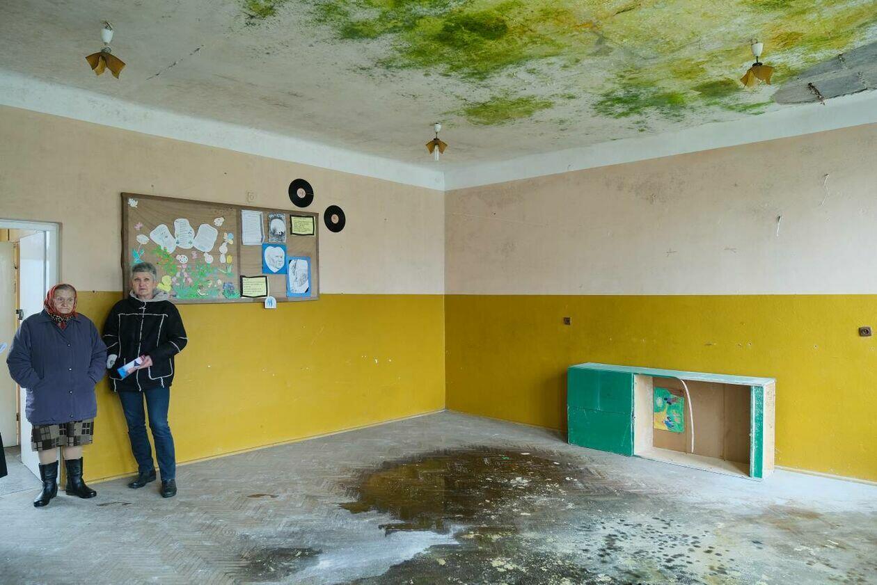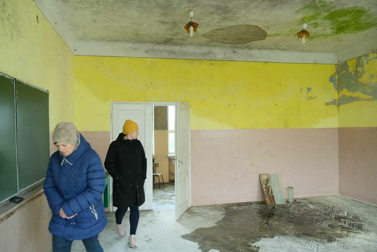 Zrujnowany budynek dawnej szkoły podstawowej w Szczuczkach