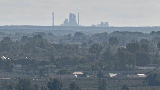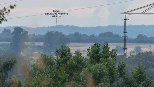 Kominy elektrowni w Kozienicach z Płonek, odległość: 61 km