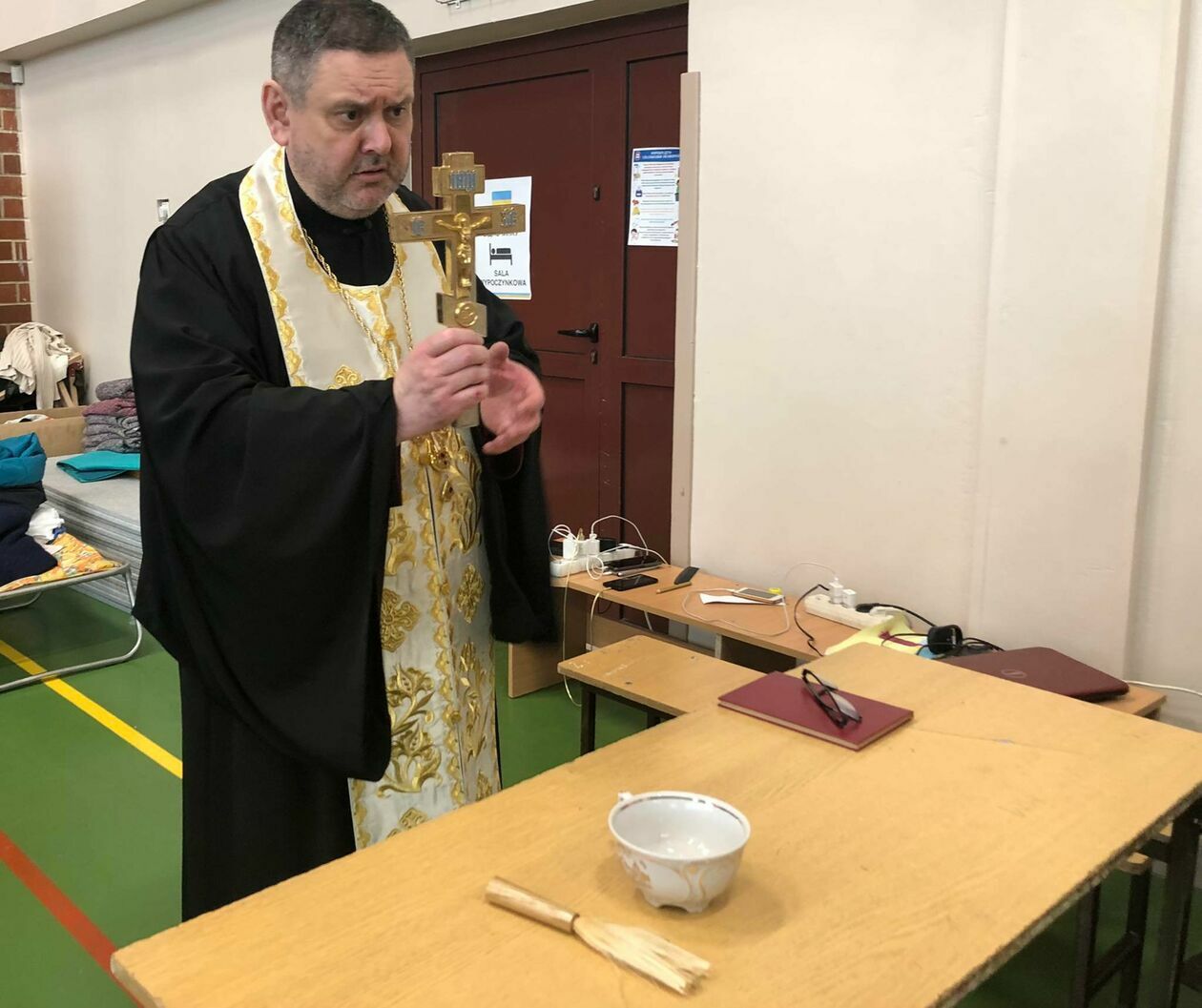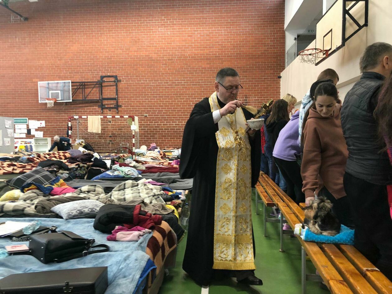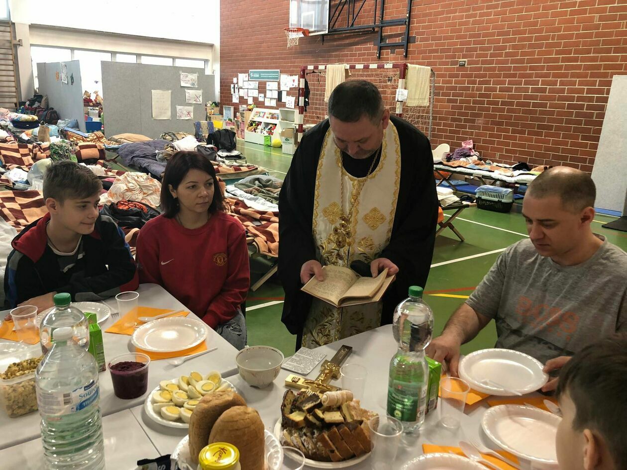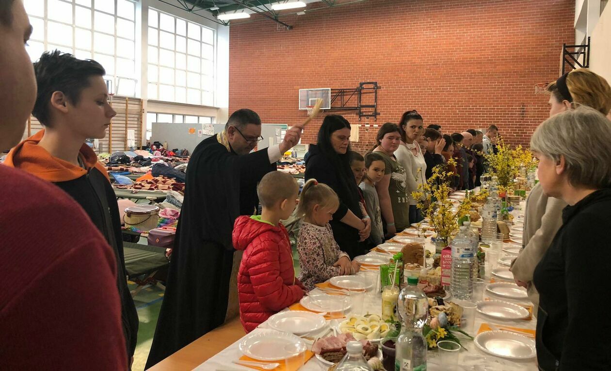 Prawosławna Wielka Sobota - poświęcenie pokarmów w punkcie recepcyjnym w Zamościu