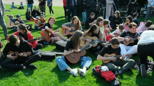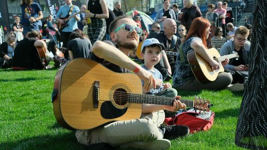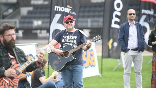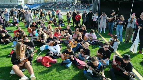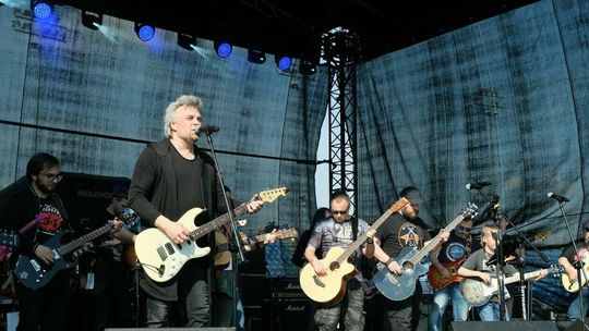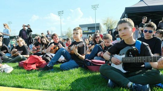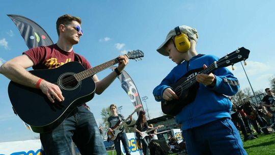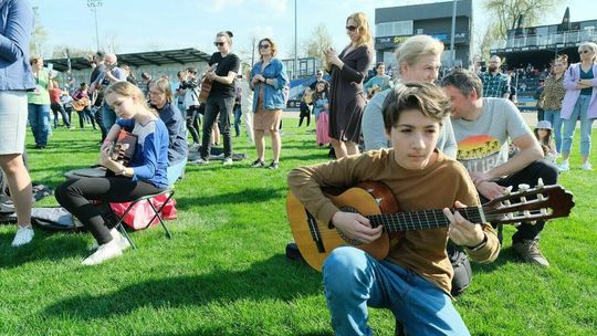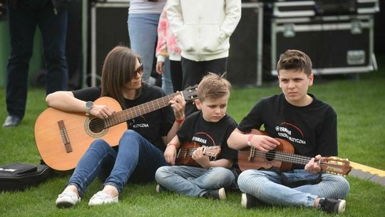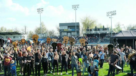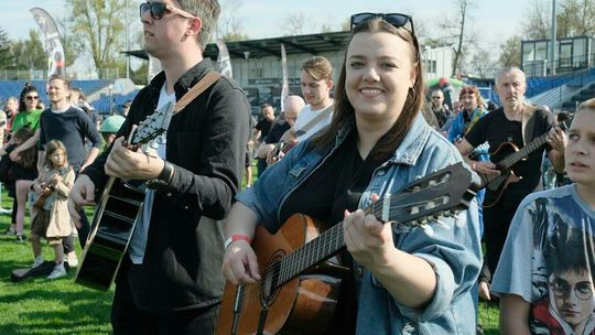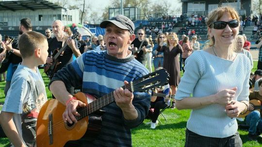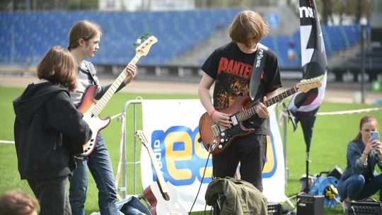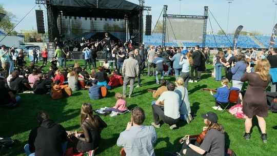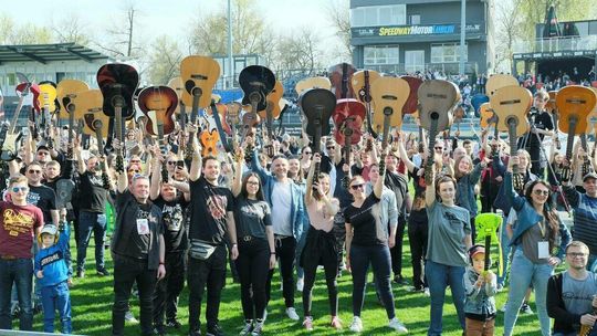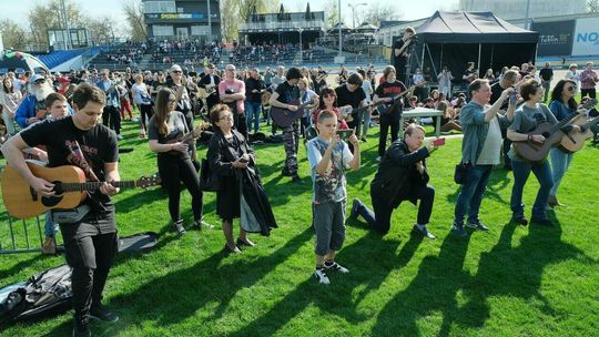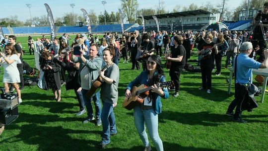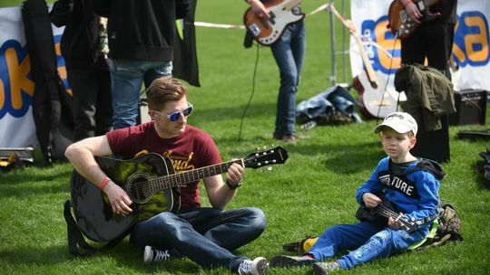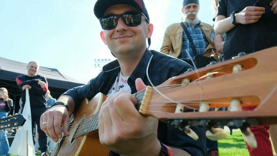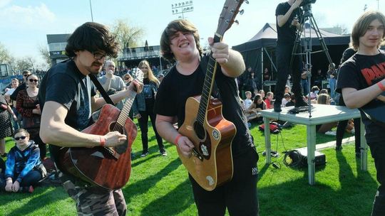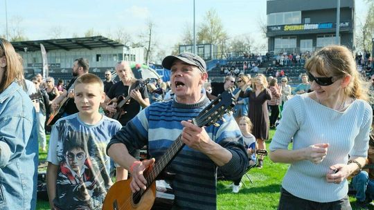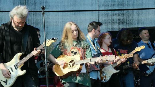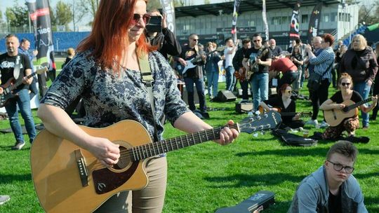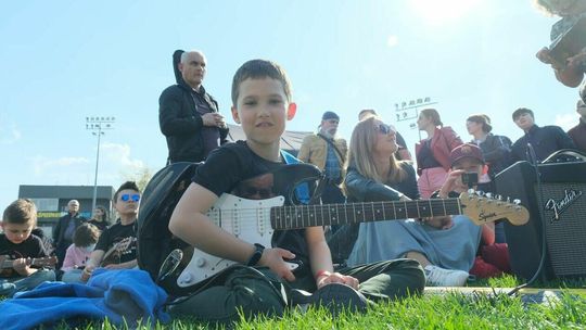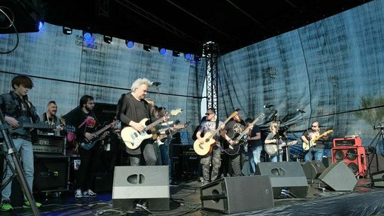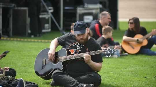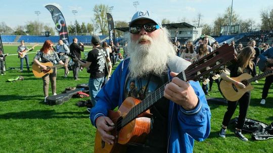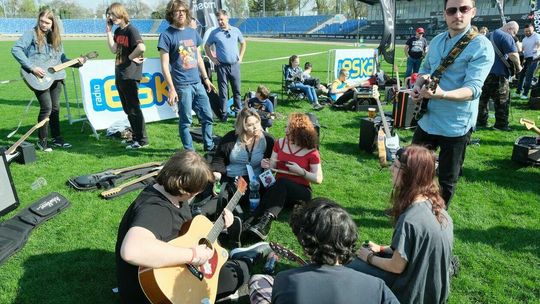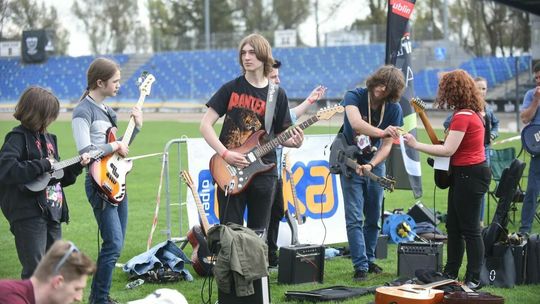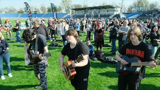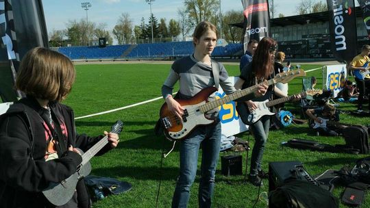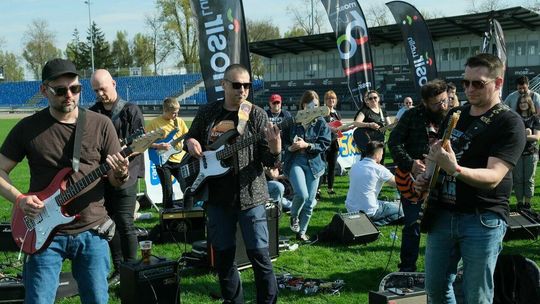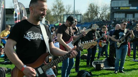 Gitarzyści grają Hey Joe na stadionie w Lublinie