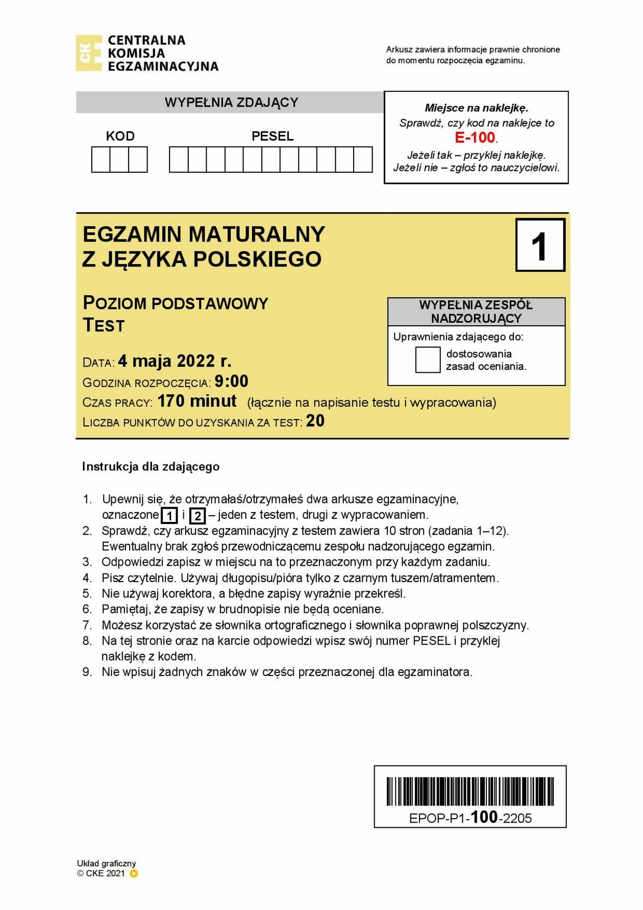 Matura 2022. Język polski poziom podstawowy, test