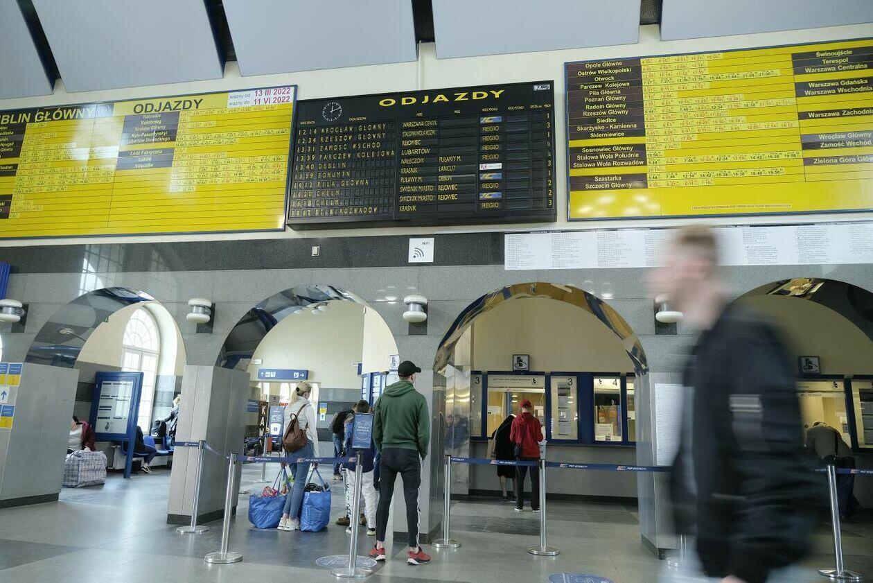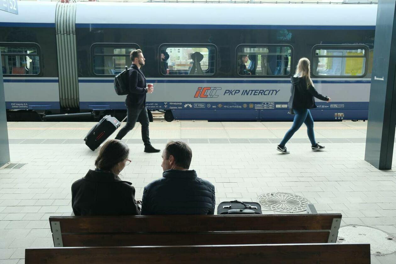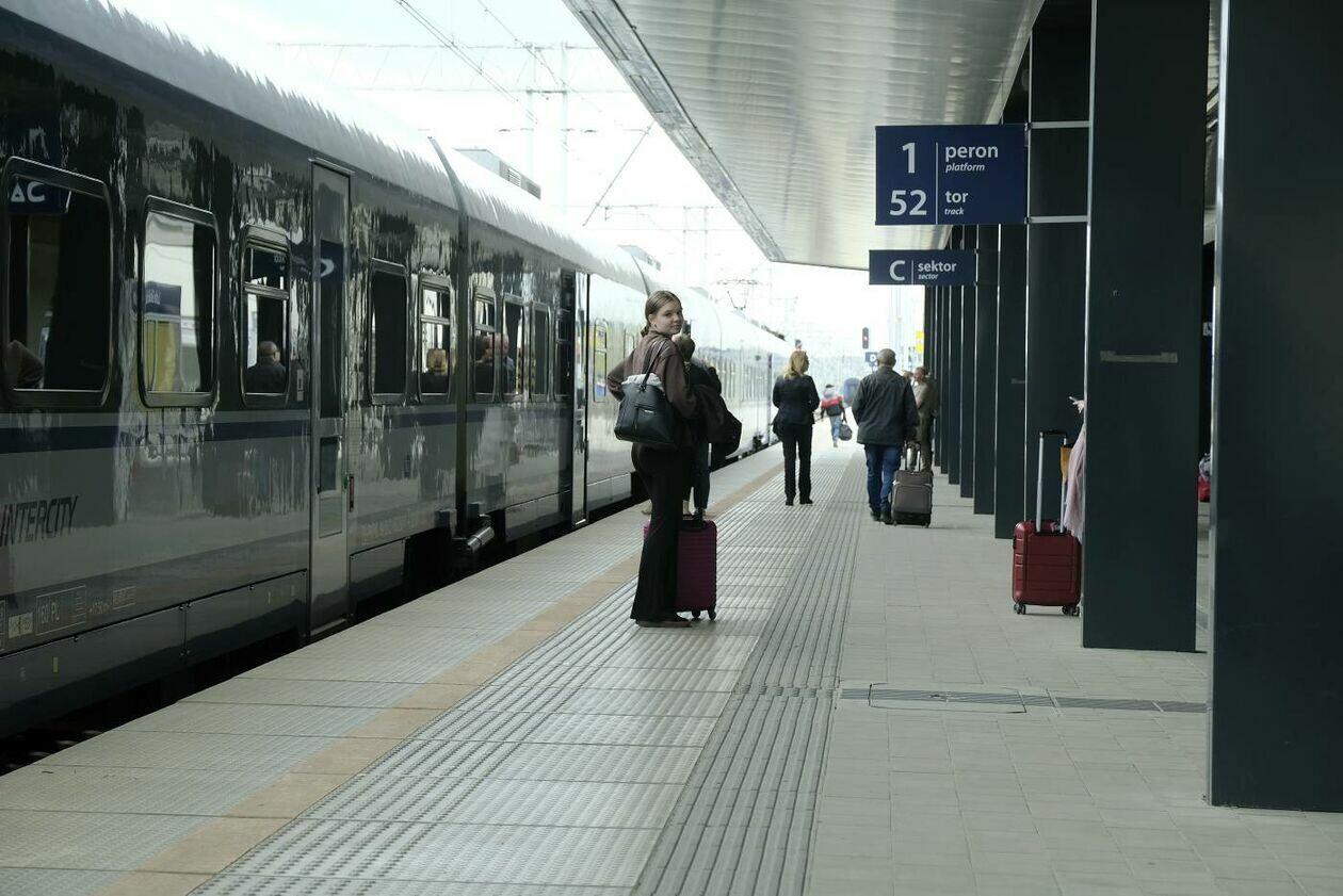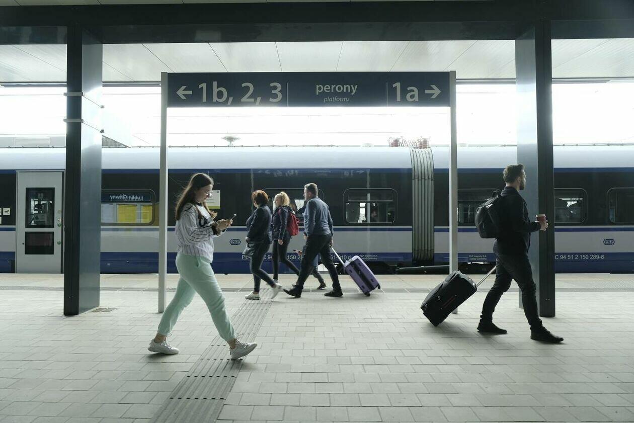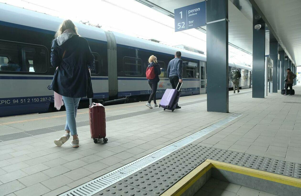 Pasażerowie na Dworcu Głównym PKP w Lublinie