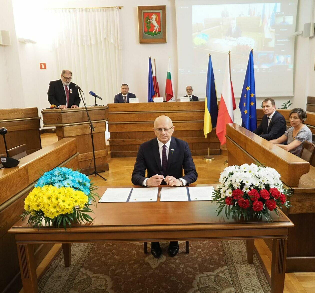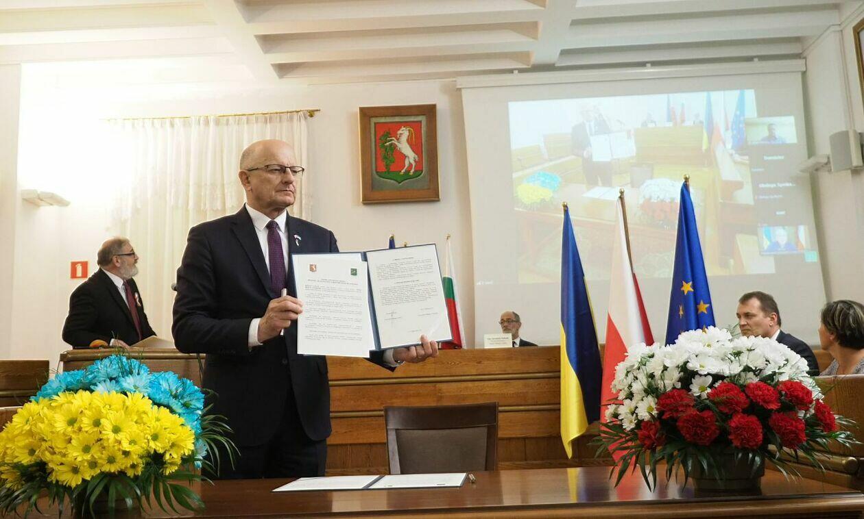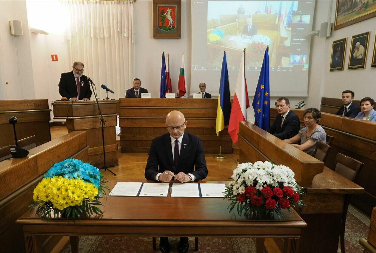 Prezydent Krzysztof Żuk oraz mer Charkowa Ihor Terekhov podp...