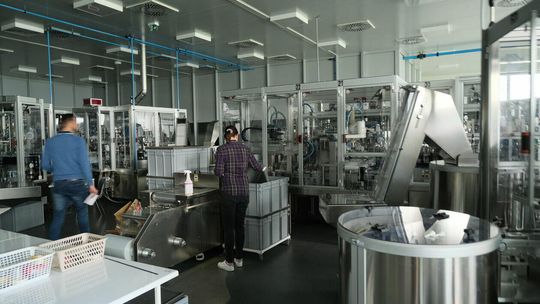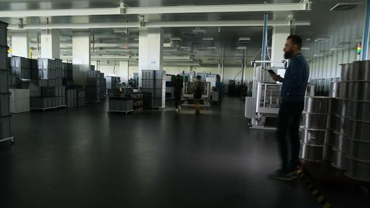 Dyrektor techniczny Łukasz Margol i dyrektor ds. produkcji, Anna Puzio. Prywatnie to dzieci założyciela Margomedu, bo dziś to firma rodzinna. W hali panuje półmrok, bo dostawca wyłączył prąd