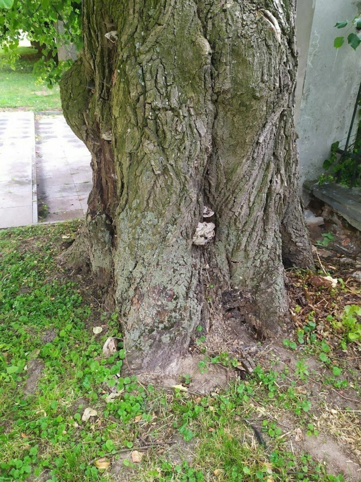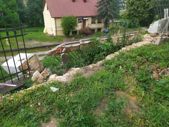 Uszkodzony mur - na skutek wyłamania drzewa
