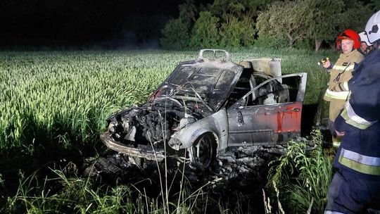 Nocny pożar samochodu w gminie Uchanie