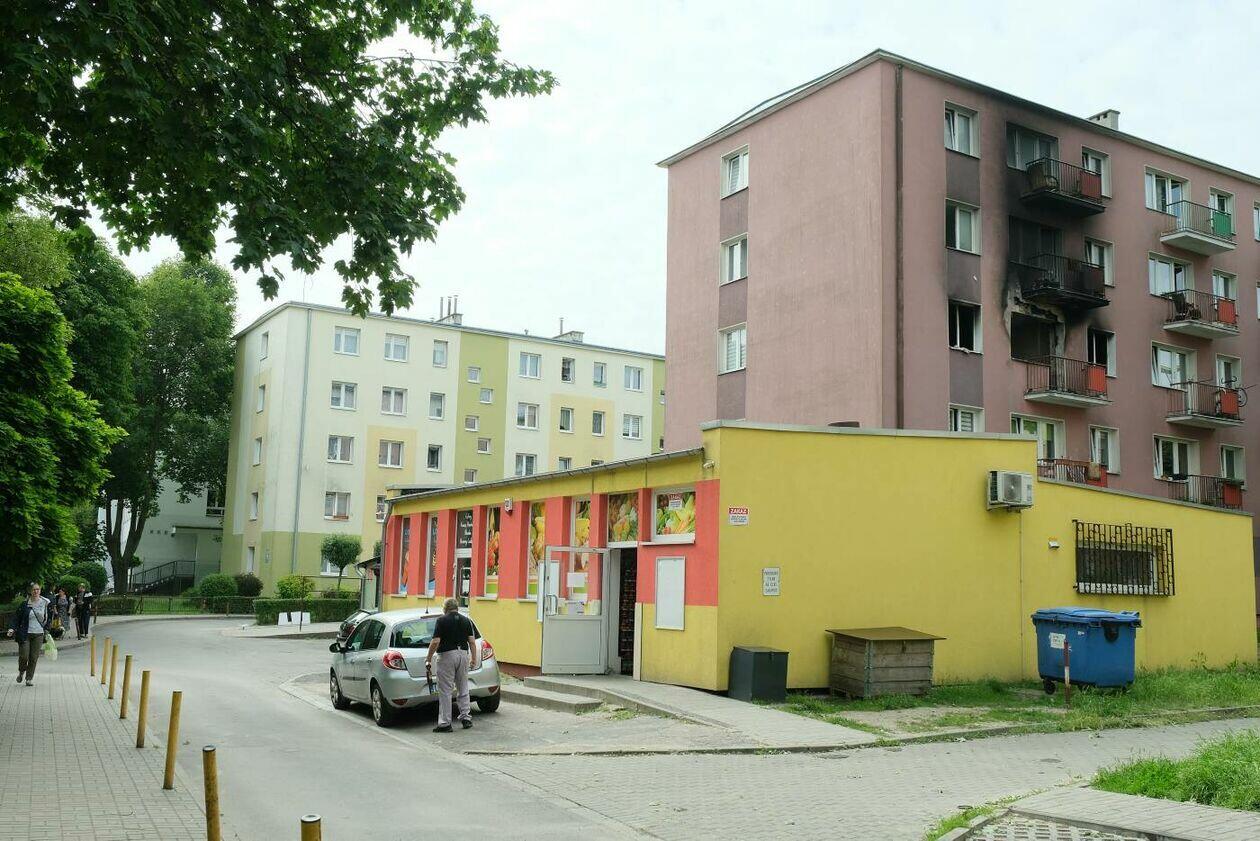Skutki pożaru w bloku przy ul. Sokolej w Lublinie