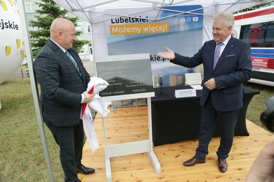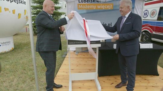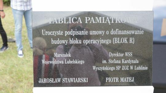 Szpital zamówił kamienną tablicę pamiątkową, na której wyryto nazwiska i marszałka województwa, i dyrektora szpitala