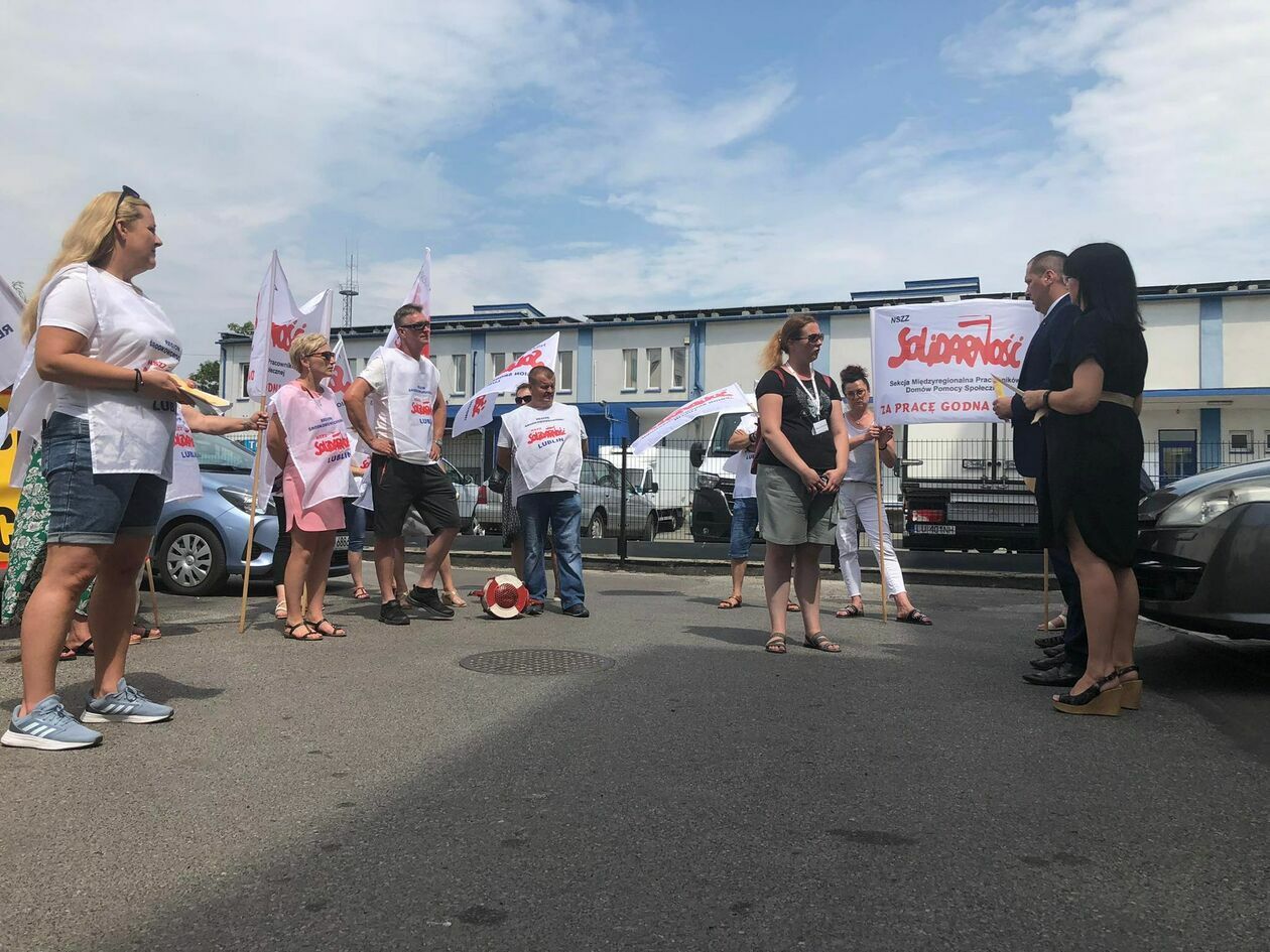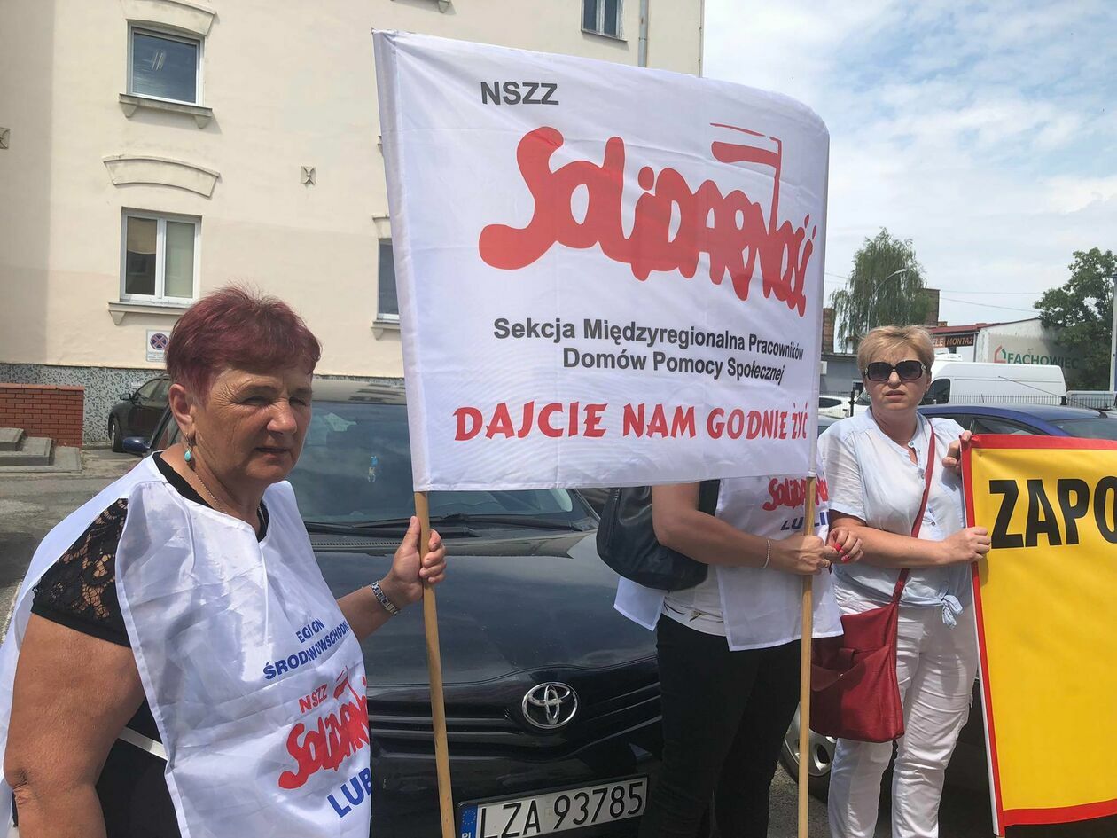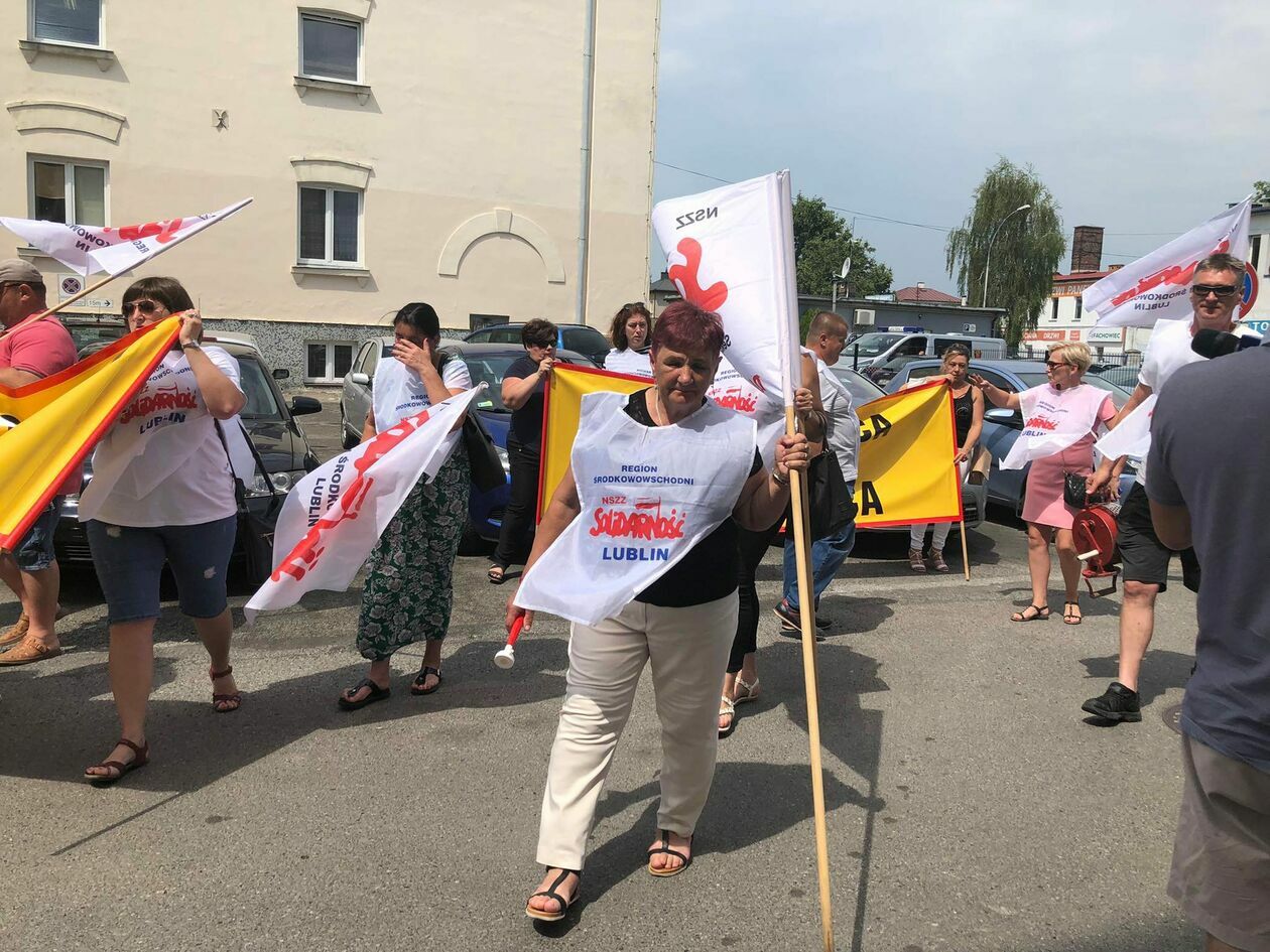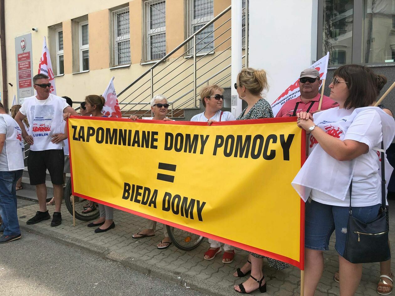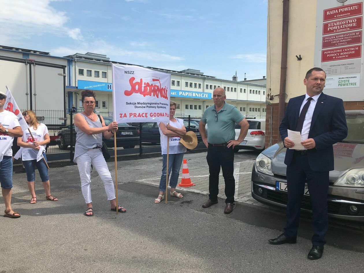 Protest związkowców z DPS przed Starostwem Powiatowym w Zamo...