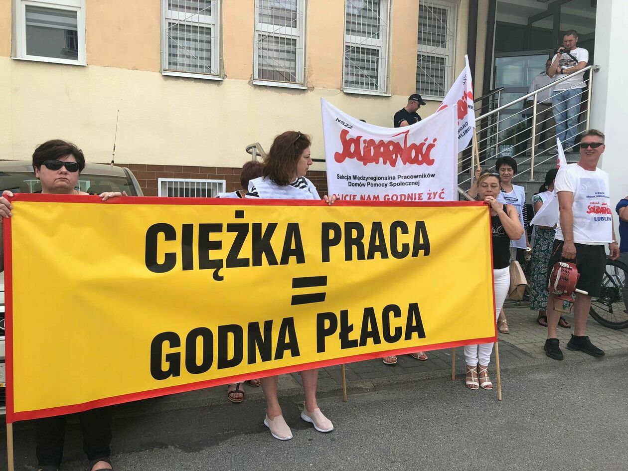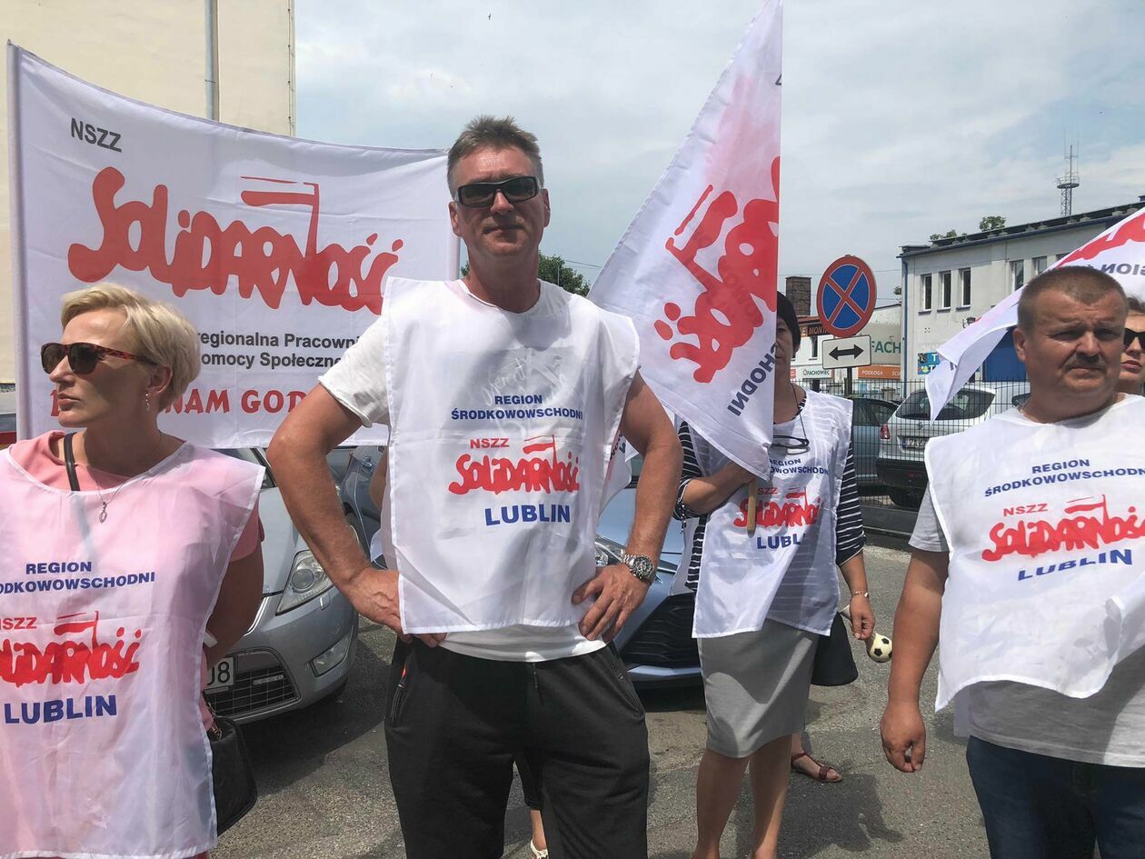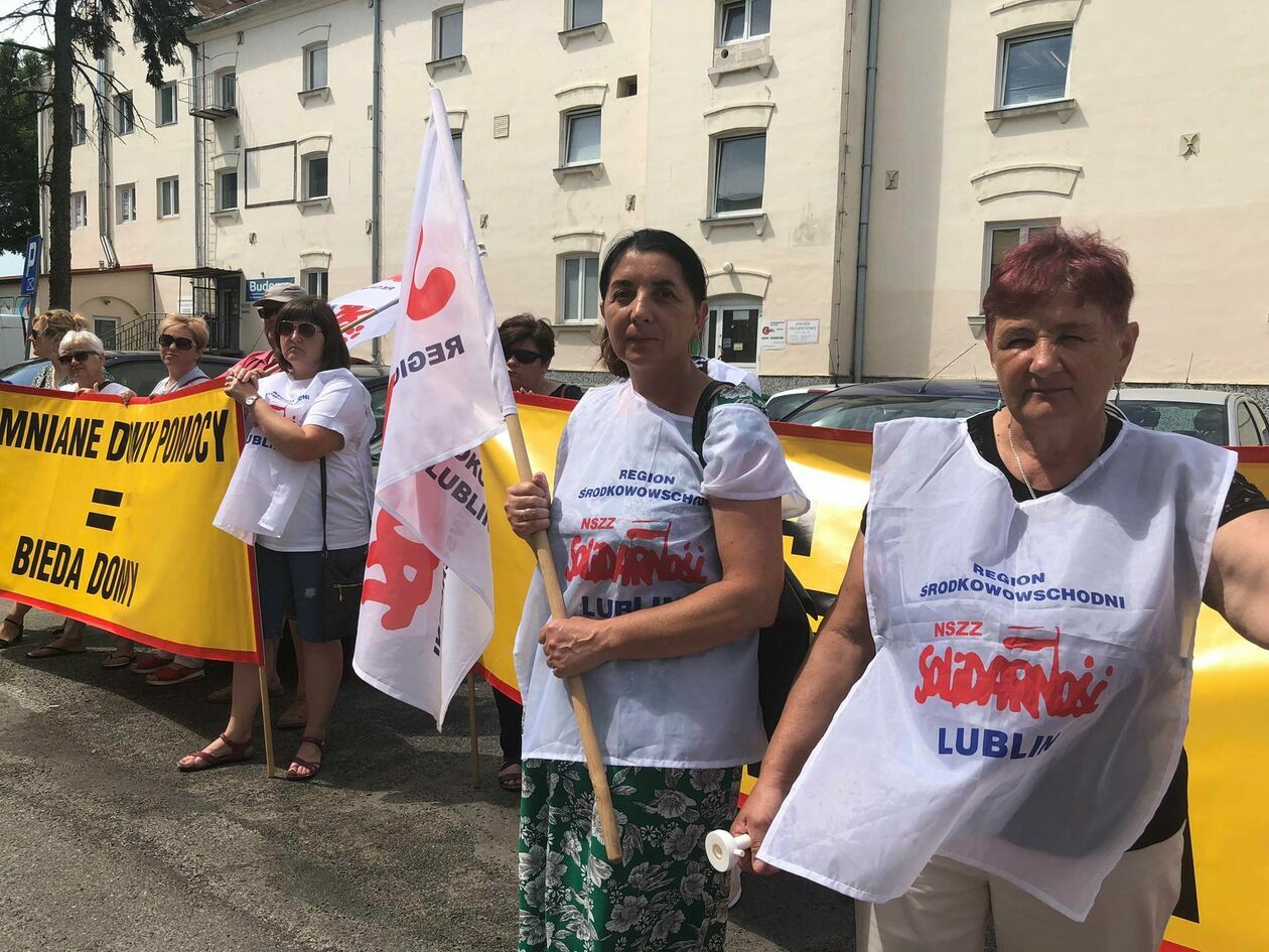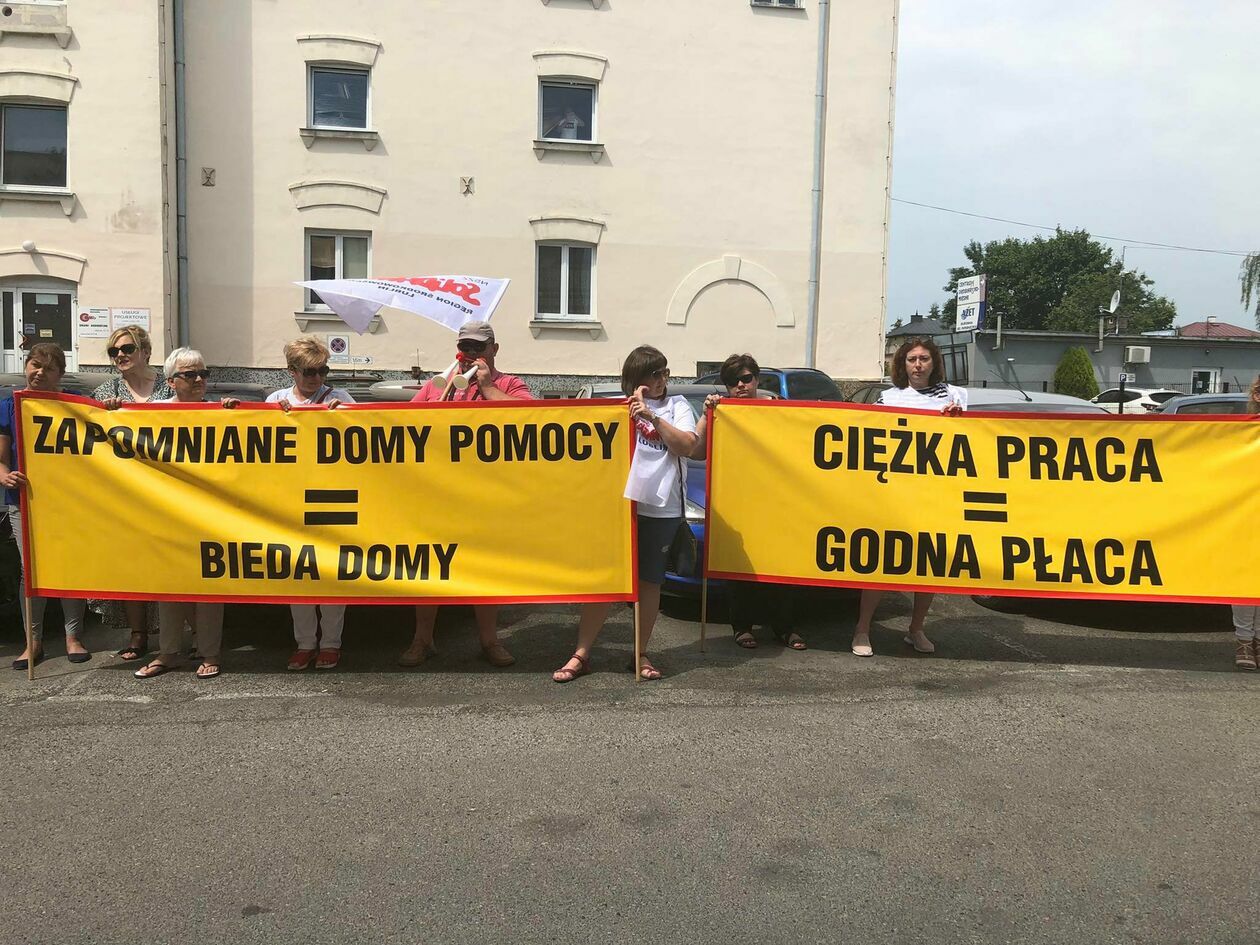 Protest związkowców z DPS przed Starostwem Powiatowym w Zamo...