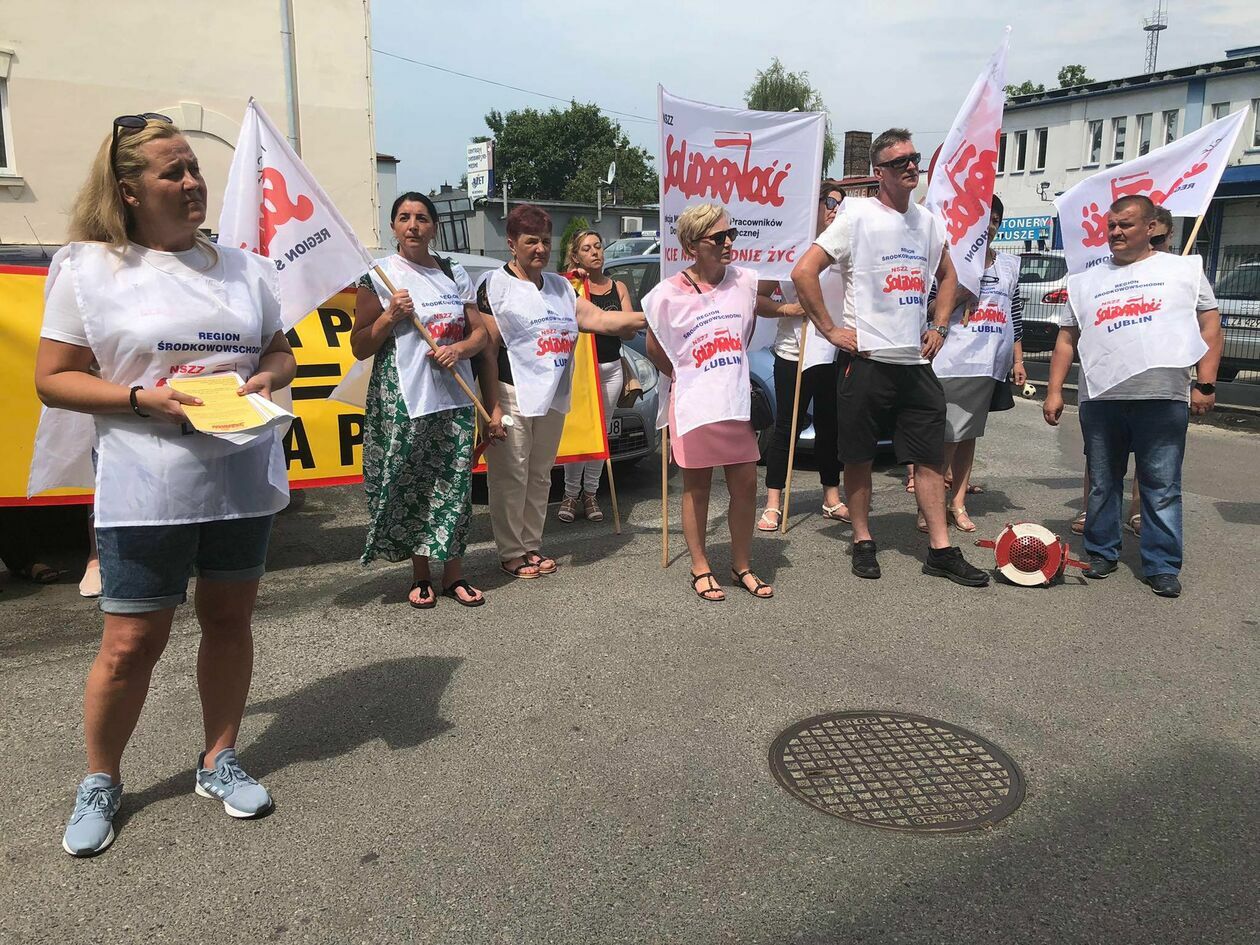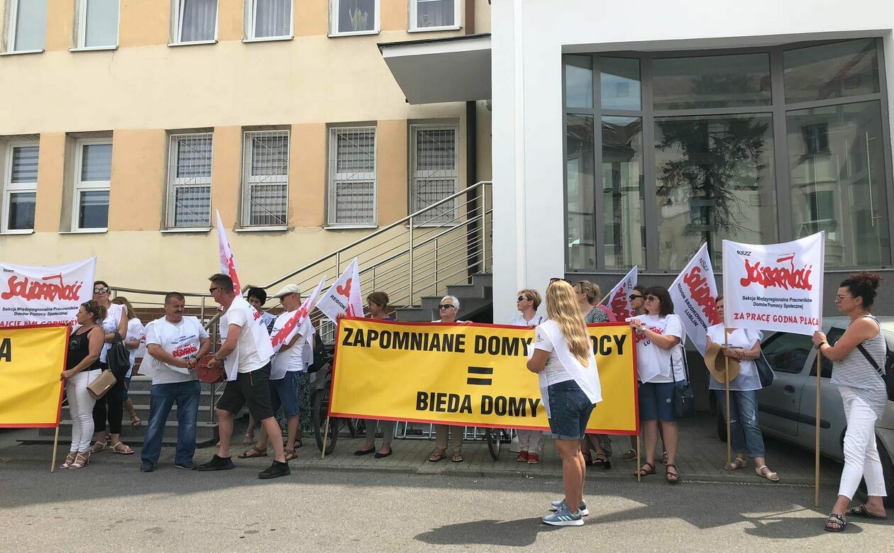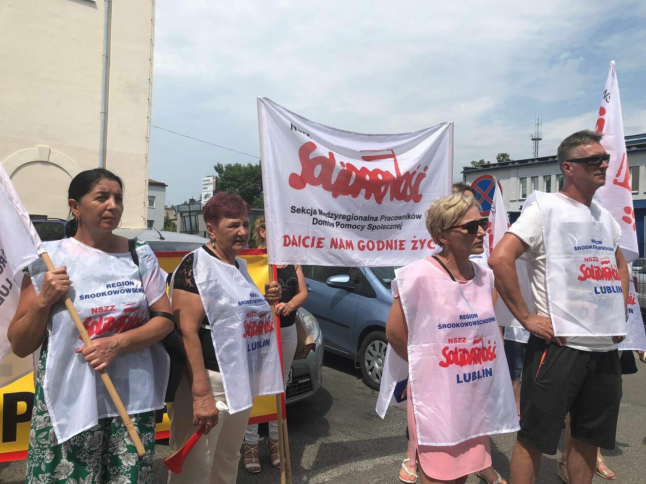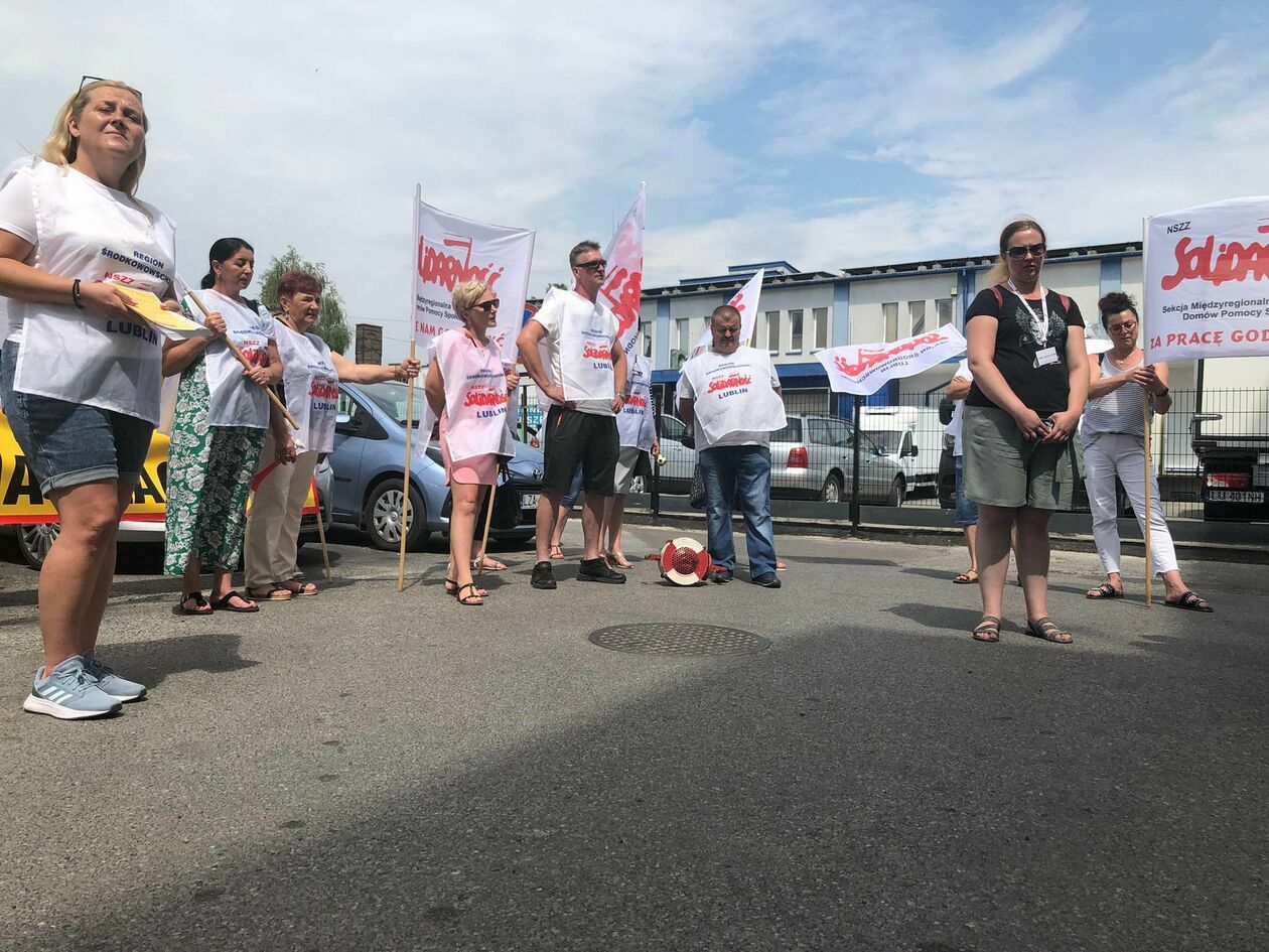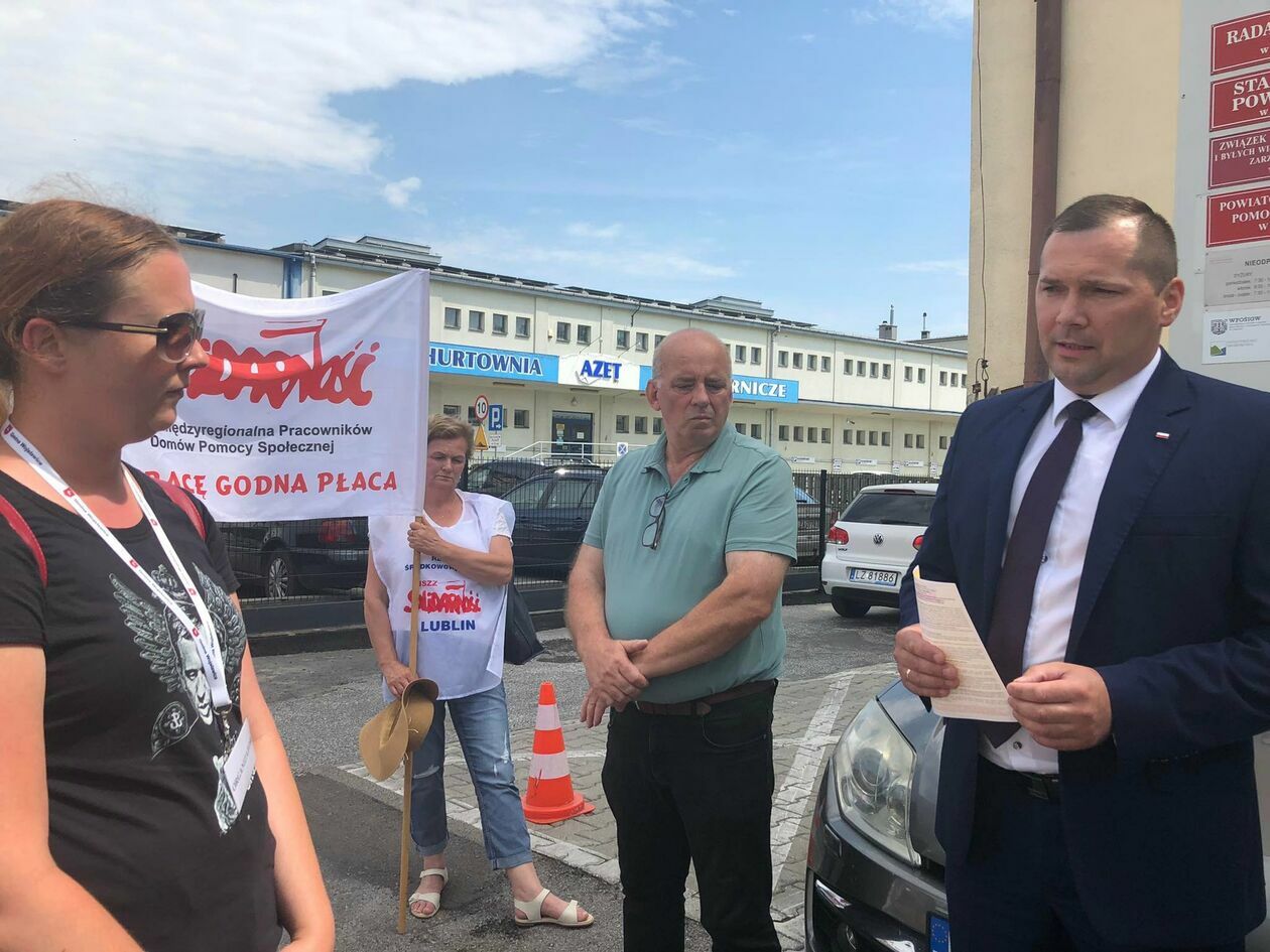 Protest związkowców z DPS przed Starostwem Powiatowym w Zamo...