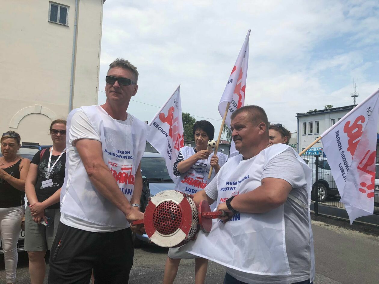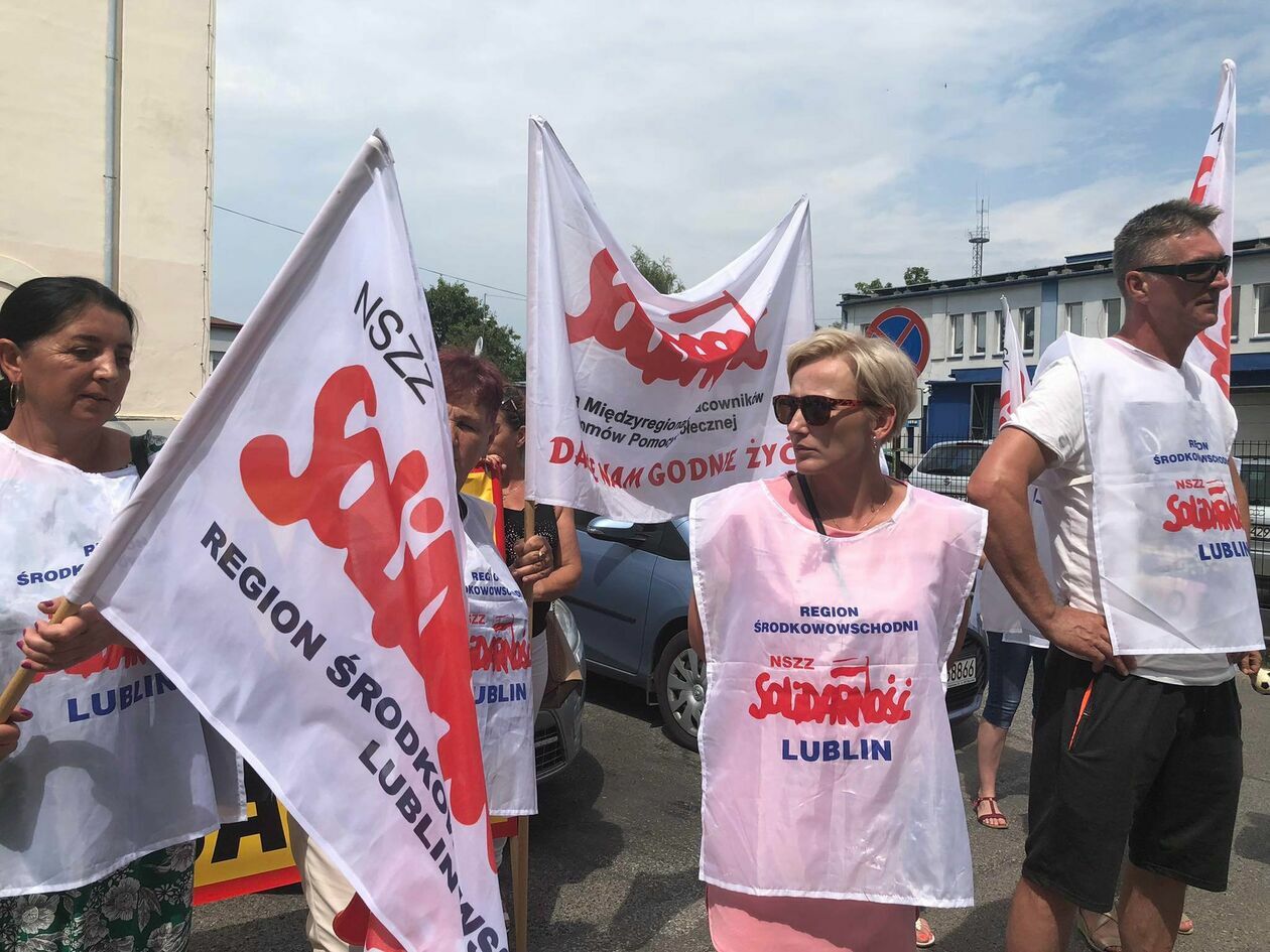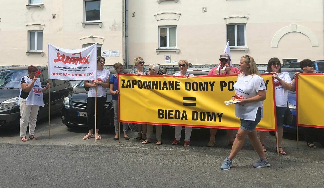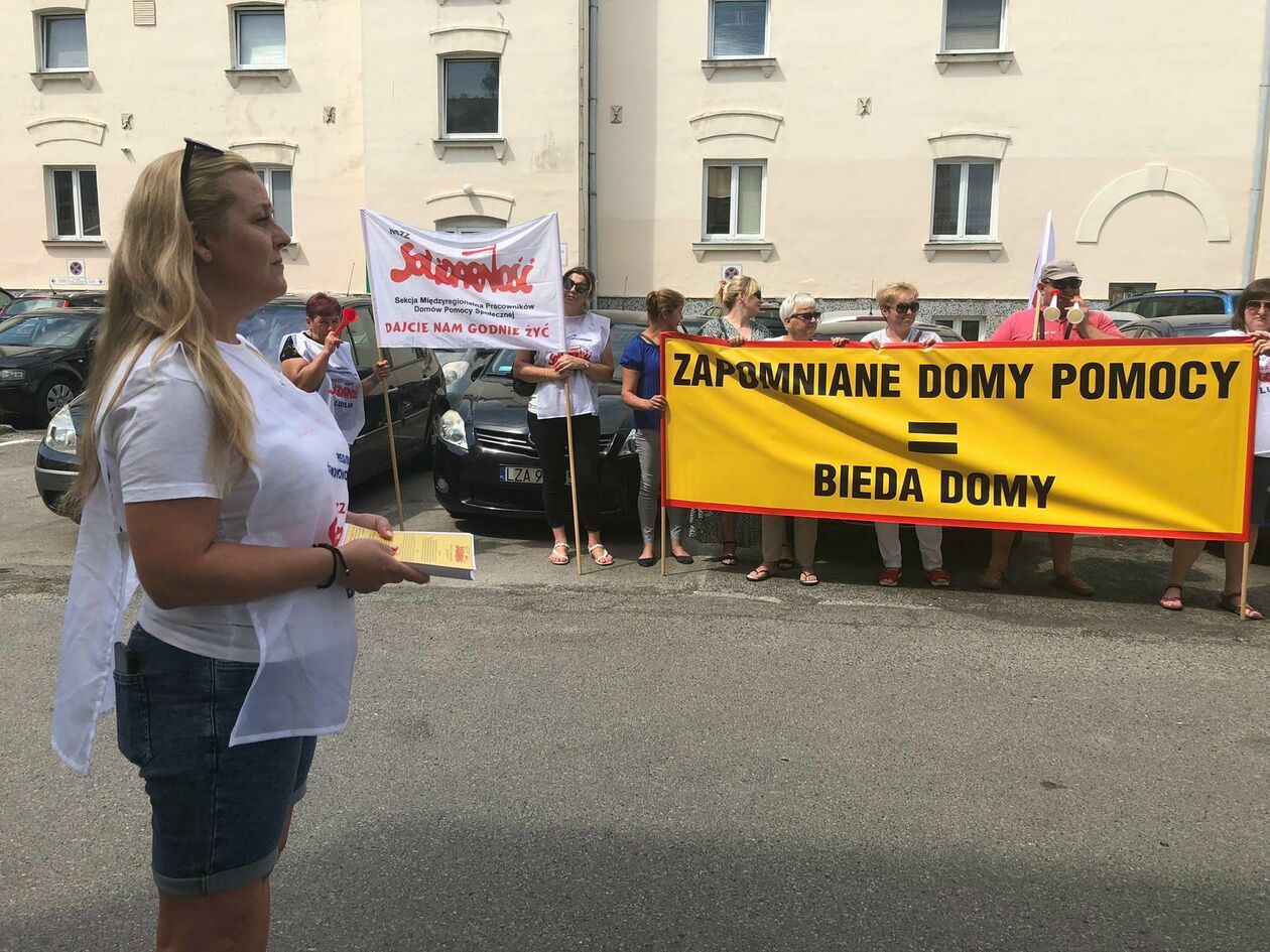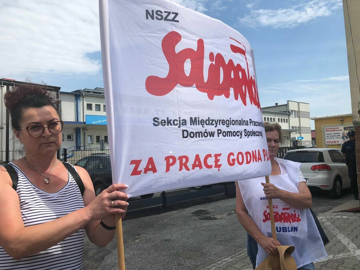 Protest związkowców z DPS przed Starostwem Powiatowym w Zamo...