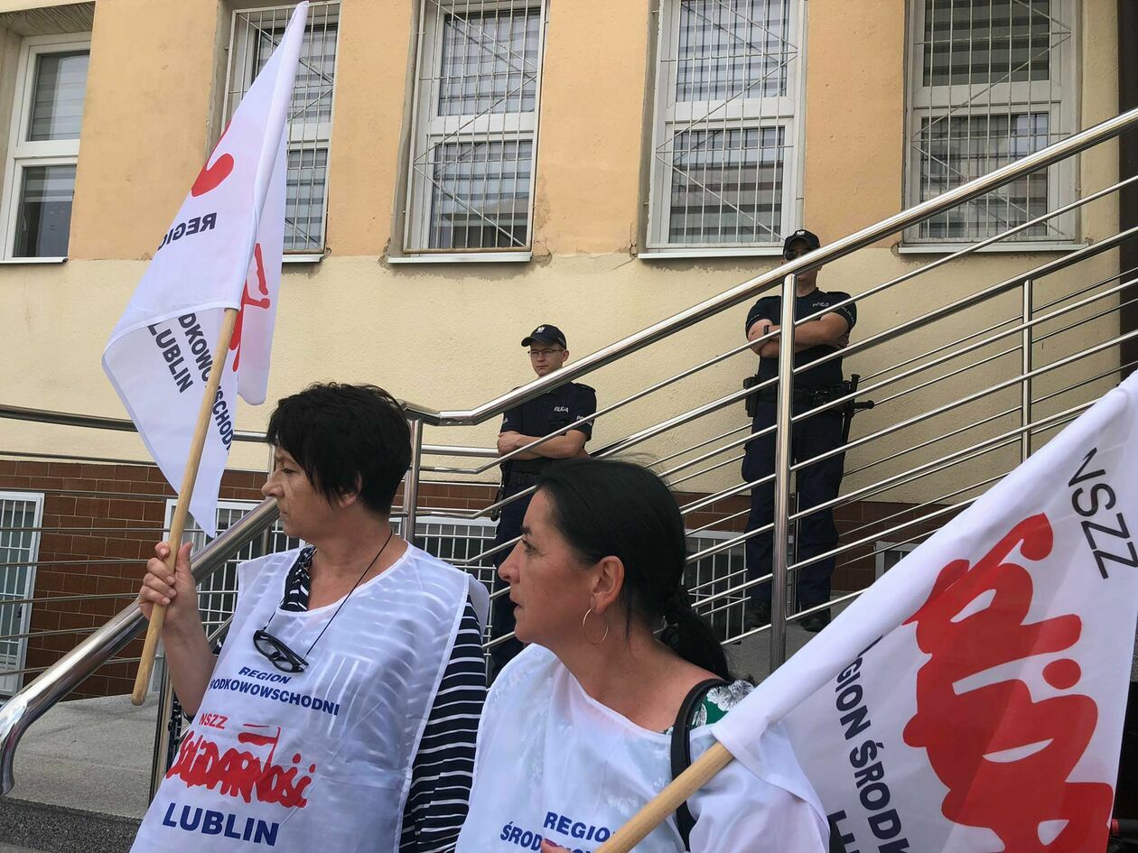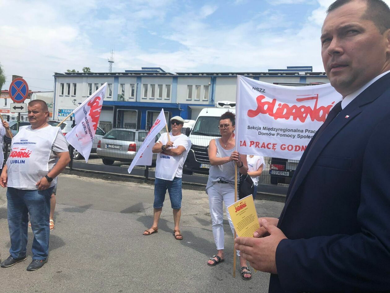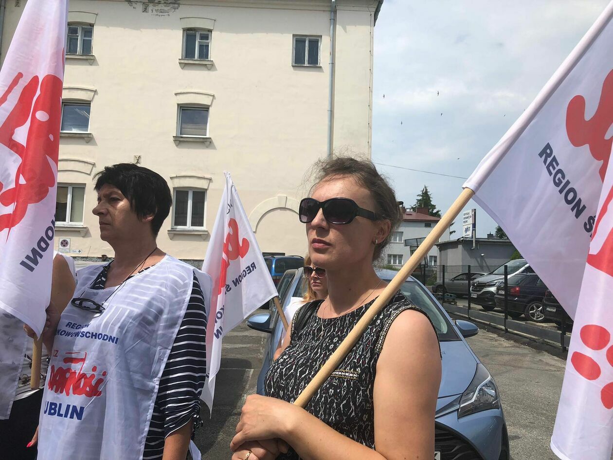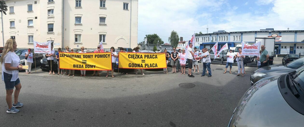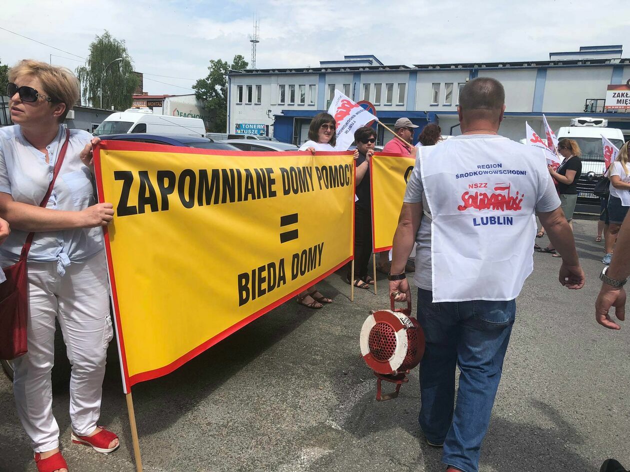 Protest związkowców z DPS przed Starostwem Powiatowym w Zamo...