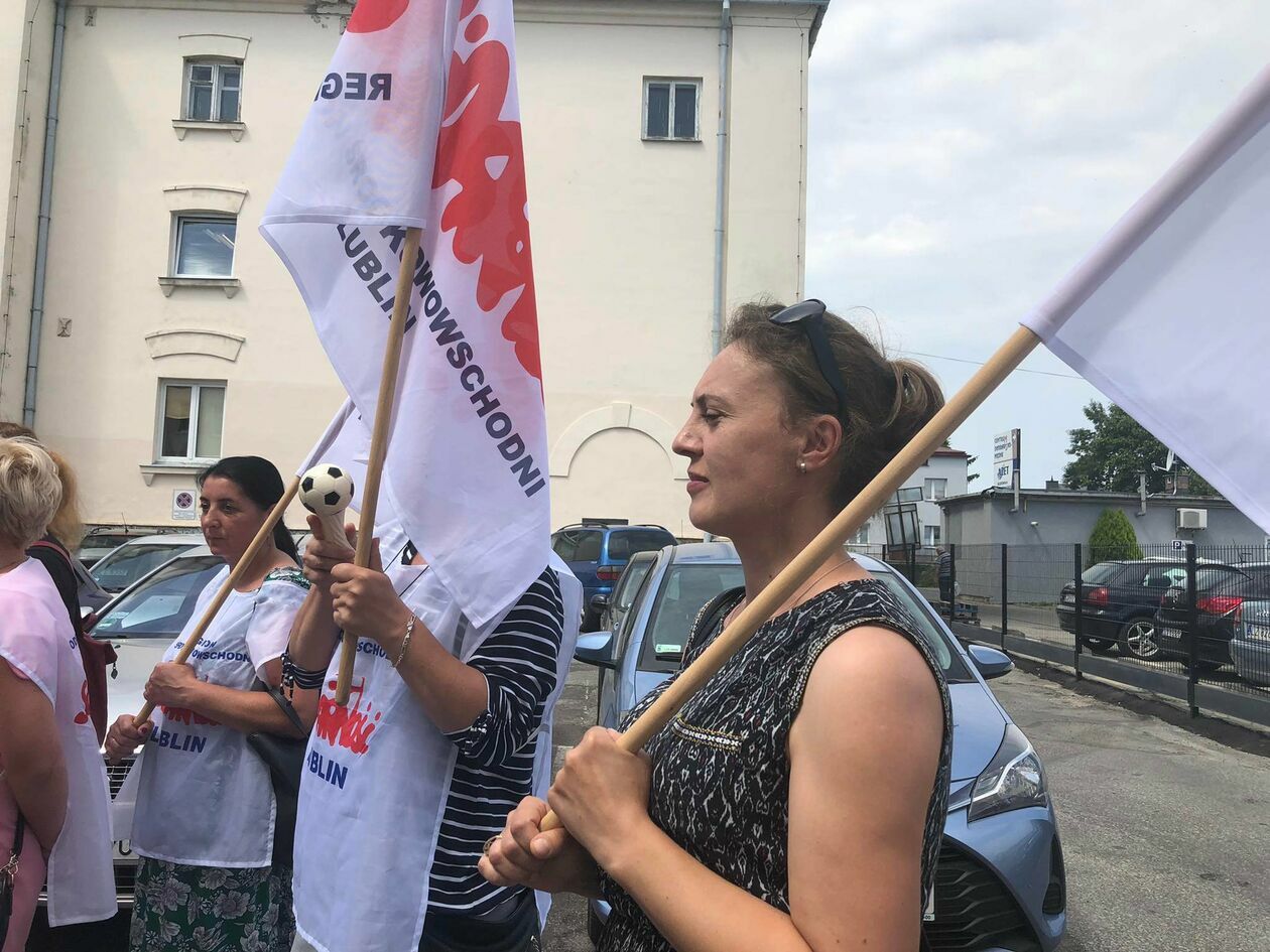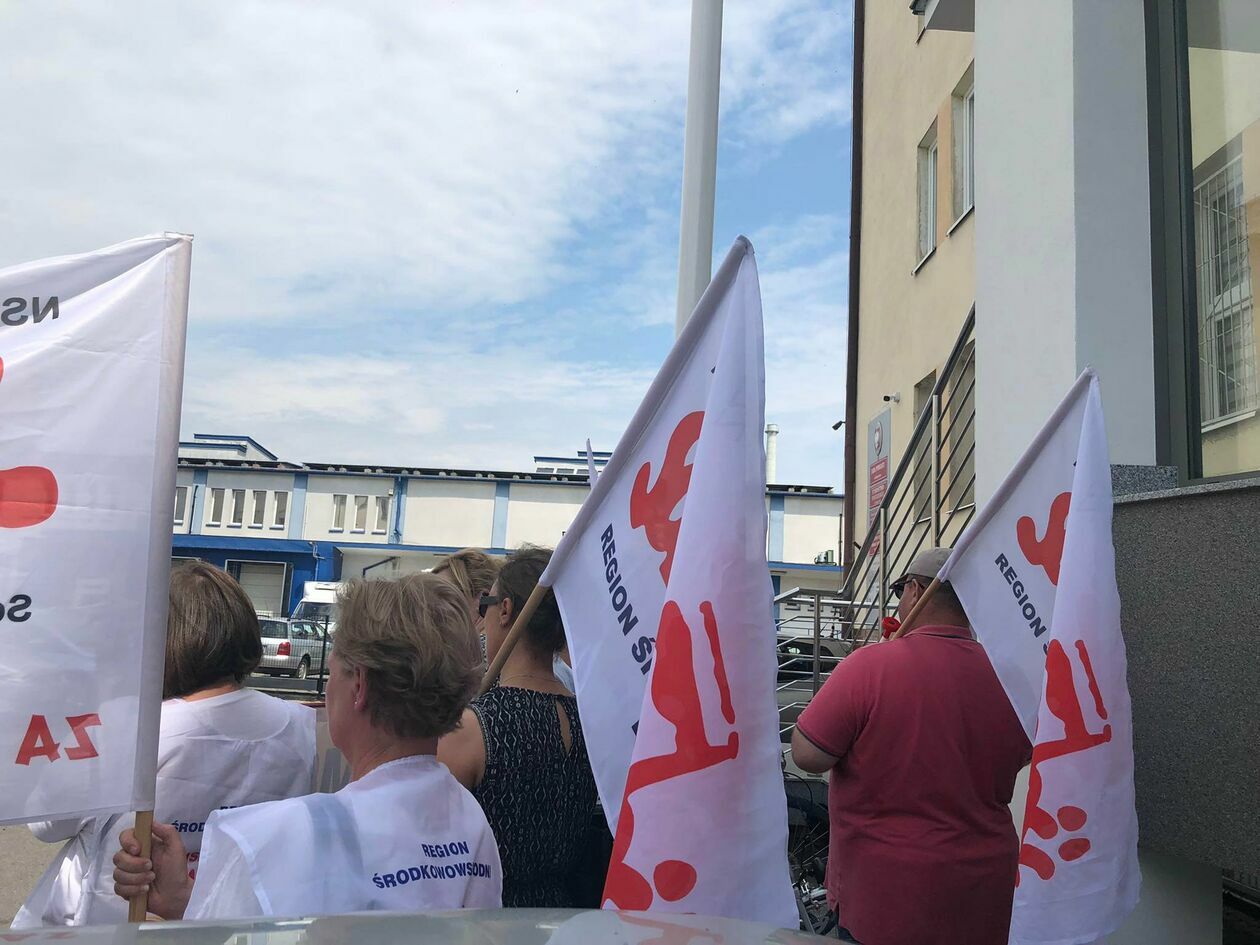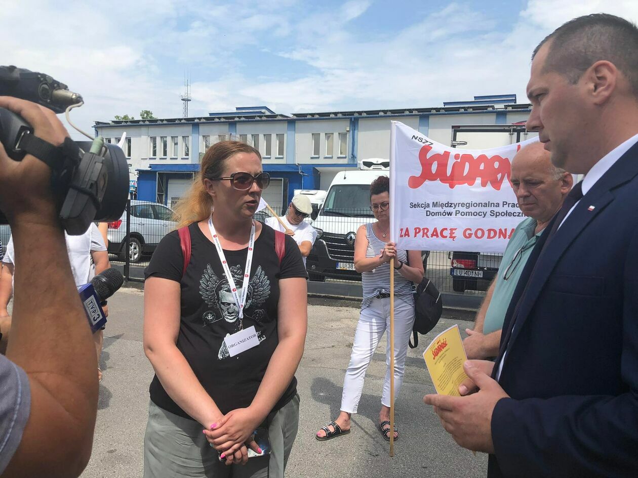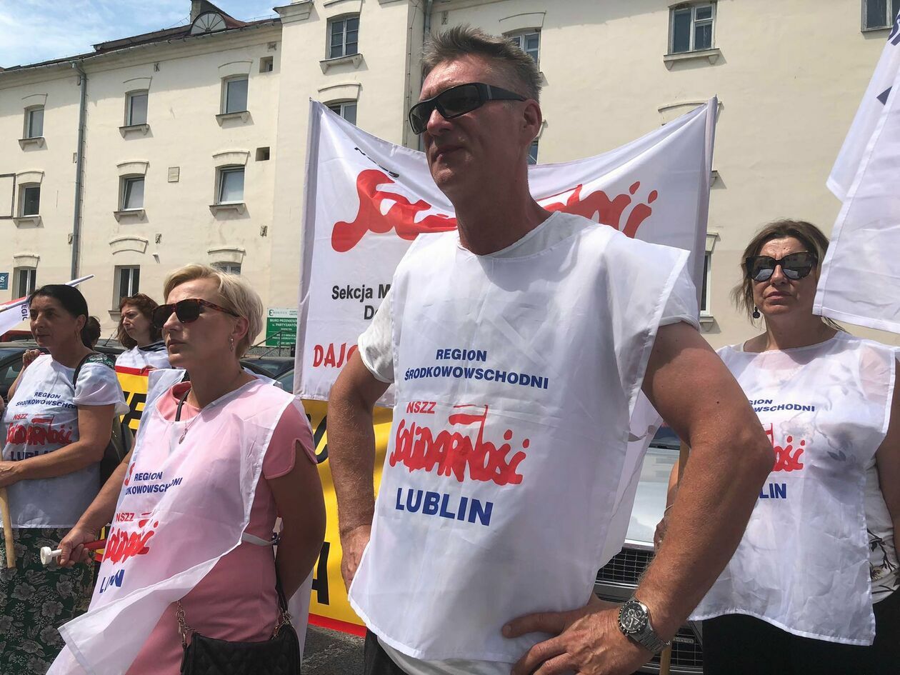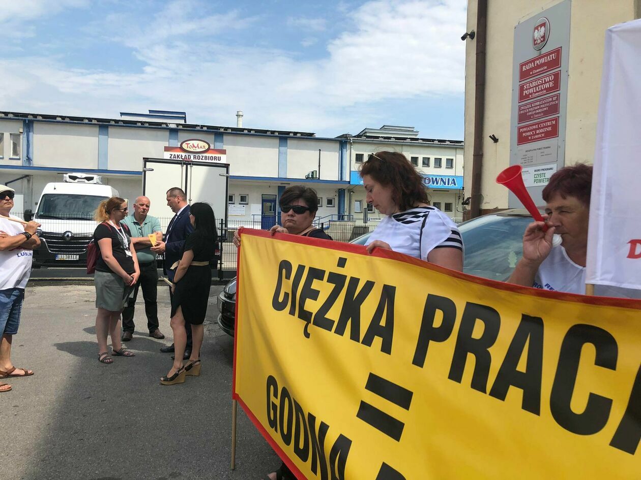 Protest związkowców z DPS przed Starostwem Powiatowym w Zamo...