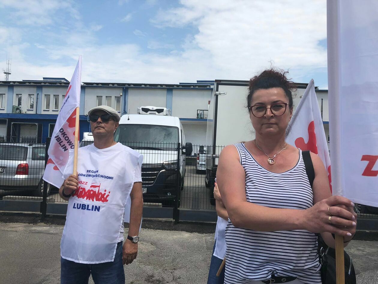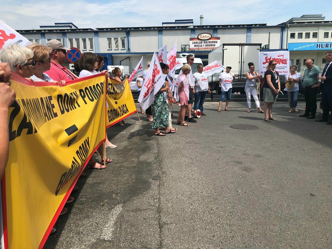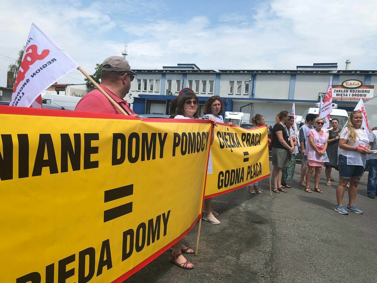 Protest związkowców z DPS przed Starostwem Powiatowym w Zamościu