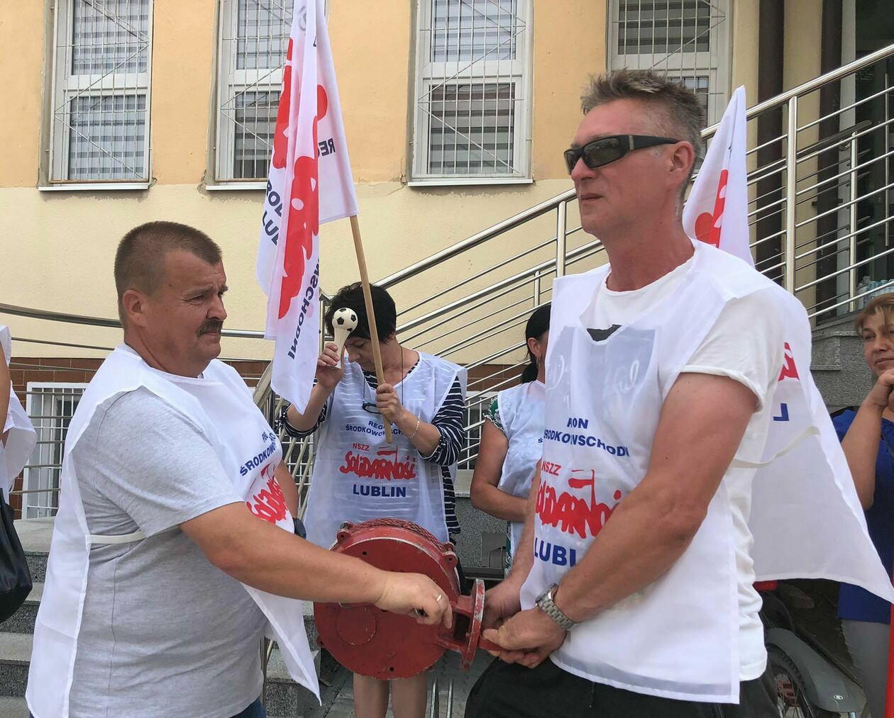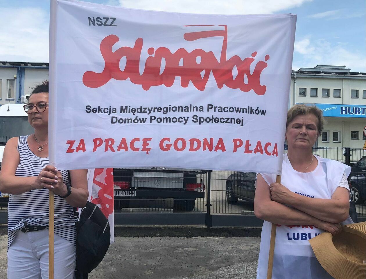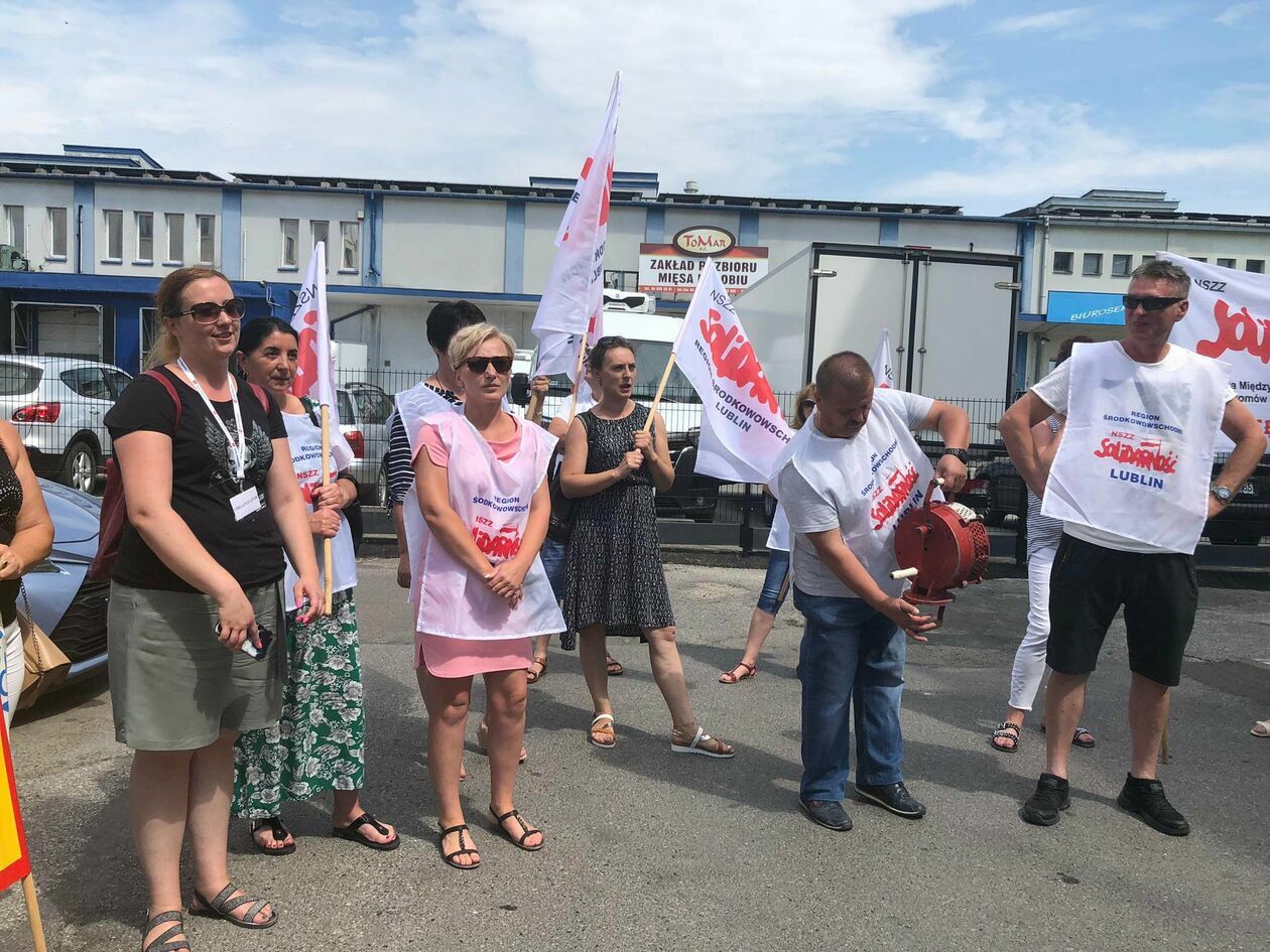 Protest związkowców z DPS przed Starostwem Powiatowym w Zamościu