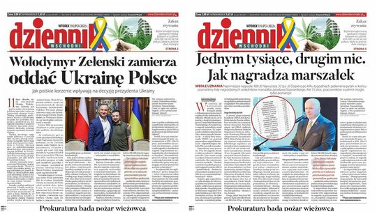 Po lewej: Zmodyfikowana pierwsza strona, która krąży w sieci. Po prawej: Rzeczywista "jedynka" z 19 lipca 2022 roku.