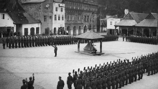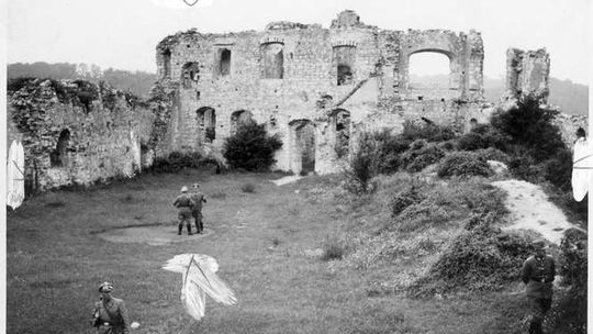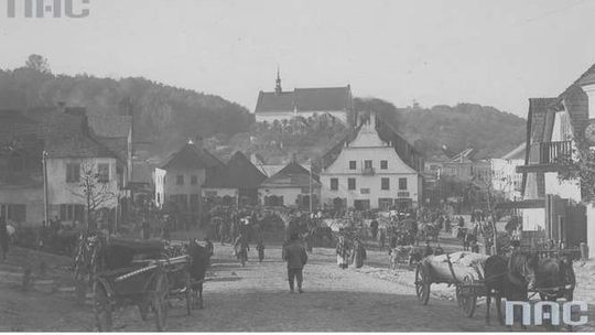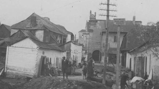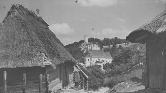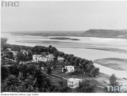 Widoczna Wisła i obecna ul. Krakowska. W tych latach nie było jeszcze wałów wiślanych chroniących teraz miasteczko przed zalaniem. Lipiec 1940
