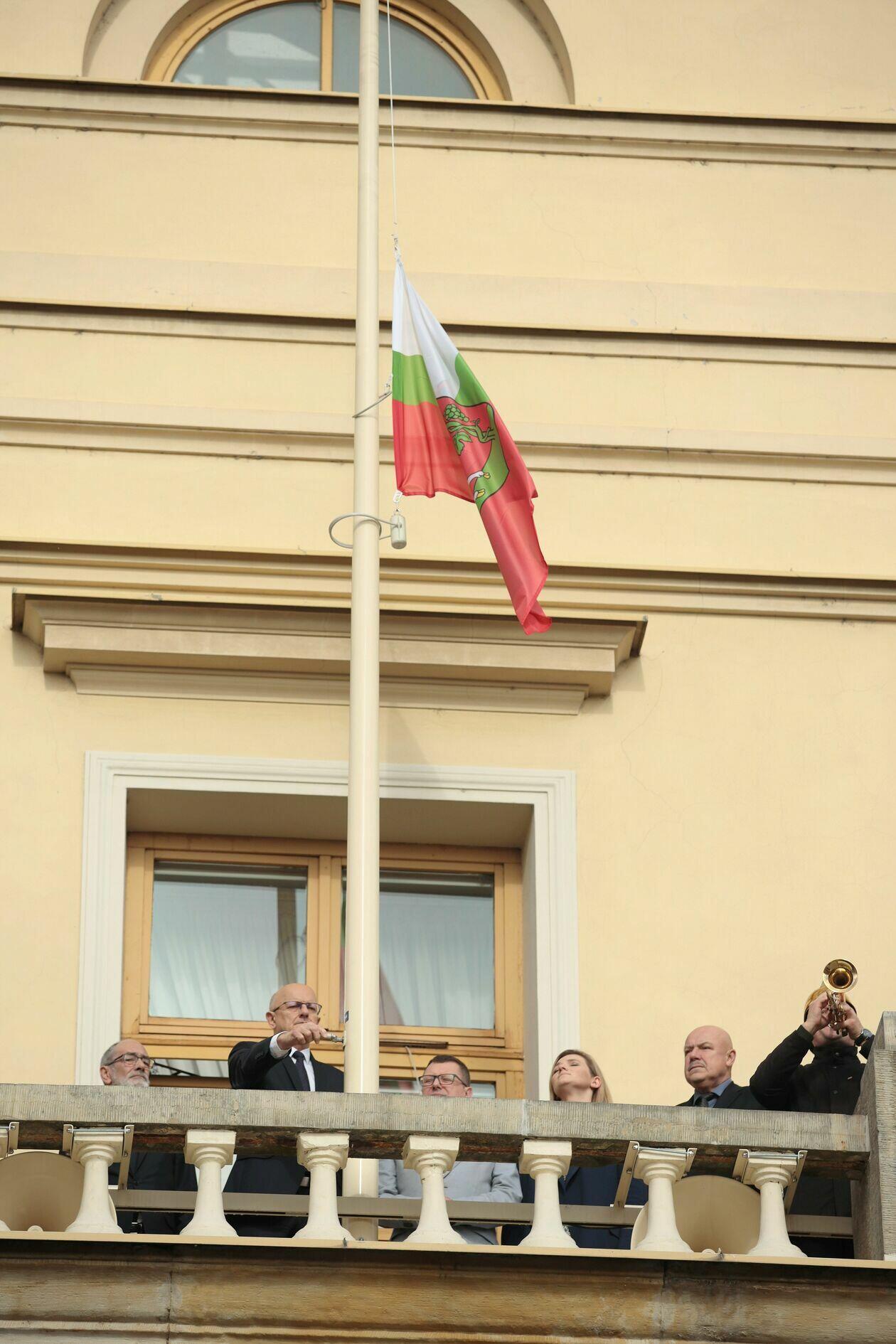 Opuszczenie flagi po śmierci Tomasza Wójtowicza