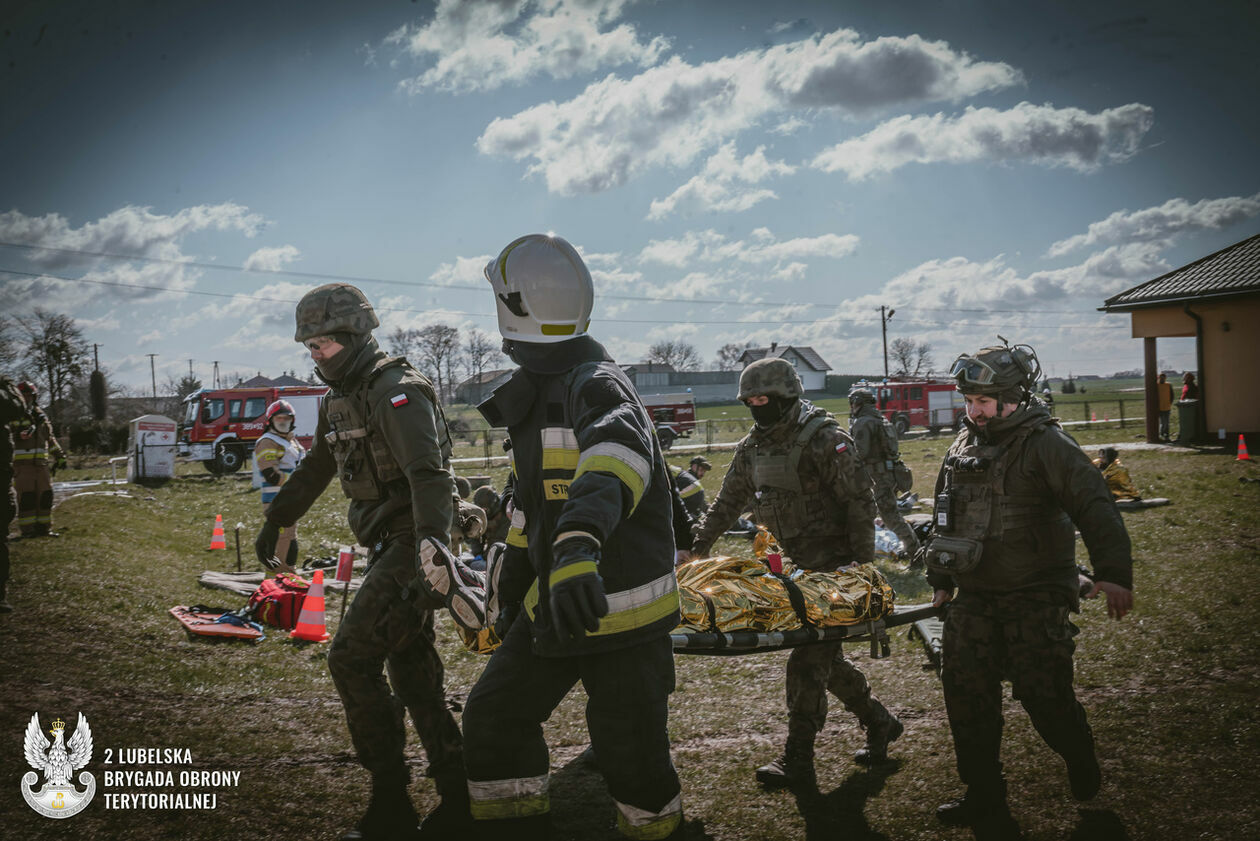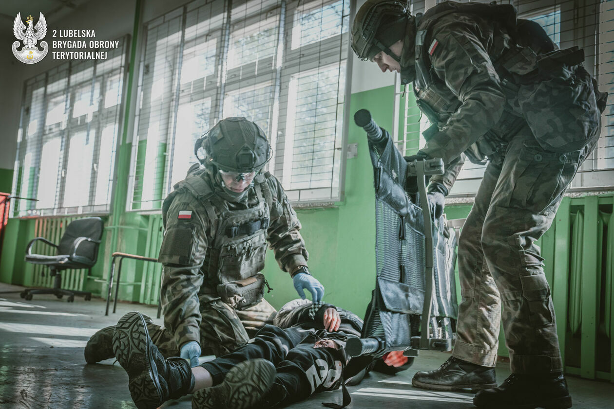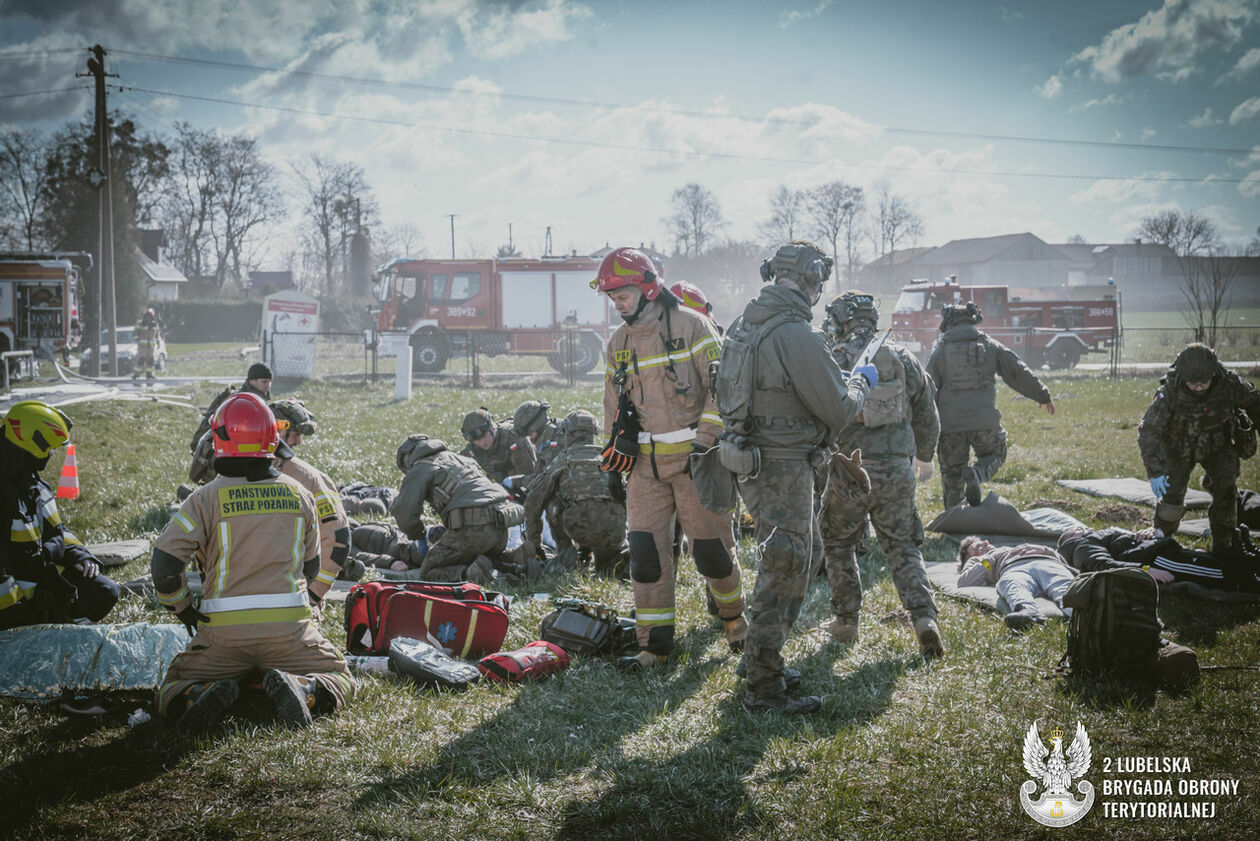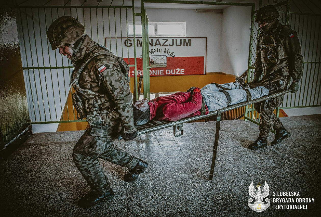 Atak rakietowy na szkołę. Terytorialsi ćwiczyli ze strażakami i ratownikami medycznymi
