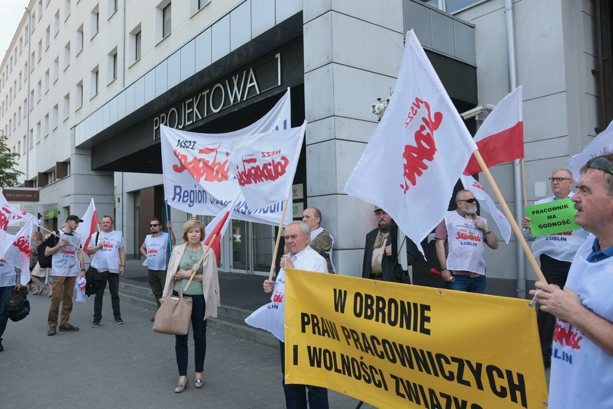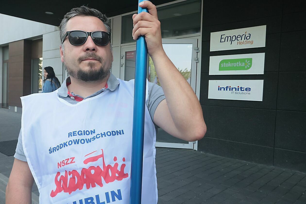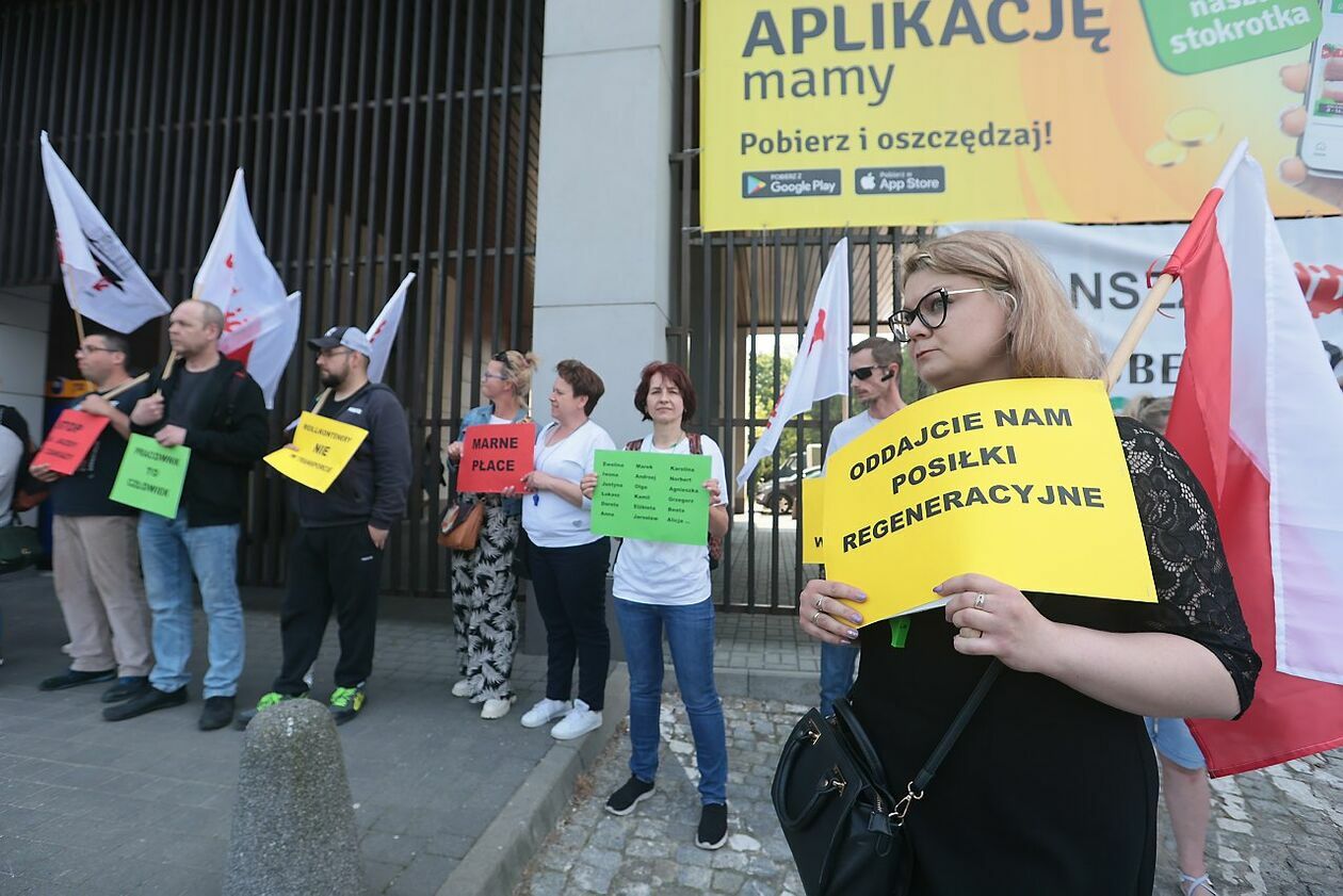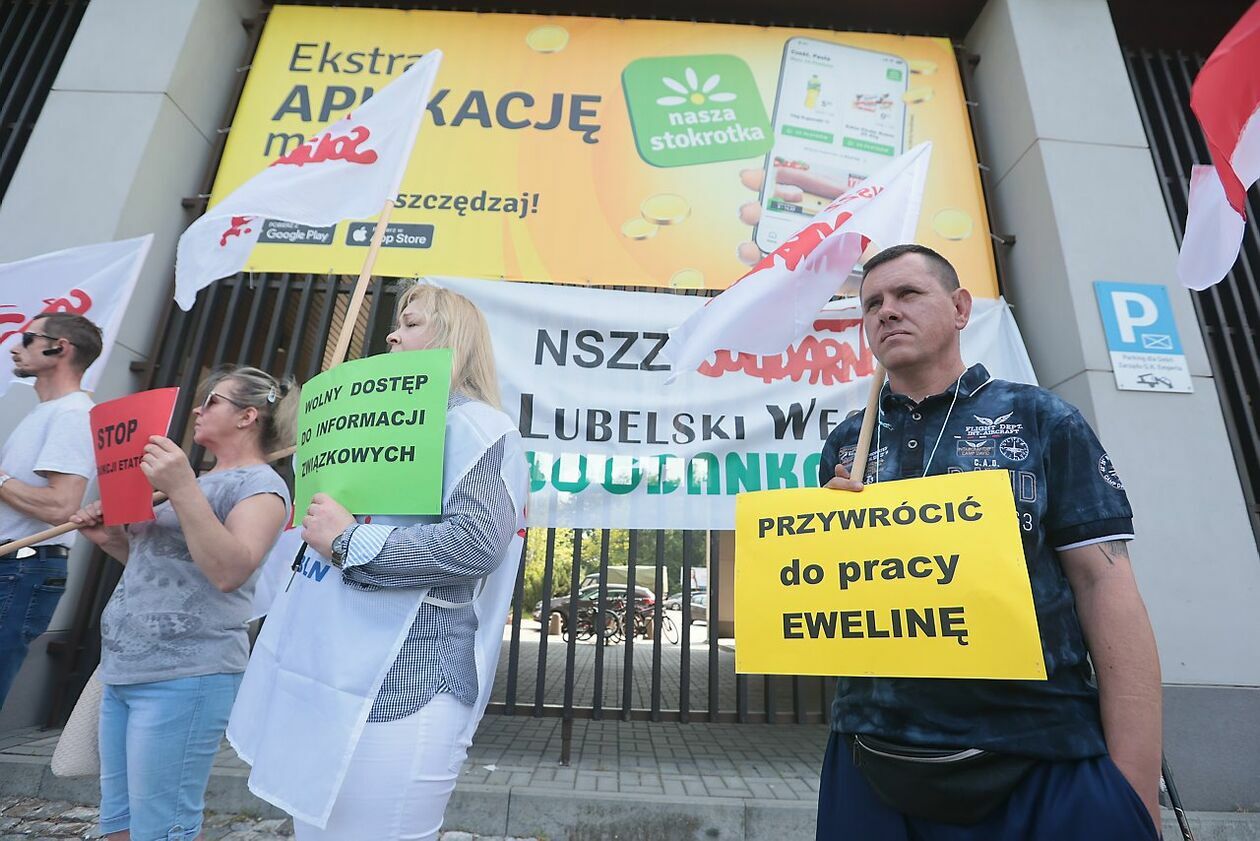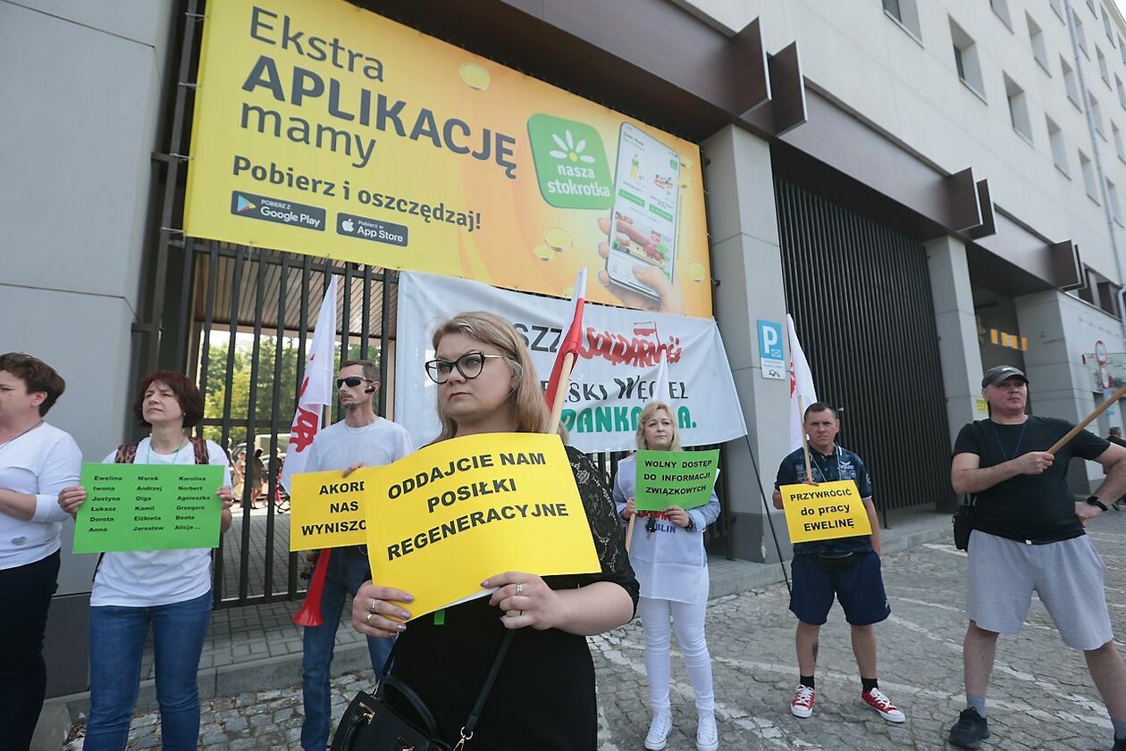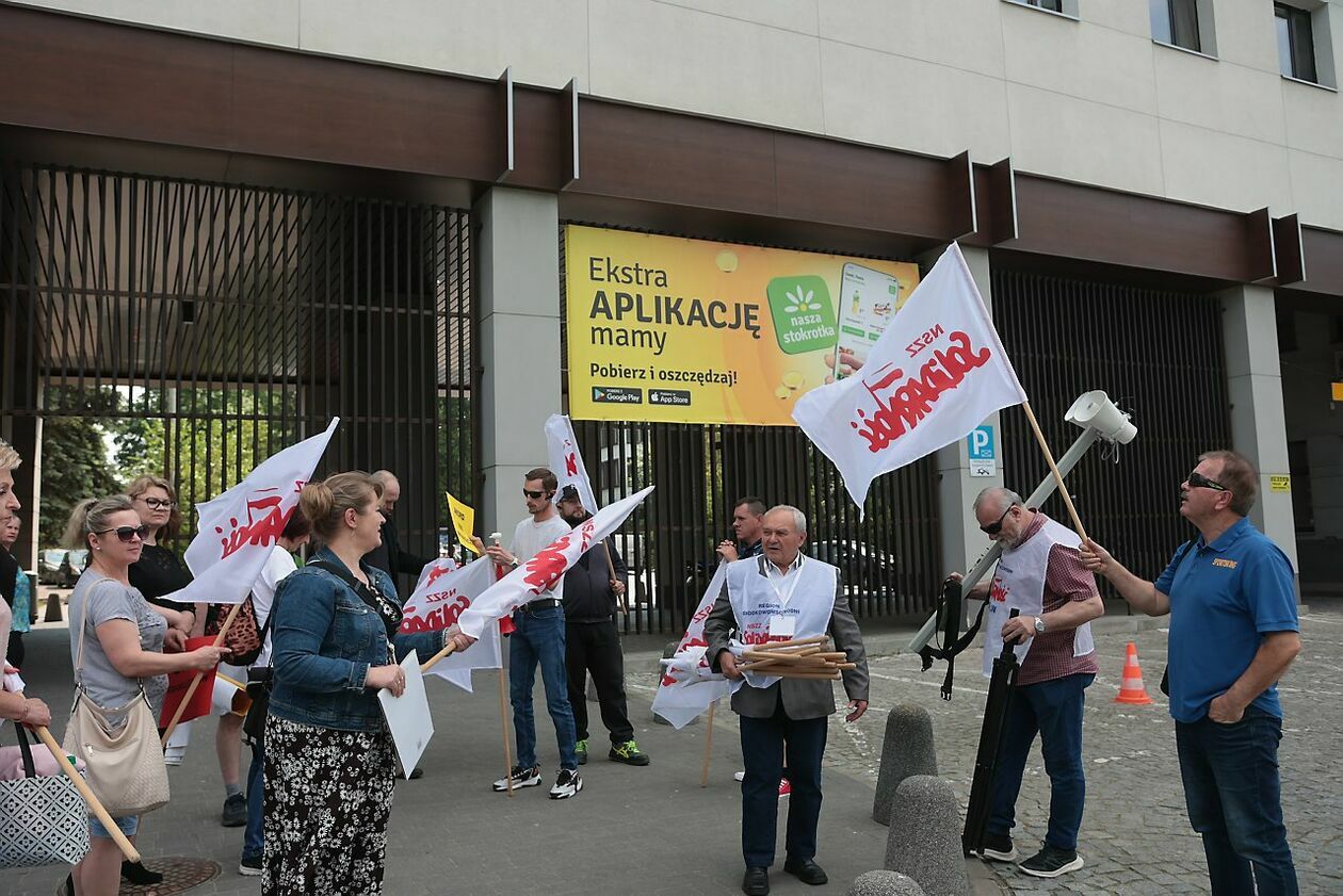 Protest NSZZ Solidarność przed siedzibą Stokrotki