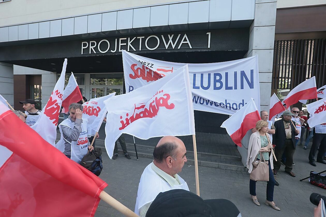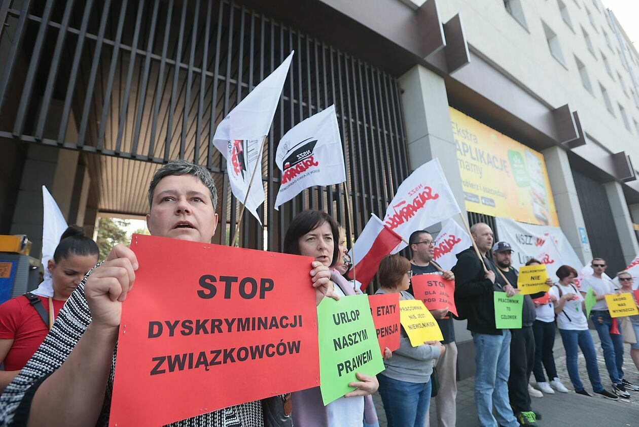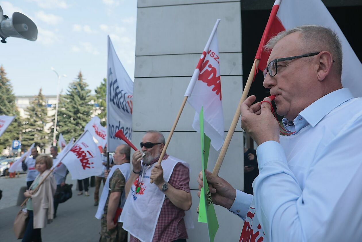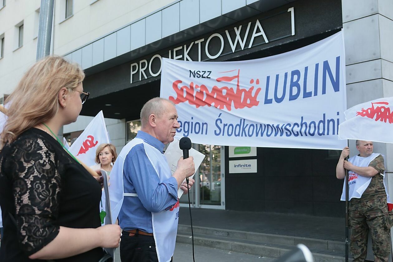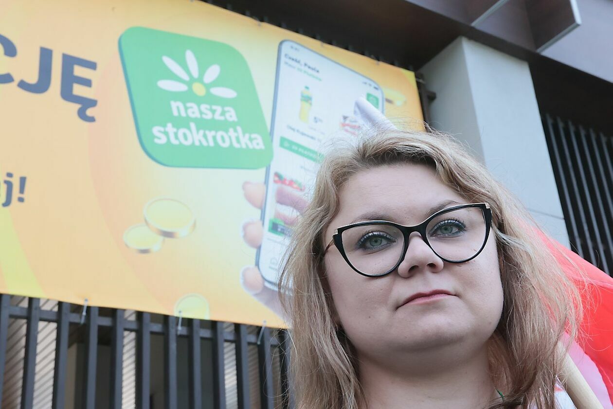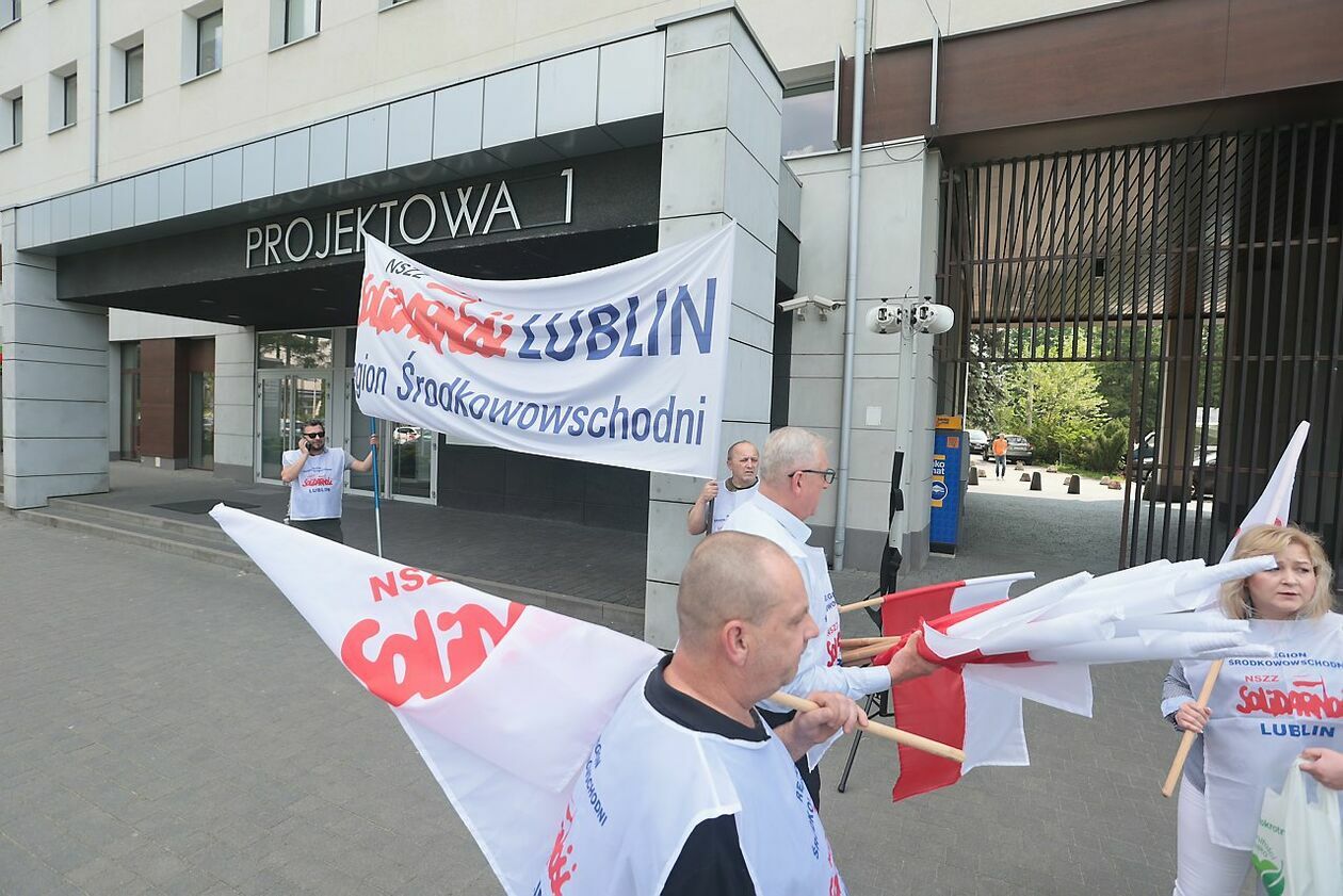Protest NSZZ Solidarność przed siedzibą Stokrotki