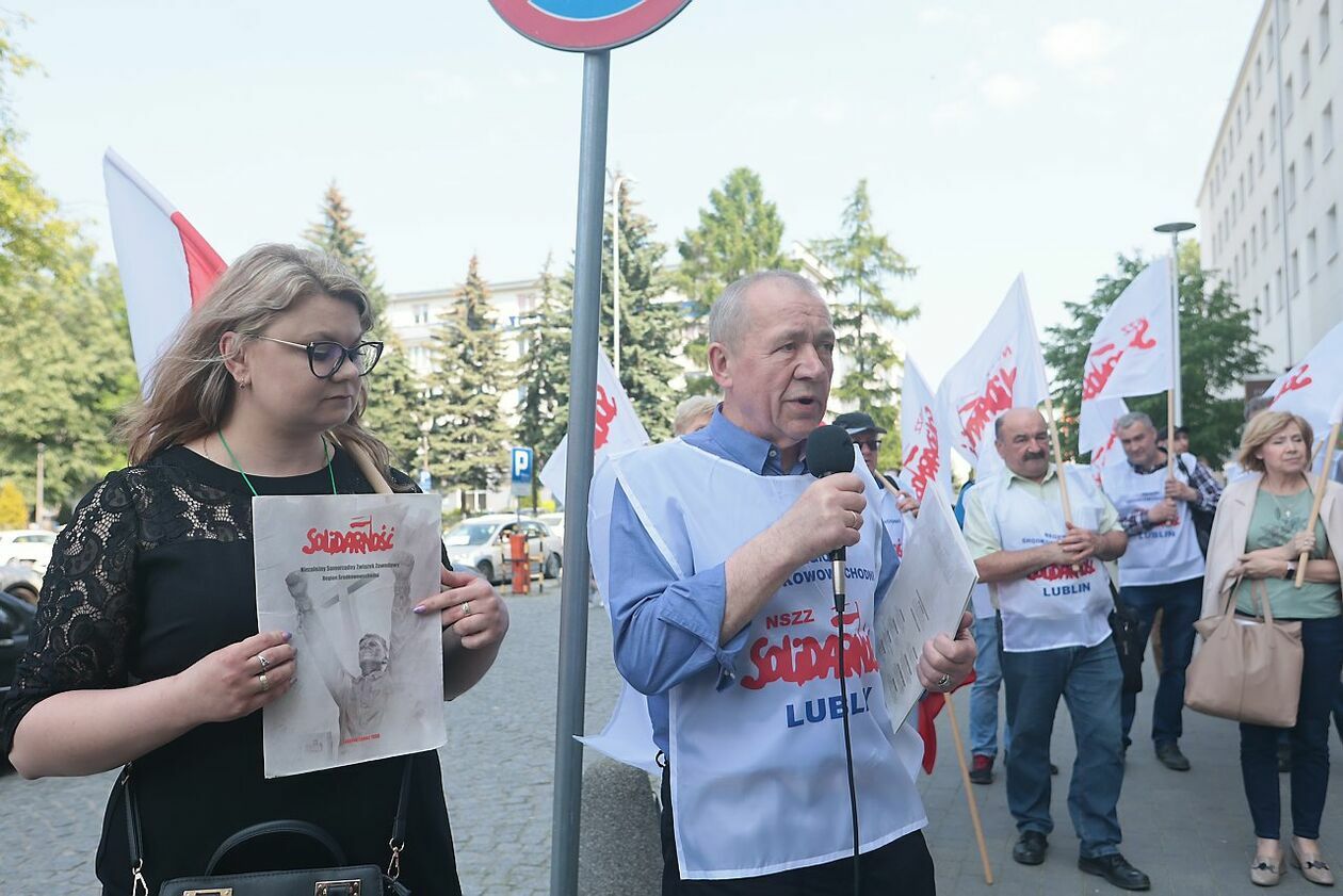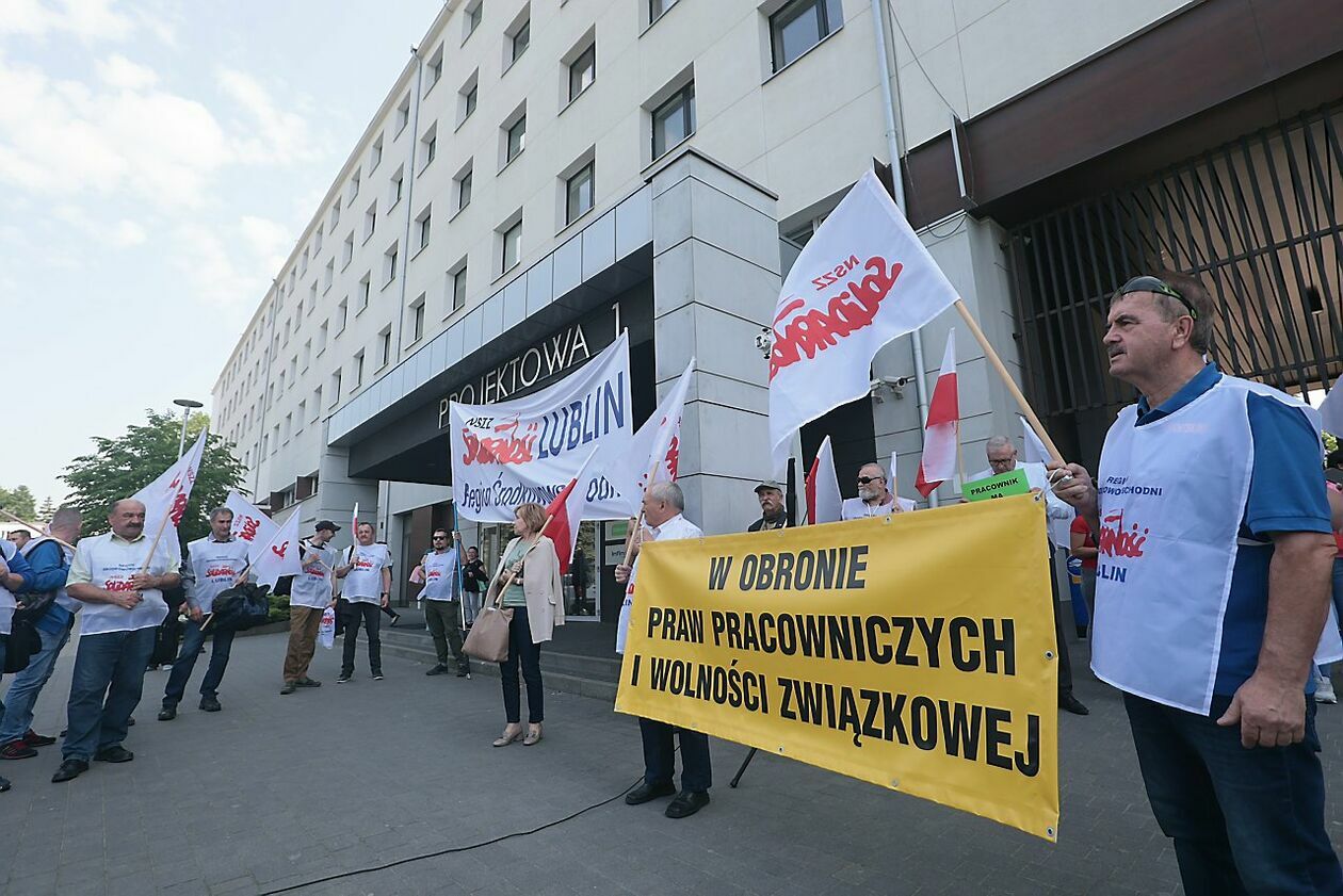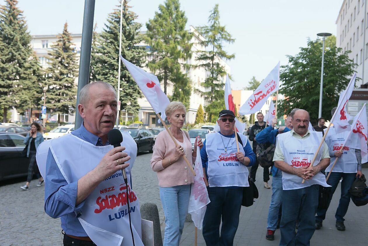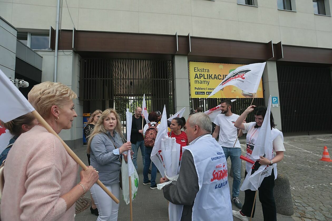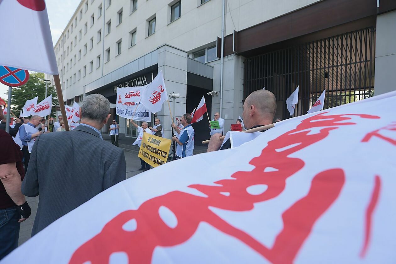 Protest NSZZ Solidarność przed siedzibą Stokrotki