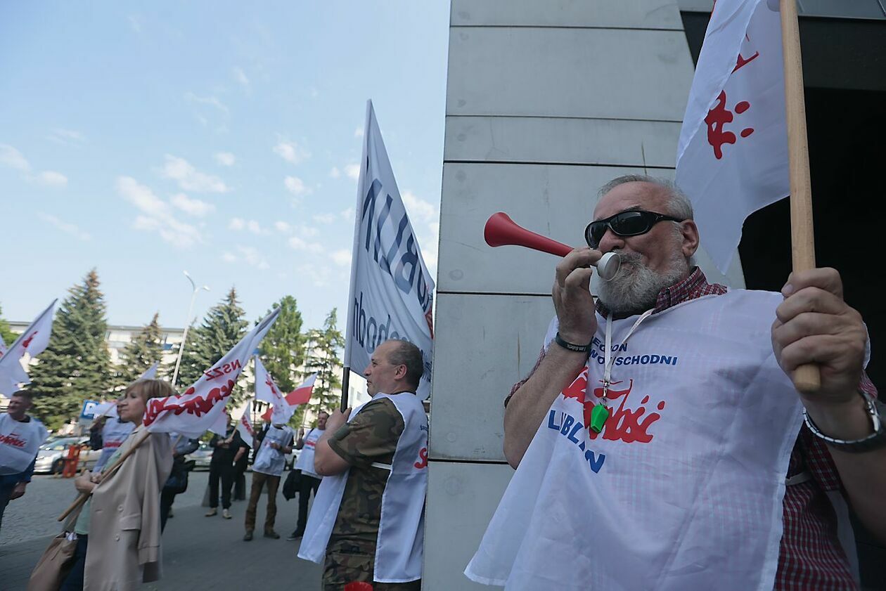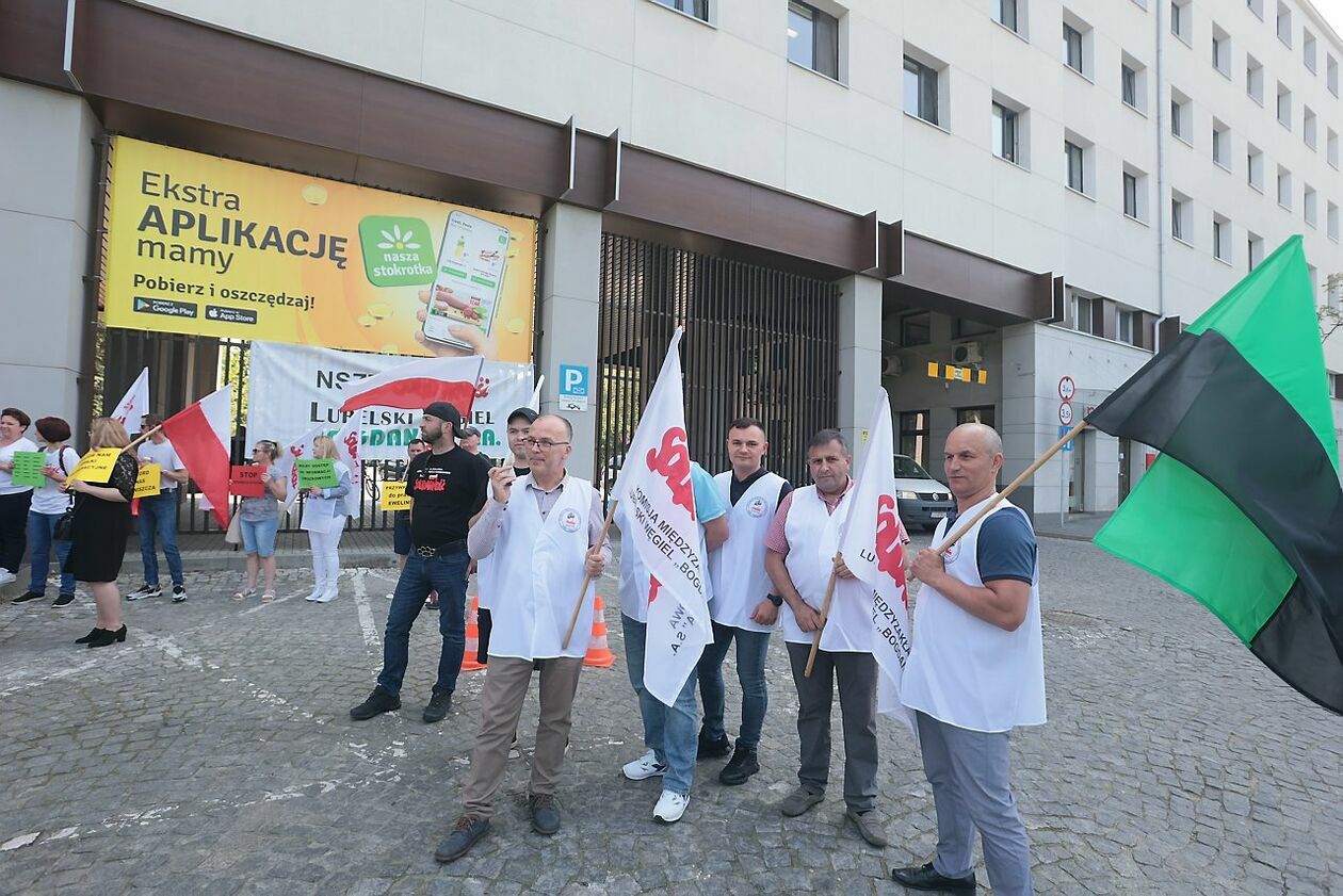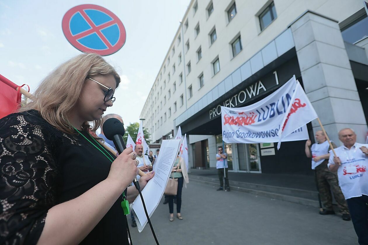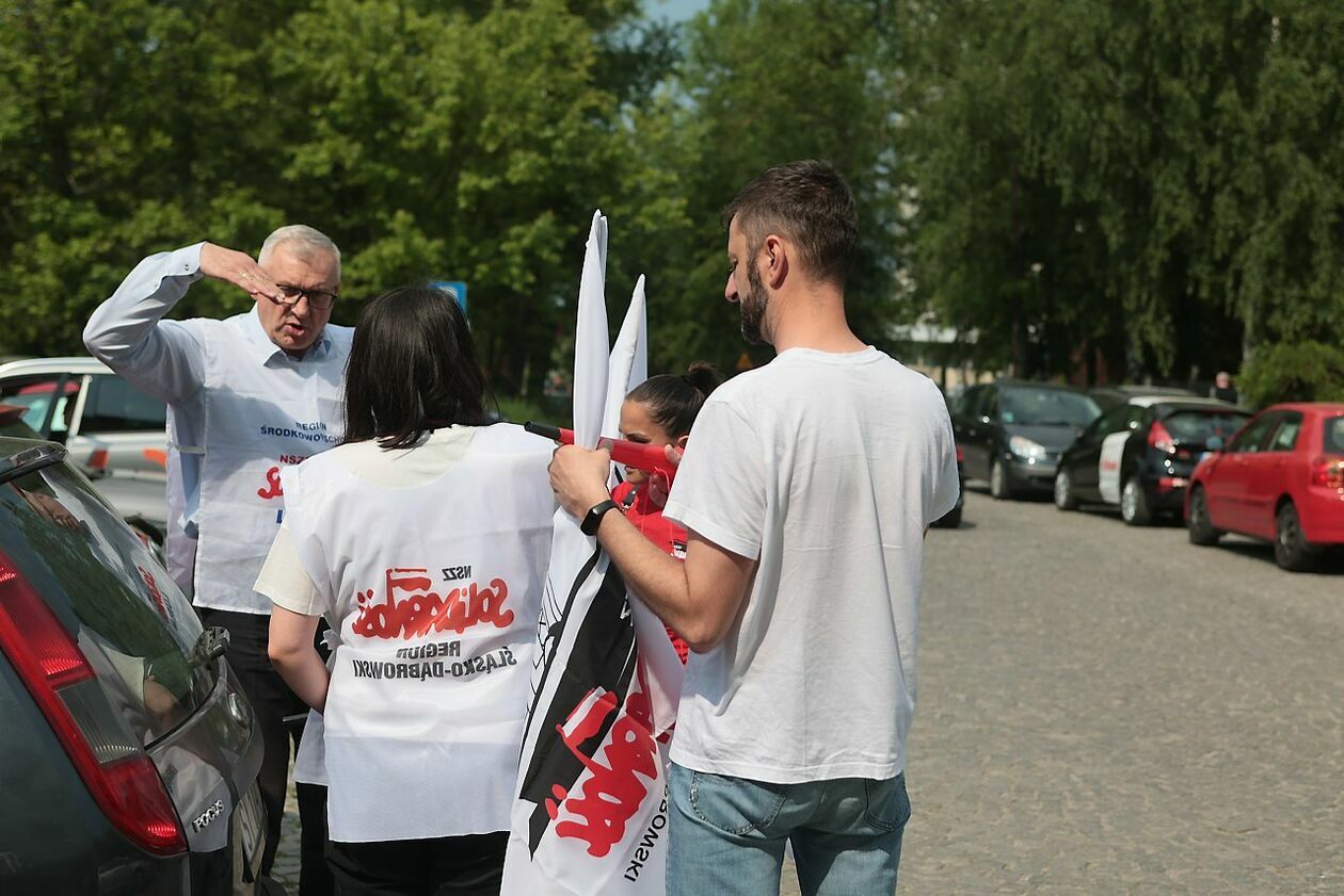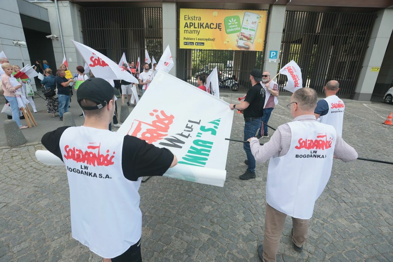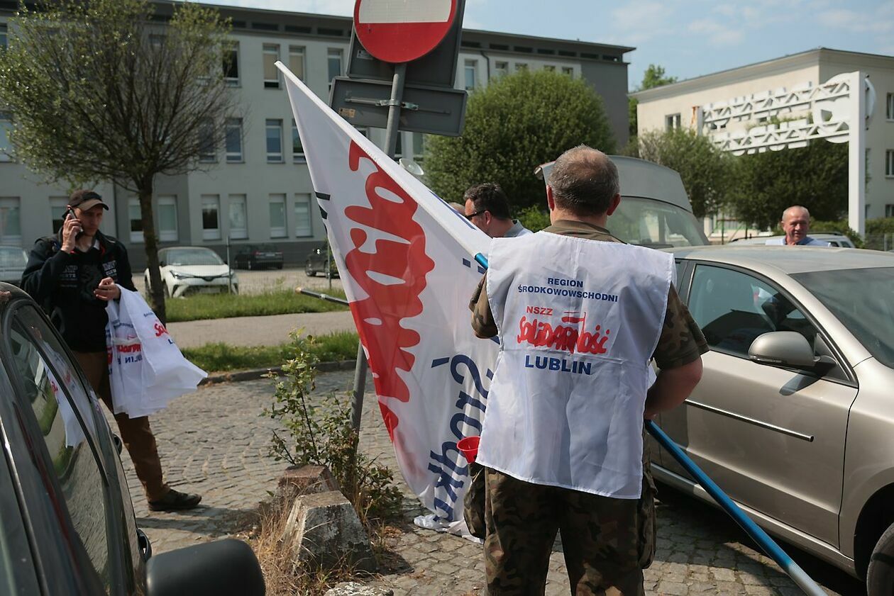 Protest NSZZ Solidarność przed siedzibą Stokrotki