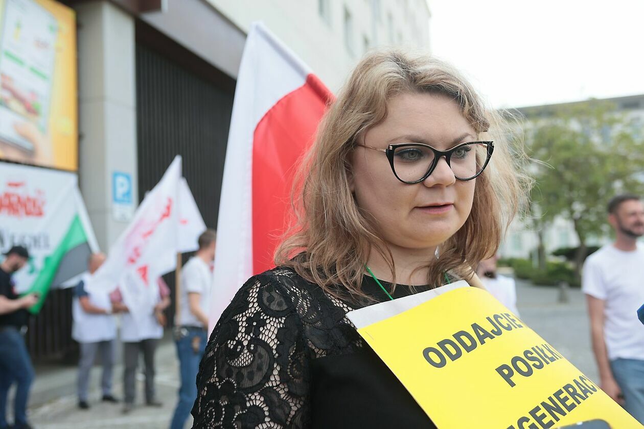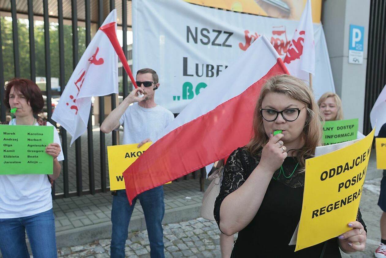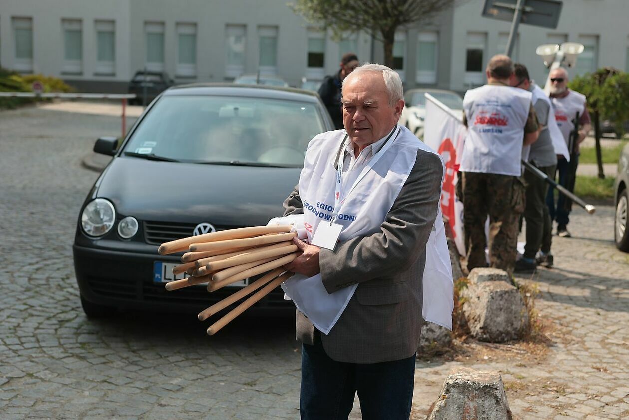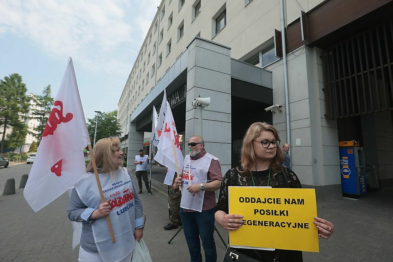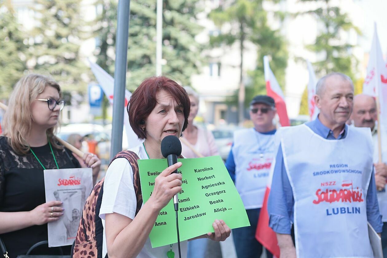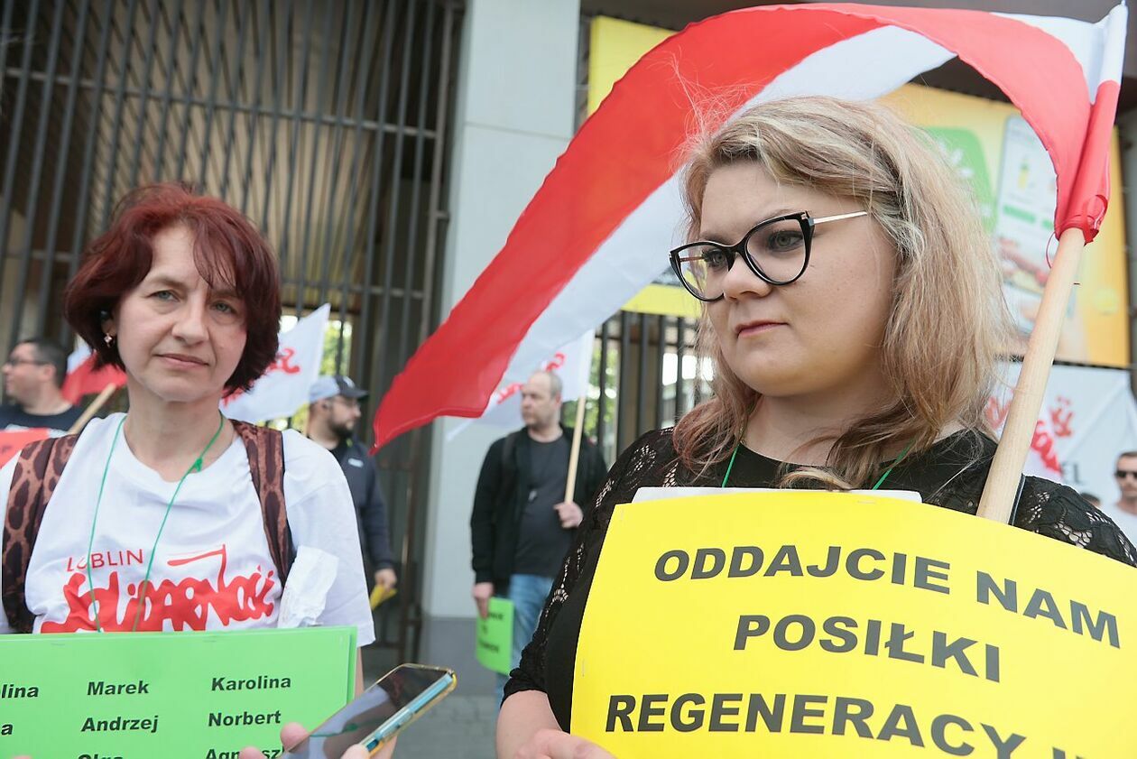 Protest NSZZ Solidarność przed siedzibą Stokrotki