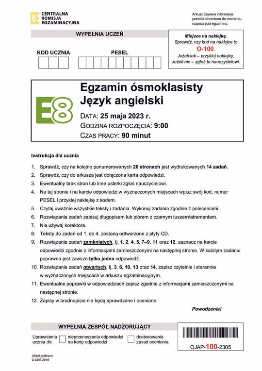 Egzamin Ósmoklasisty. Język angielski