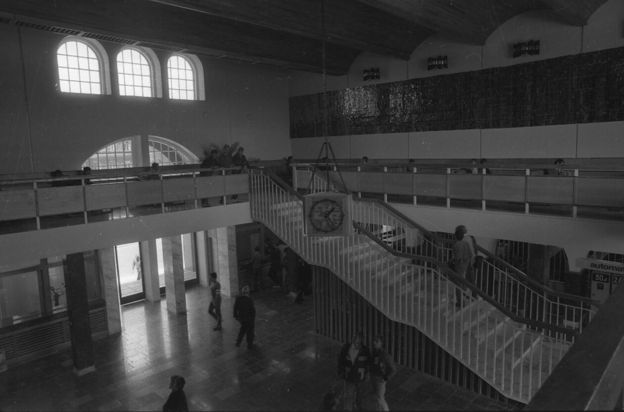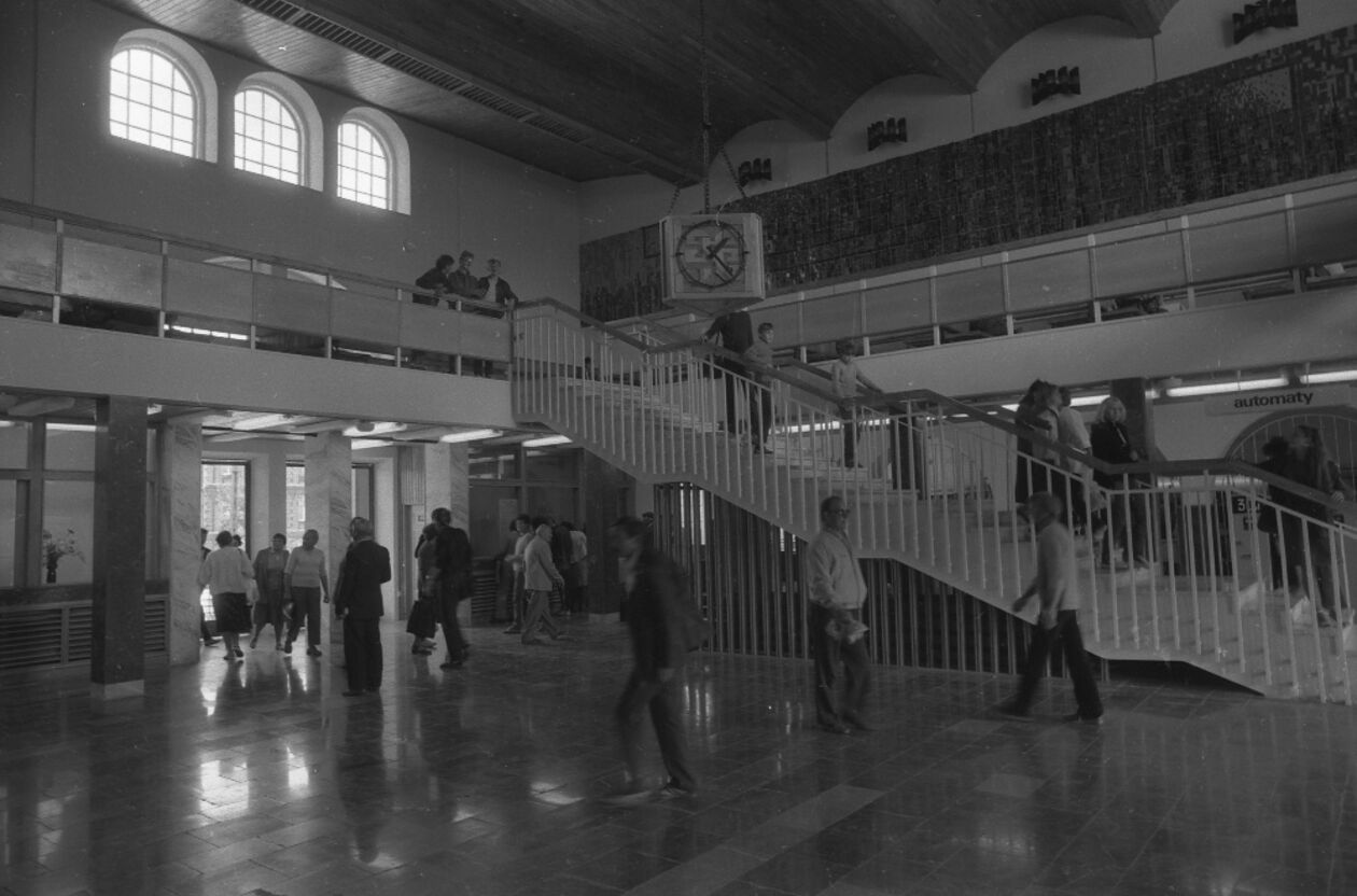 Dworzec kolejowy PKP w Lublinie. Widok na halę główną dworca z antresoli