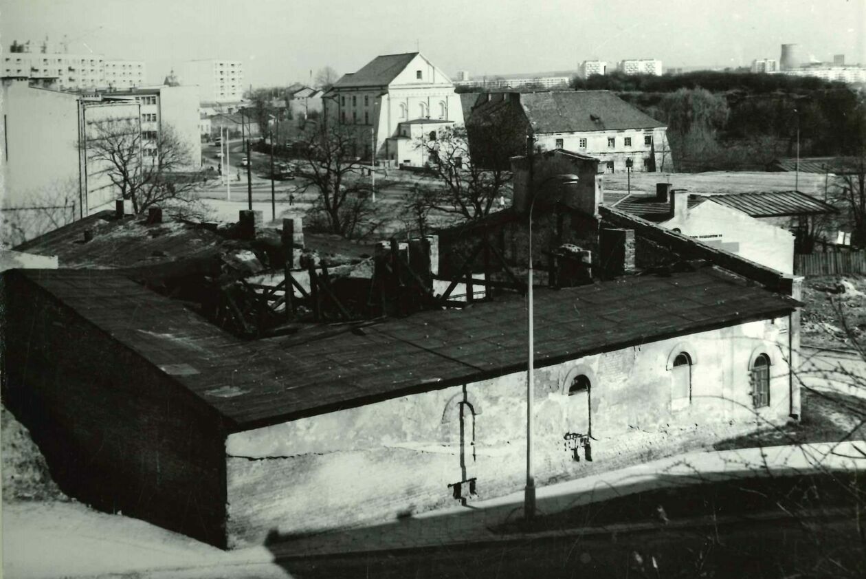 widok na skrzyżowanie ulic Bieruta (obecnie Lwowska) i Podzamcze oraz Grodzisko. Po lewej stronie Kirkut i Tatary, w tle komin elektrociepłowni