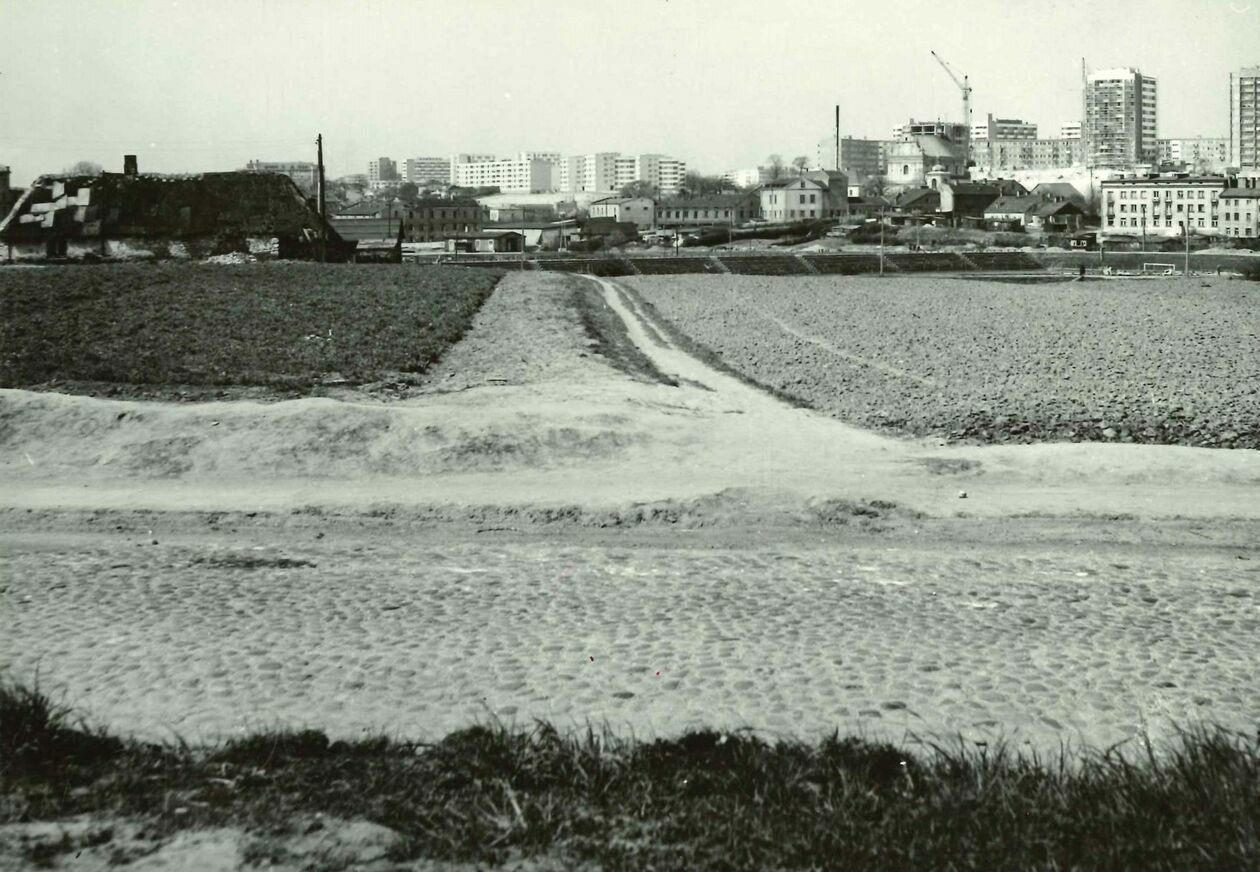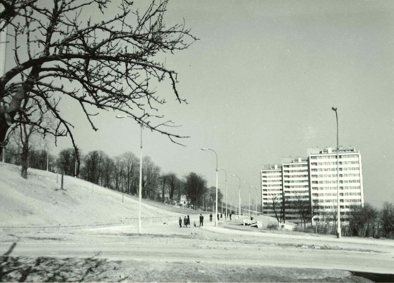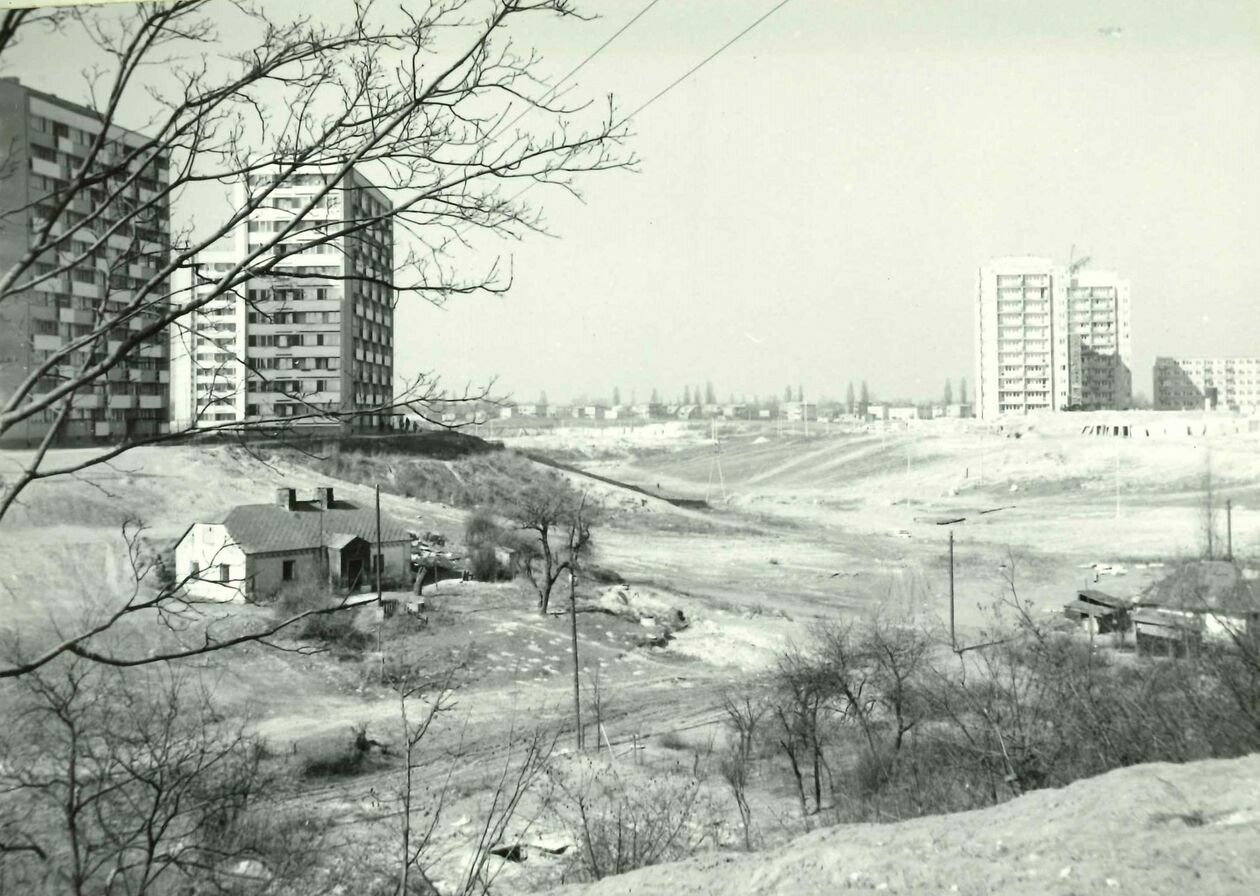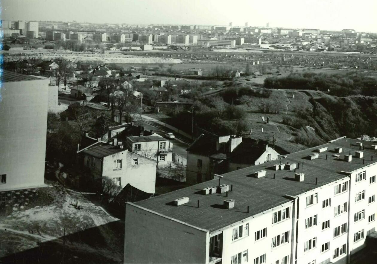 Widok na wąwóz między osiedlem Kalinowszczyzna B i D. Po lewej stronie bloki przy ul. Okrzei a po prawej ul. Warskiego (obecnie Orlika-Ruckemana)