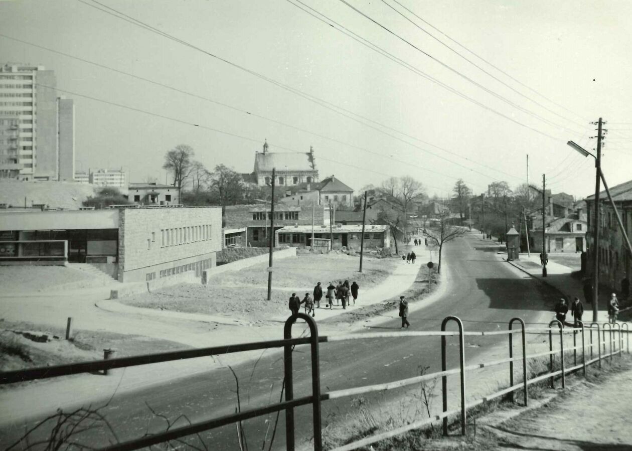 Ulica Augustiańska (obecnie Kleeberga) po przebudowie w 1971 r. - widok od strony kościoła p.w. Św. Agnieszki