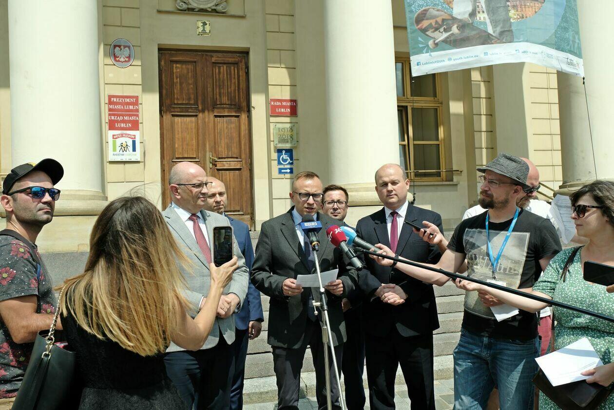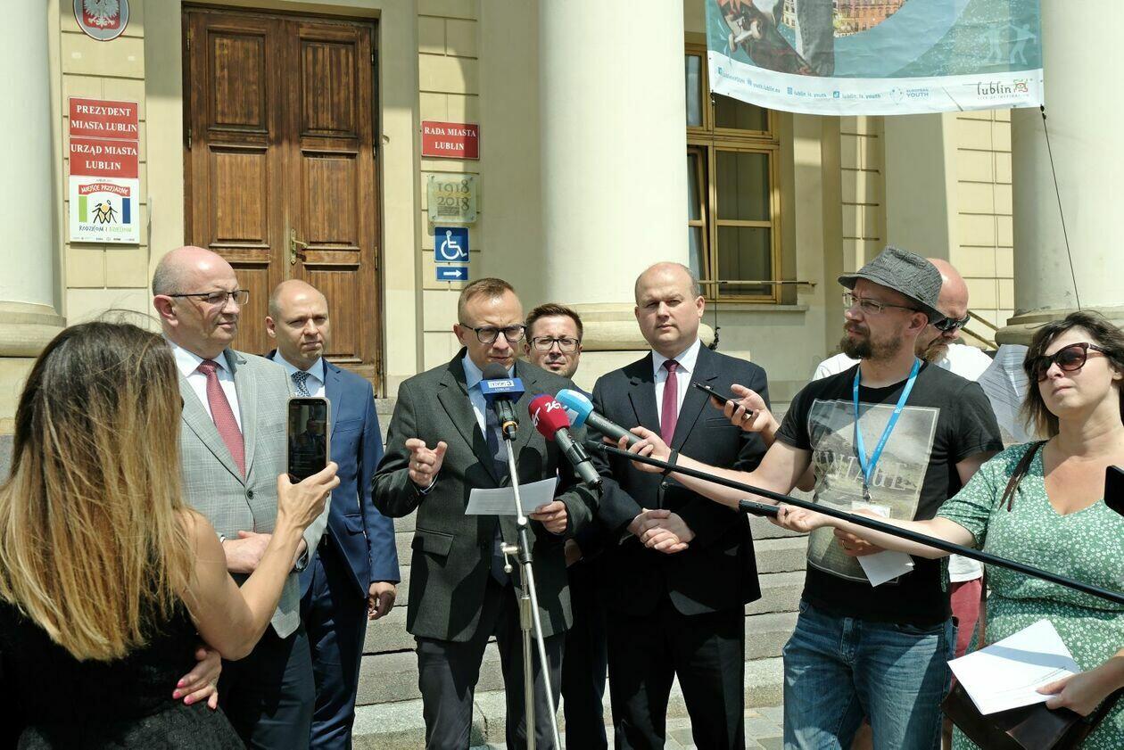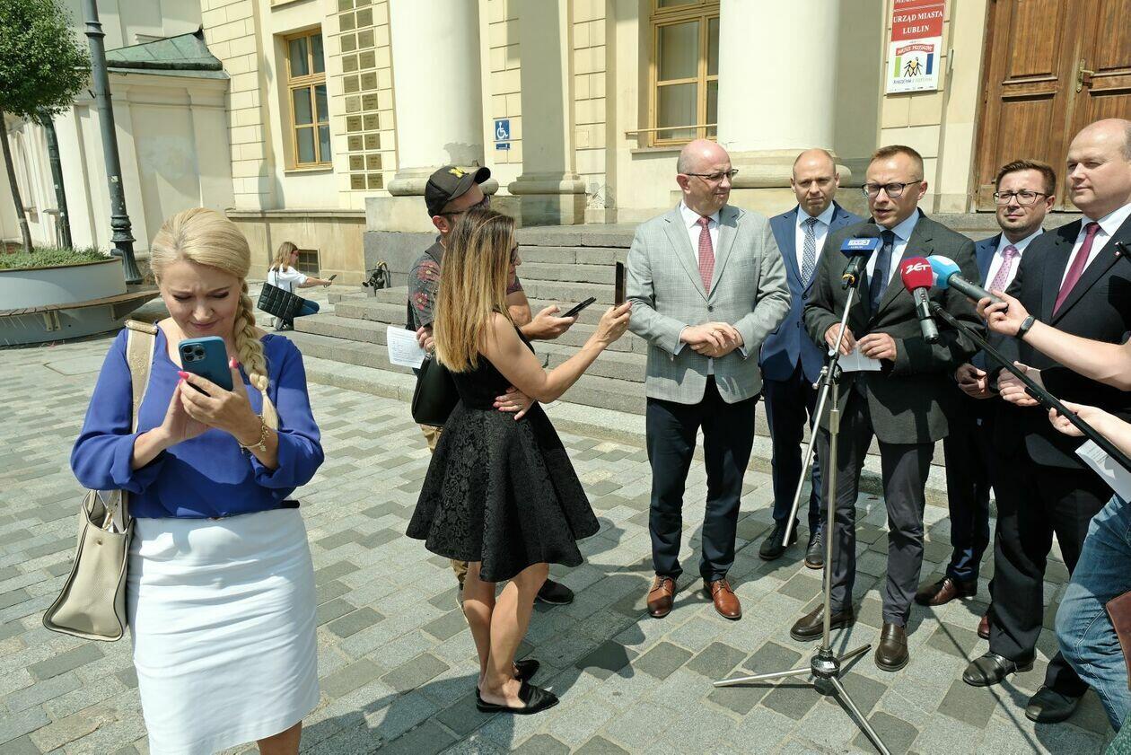 Konferencja prasowa wiceministra Artura Sobonia PIS zakłócon...