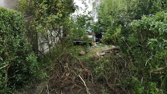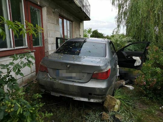 Rozpędzone BMW staranowało ogrodzenie i wjechało na posesję....