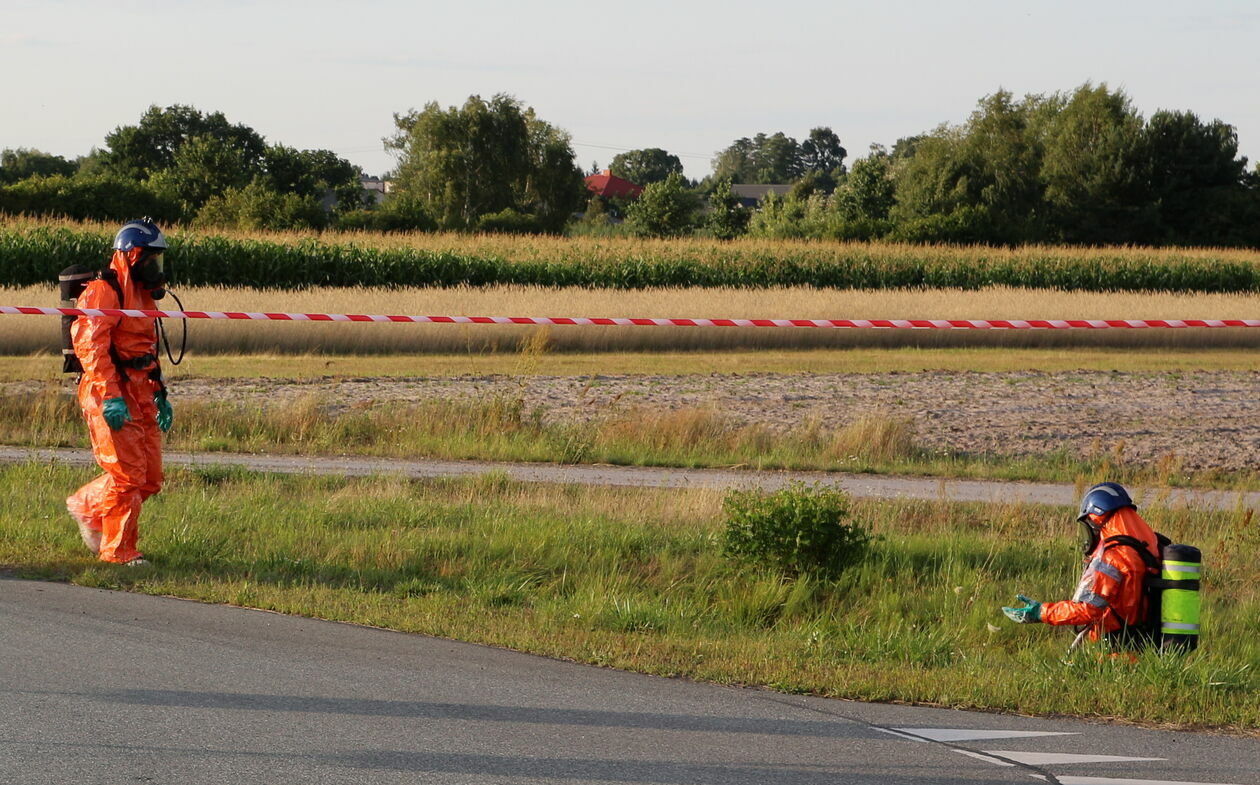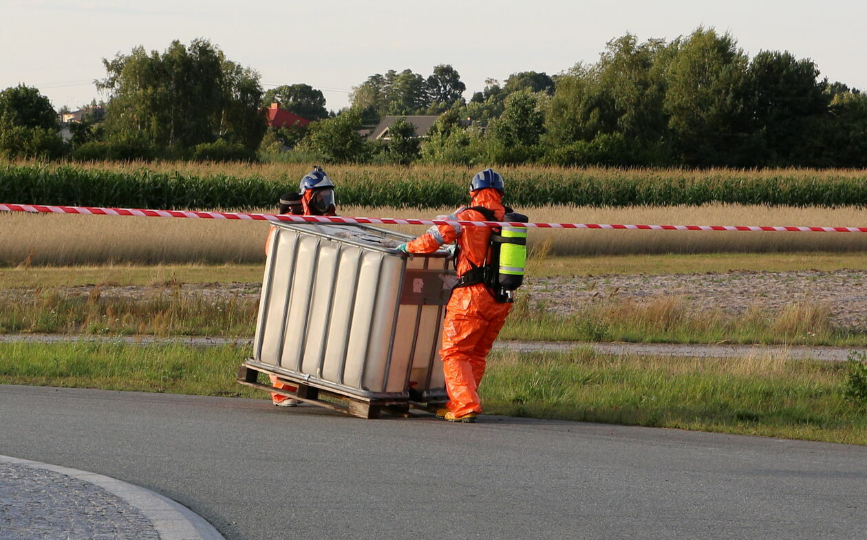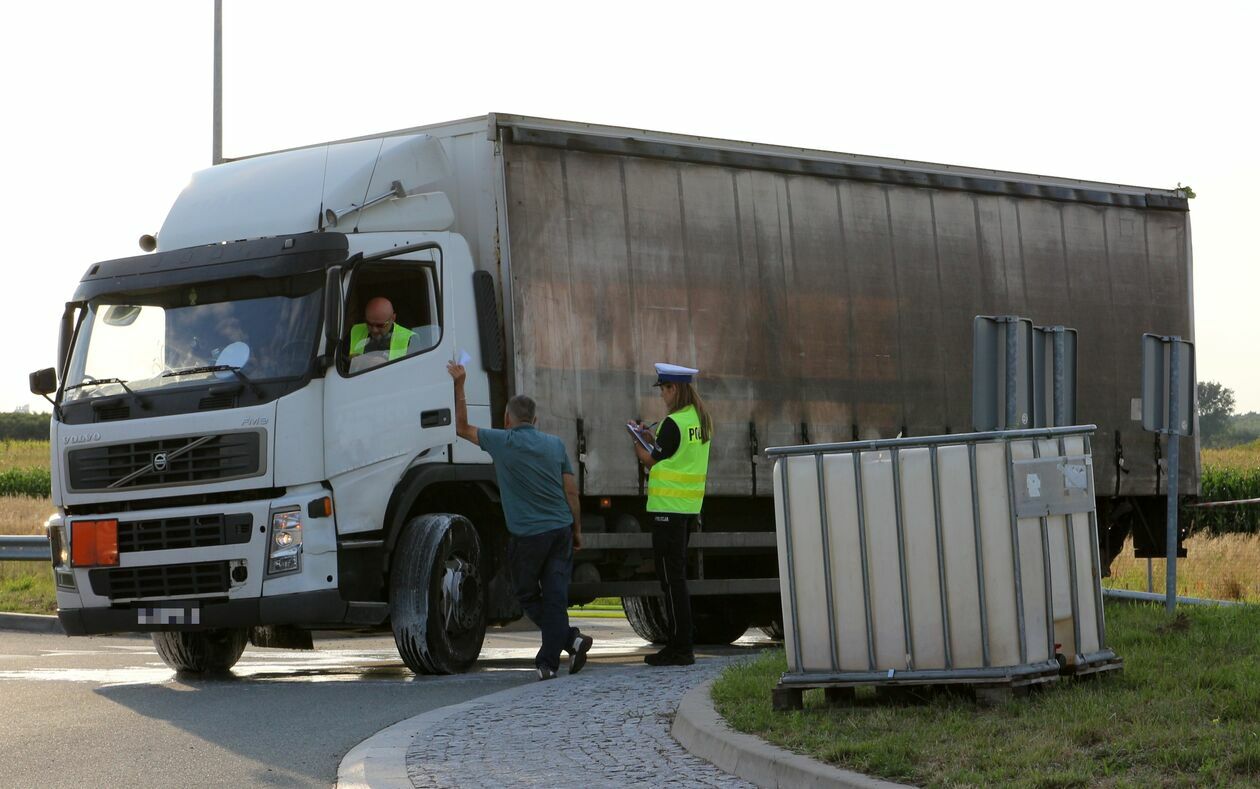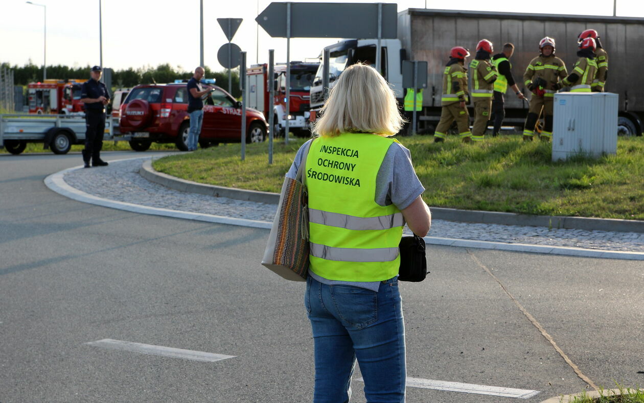 Pojemniki z kwasem wypadły na jezdnię