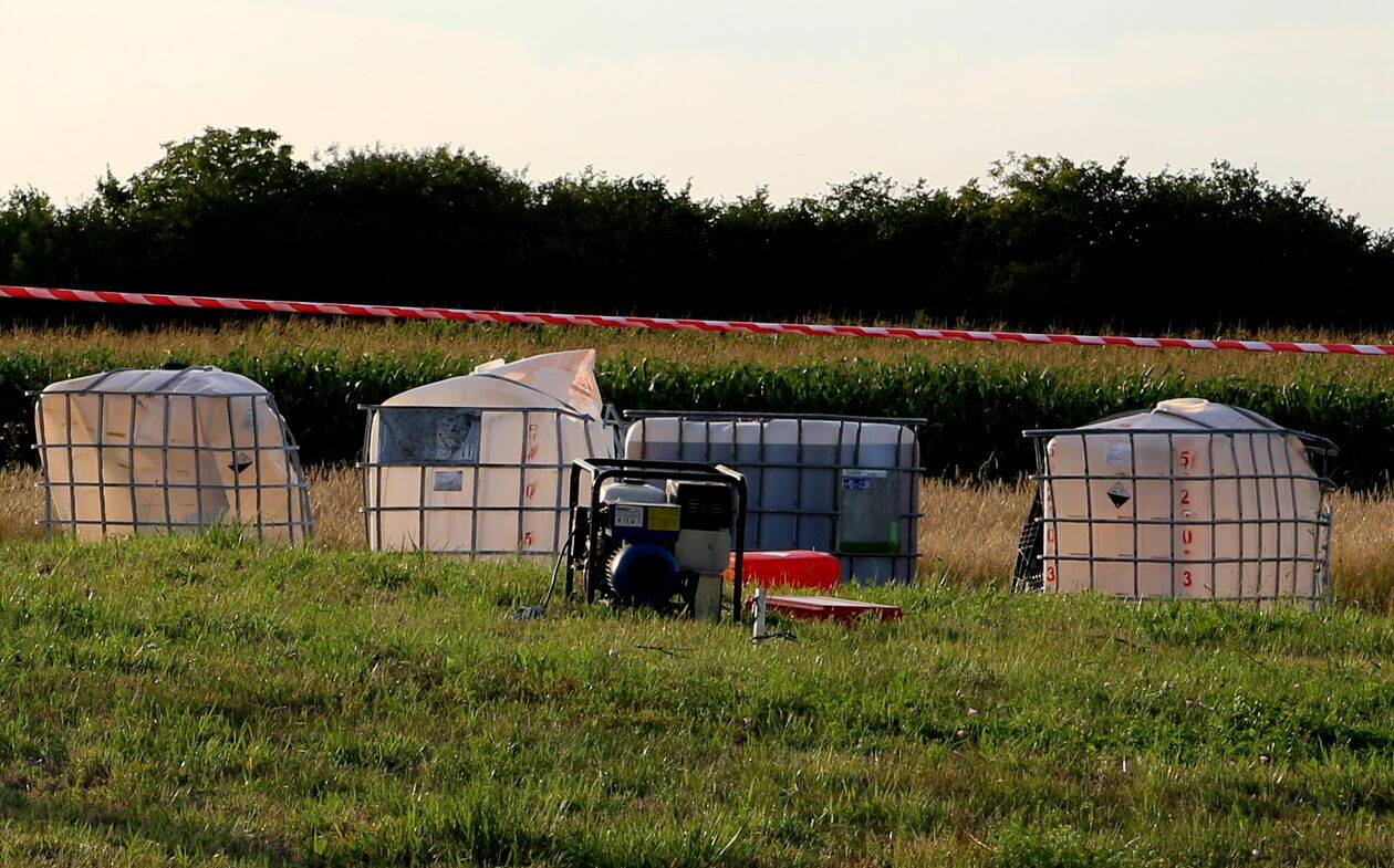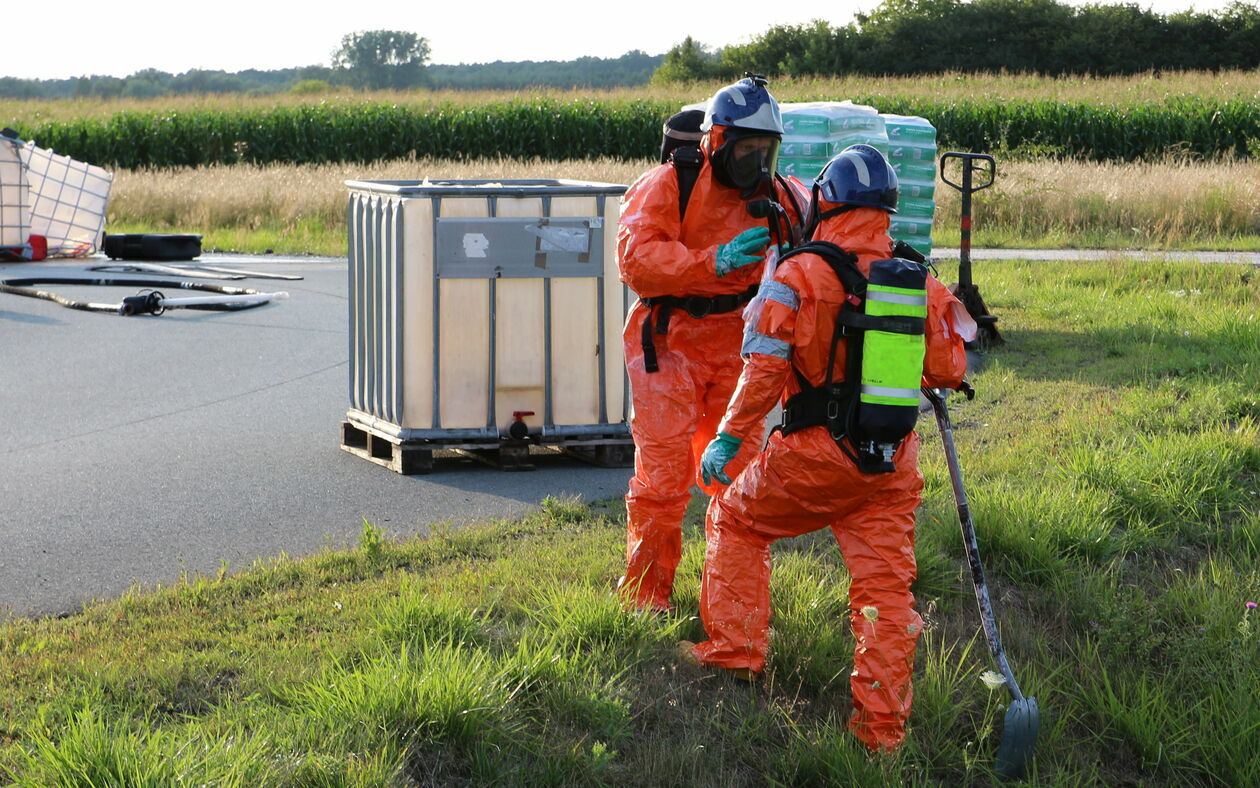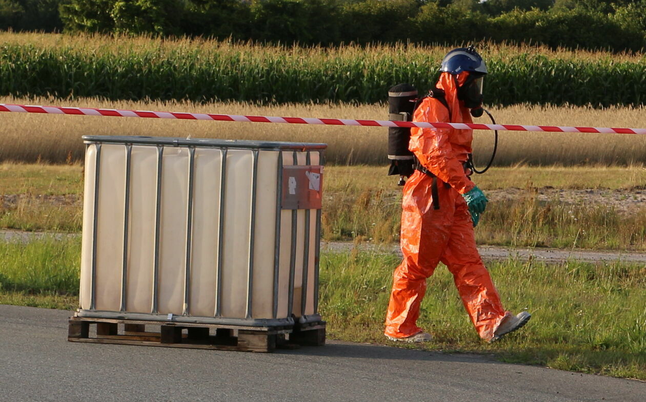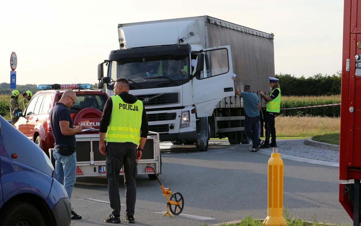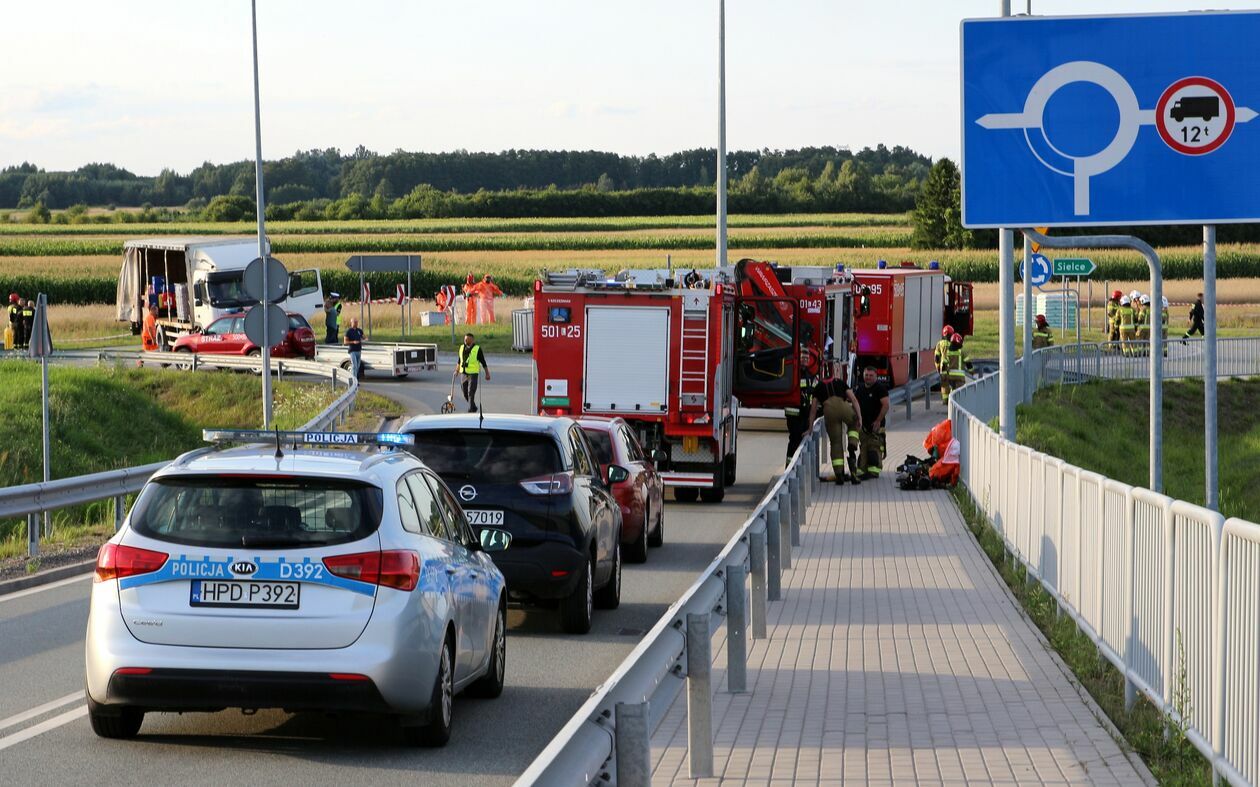 Pojemniki z kwasem wypadły na jezdnię