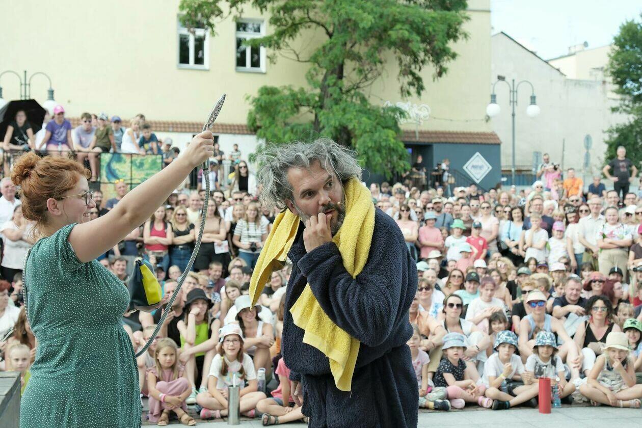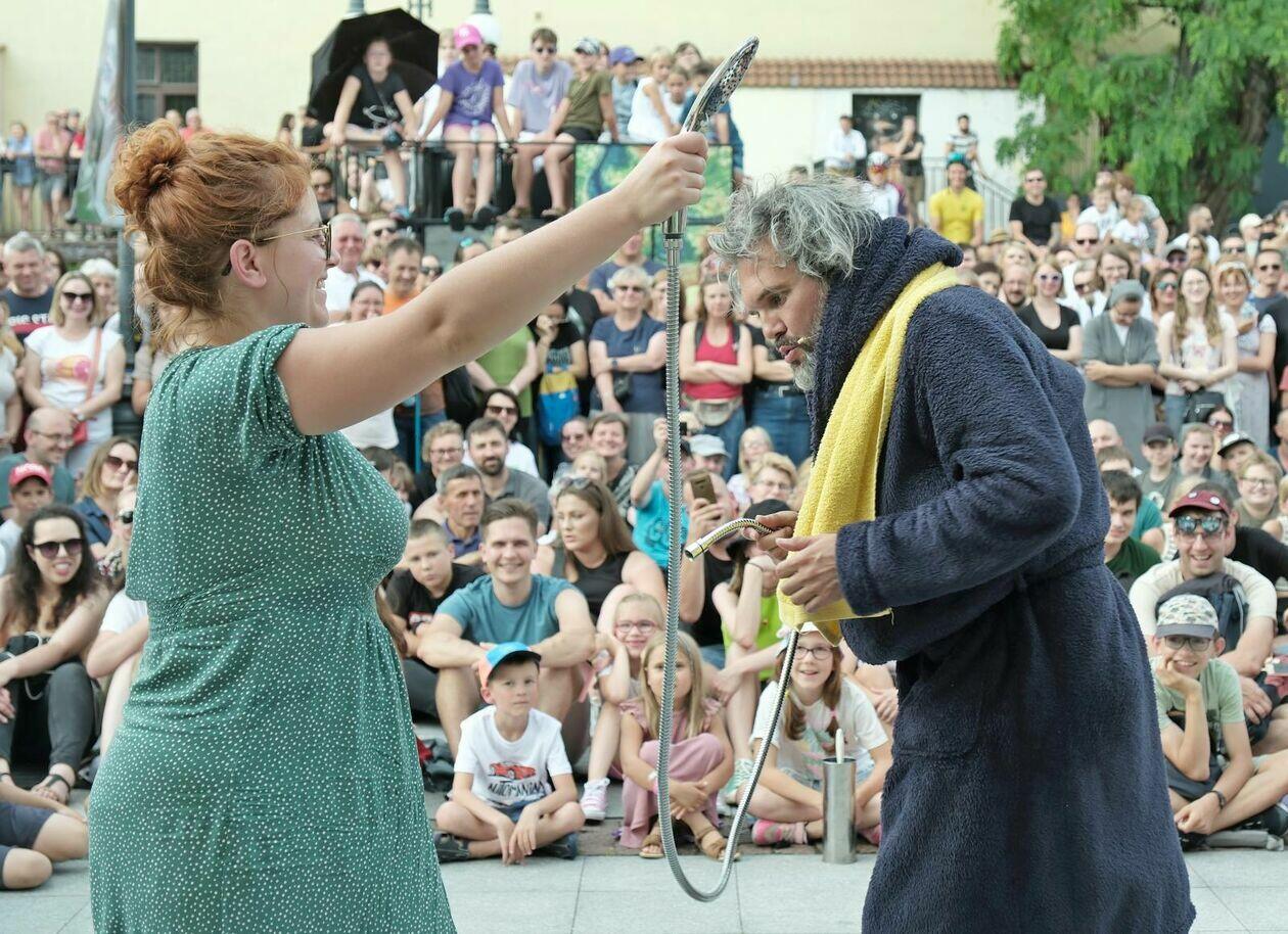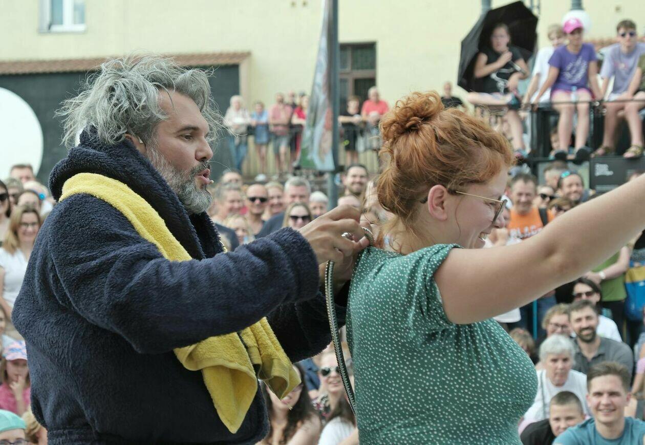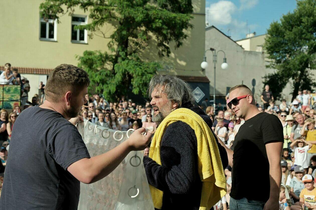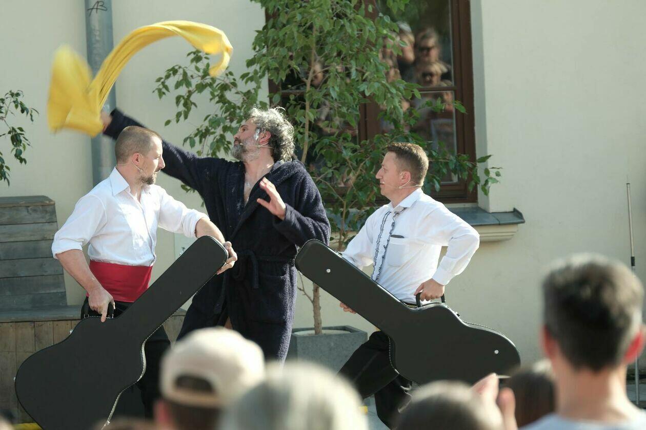 Na placu przed Centrum Kultury występuje Tres de la nada ze skeczem “H2Ooops”