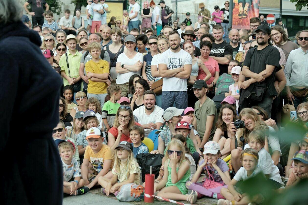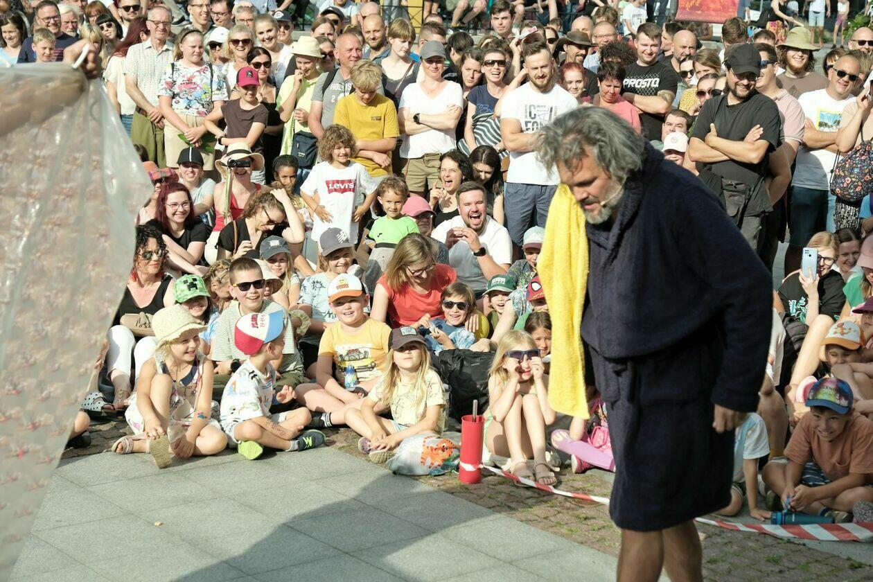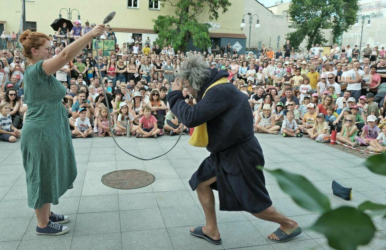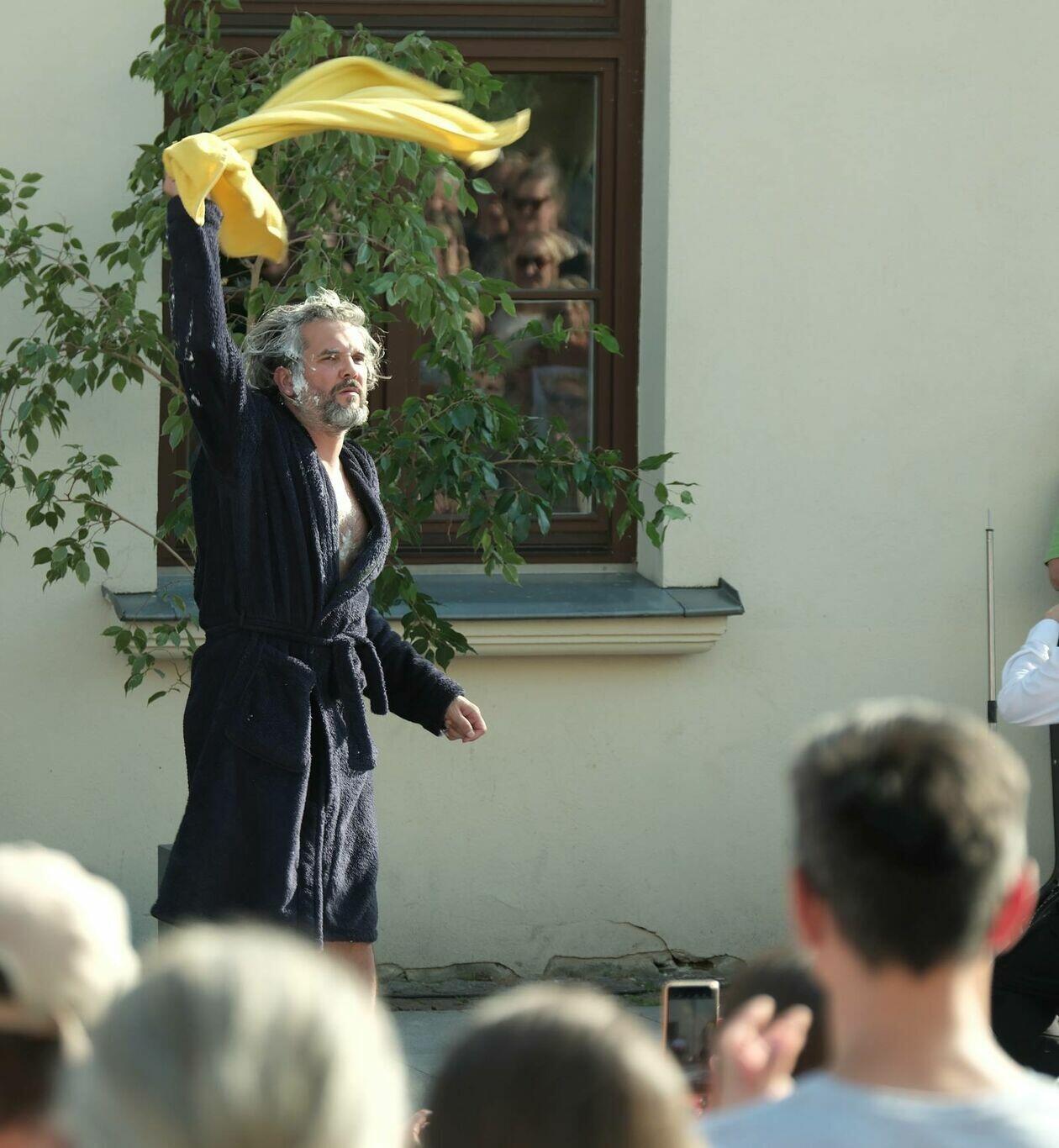 Na placu przed Centrum Kultury występuje Tres de la nada ze skeczem “H2Ooops”
