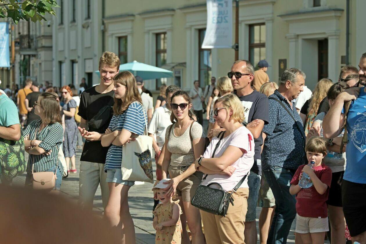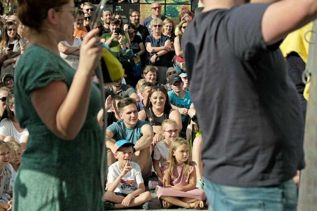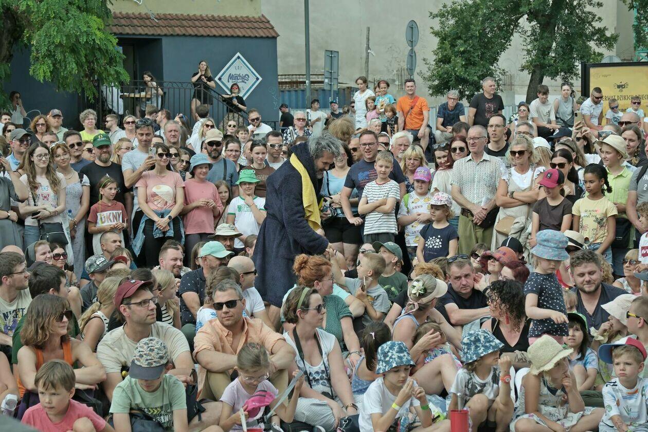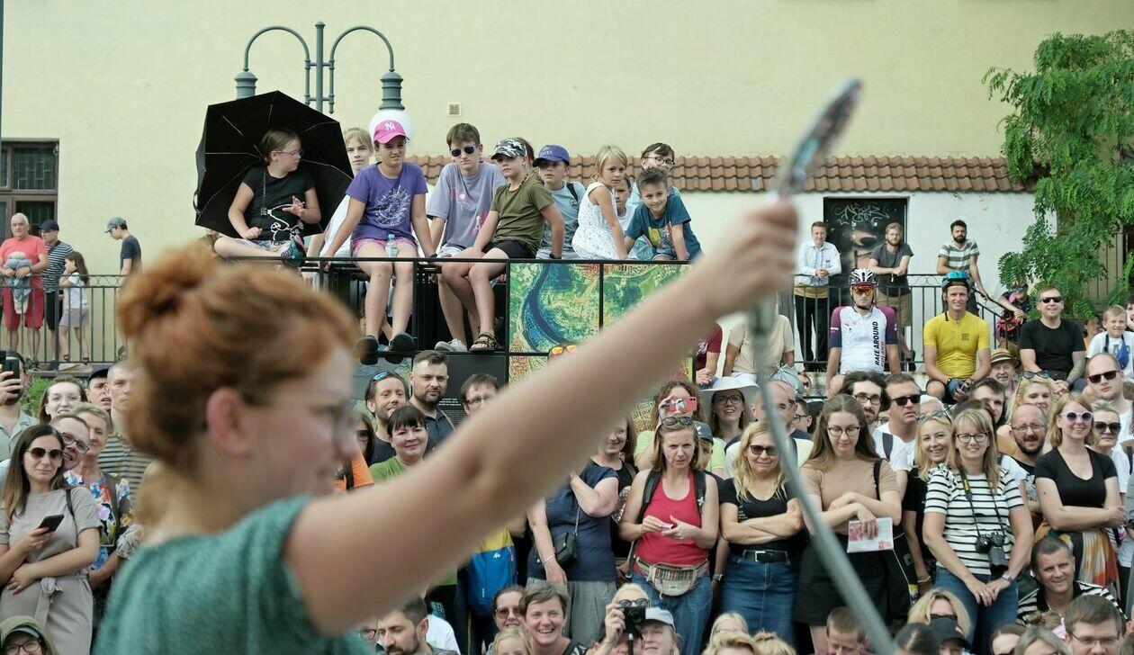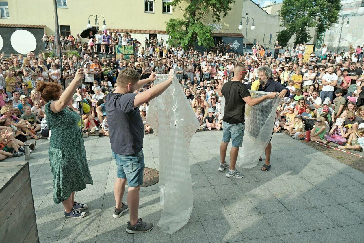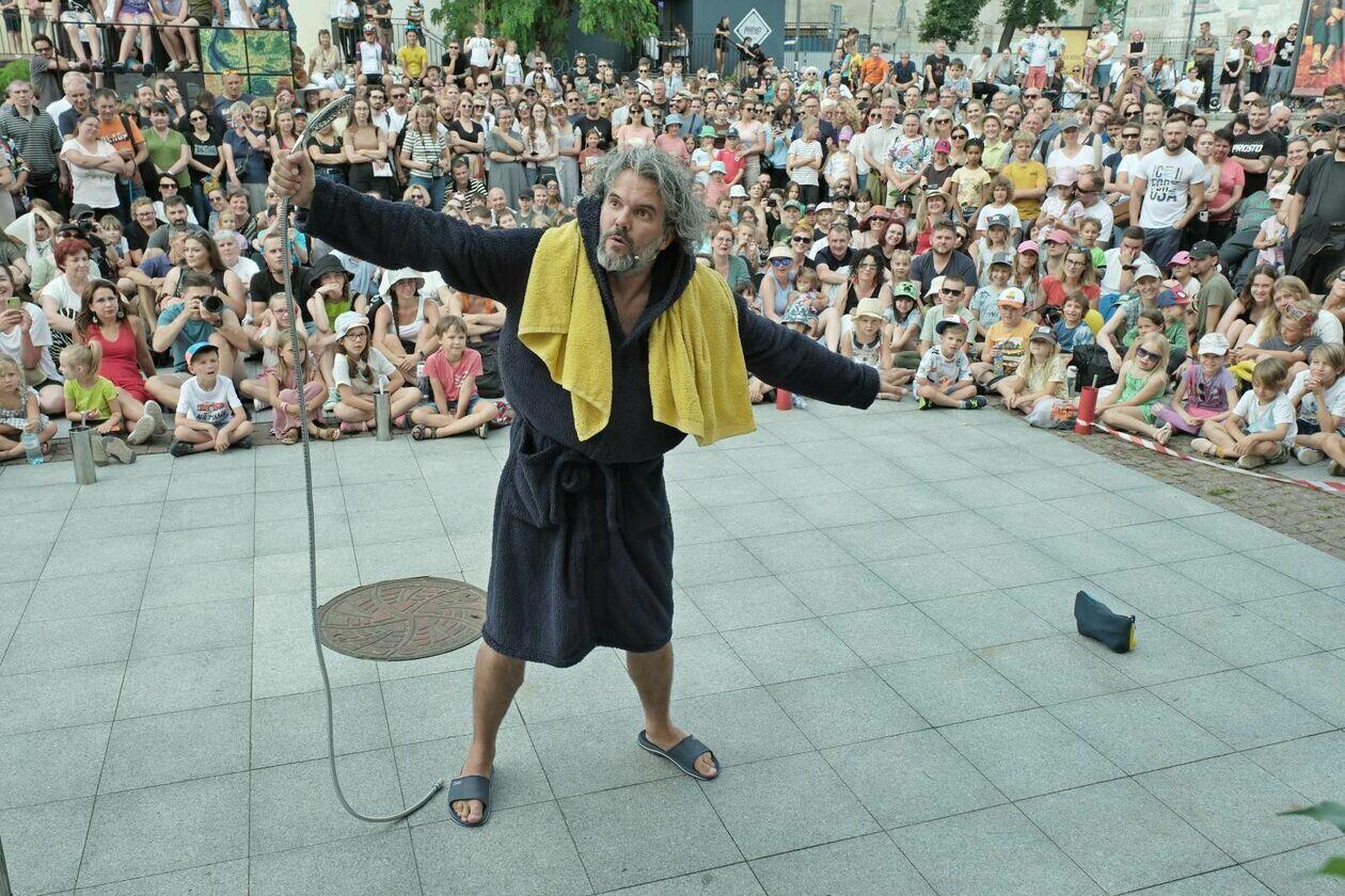 Na placu przed Centrum Kultury występuje Tres de la nada ze skeczem “H2Ooops”