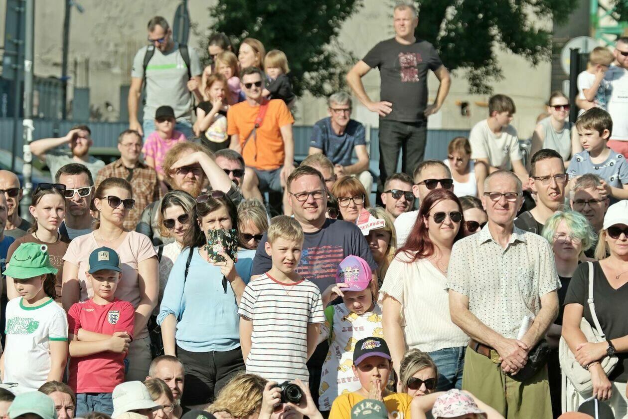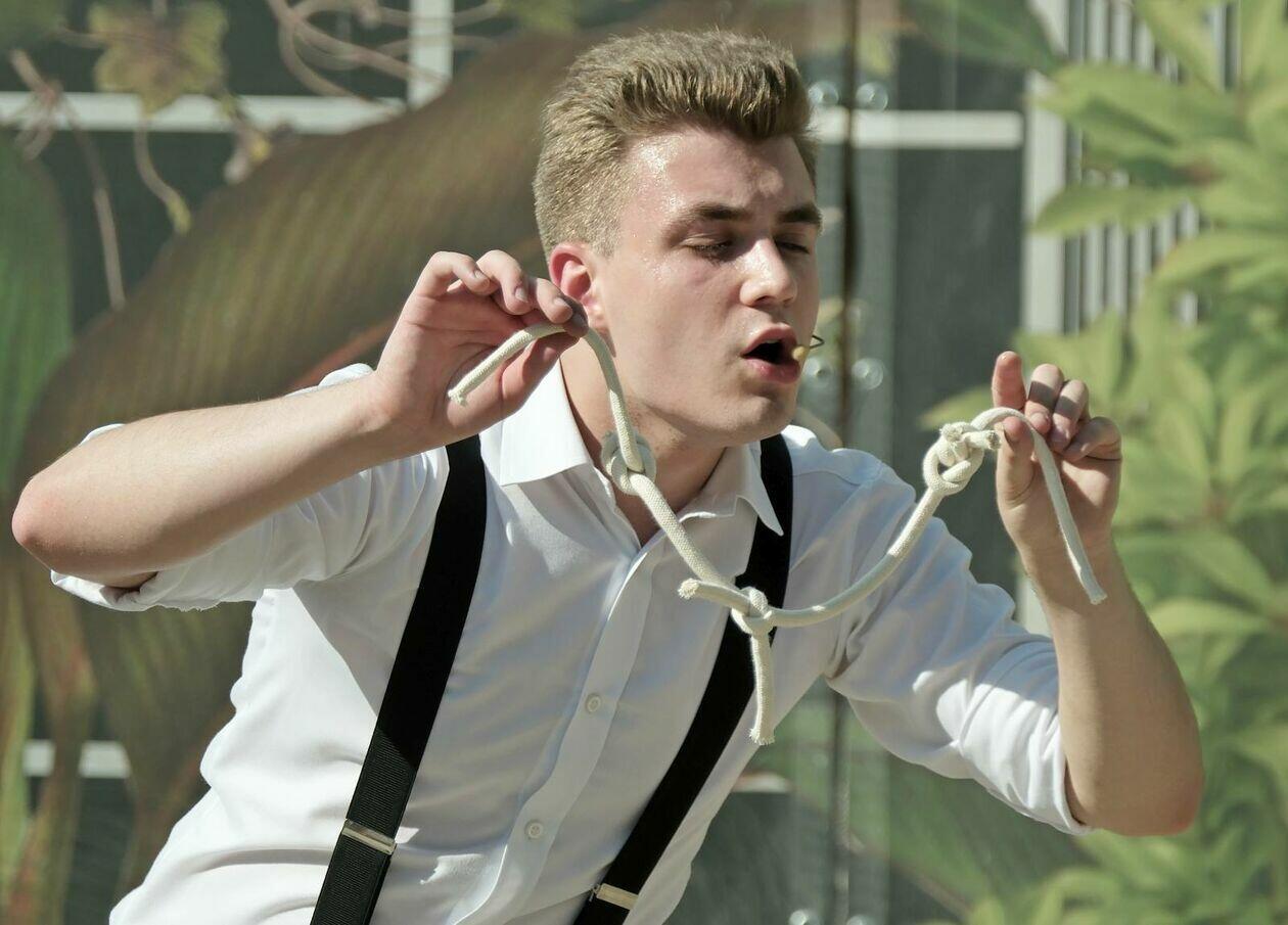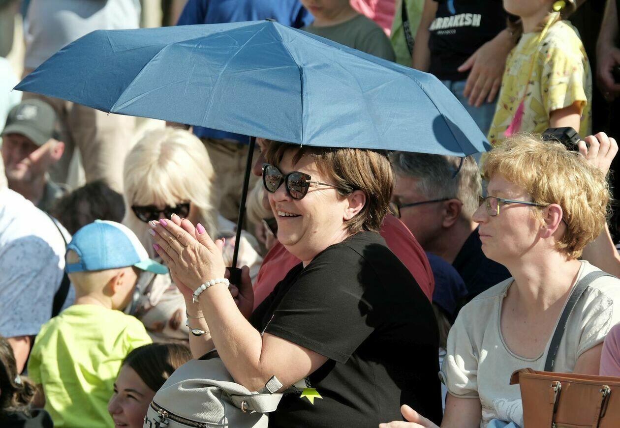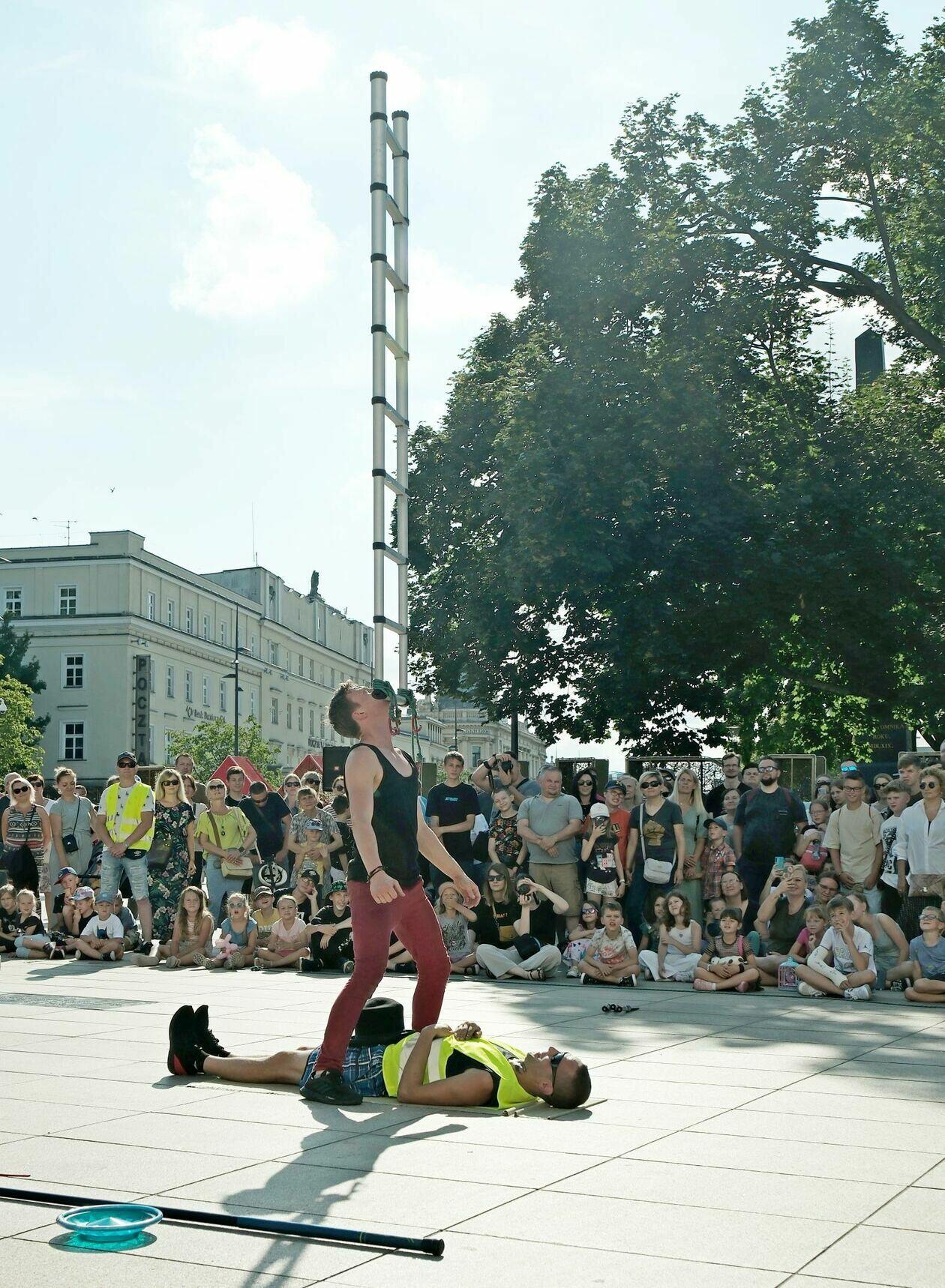 Na placu przed Centrum Kultury występuje Tres de la nada ze skeczem “H2Ooops”