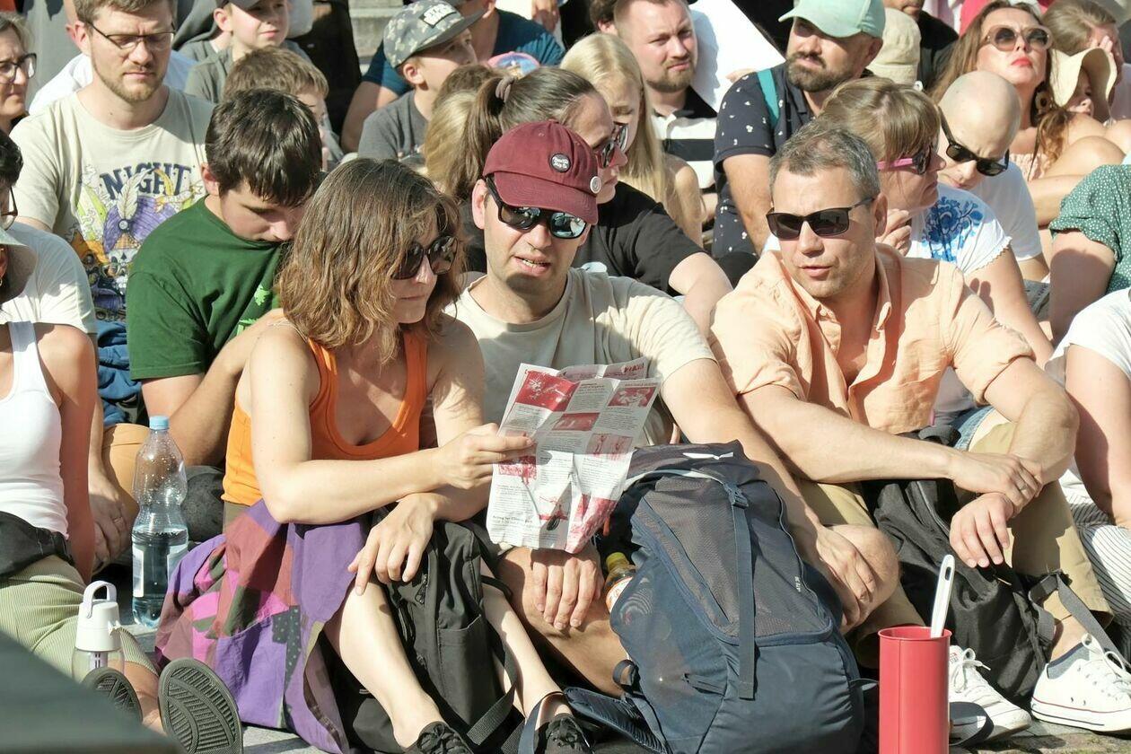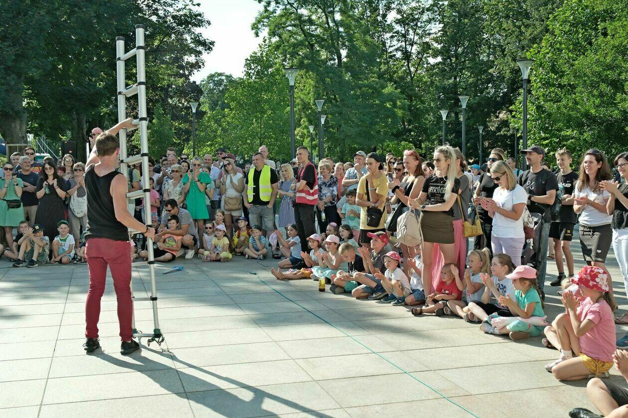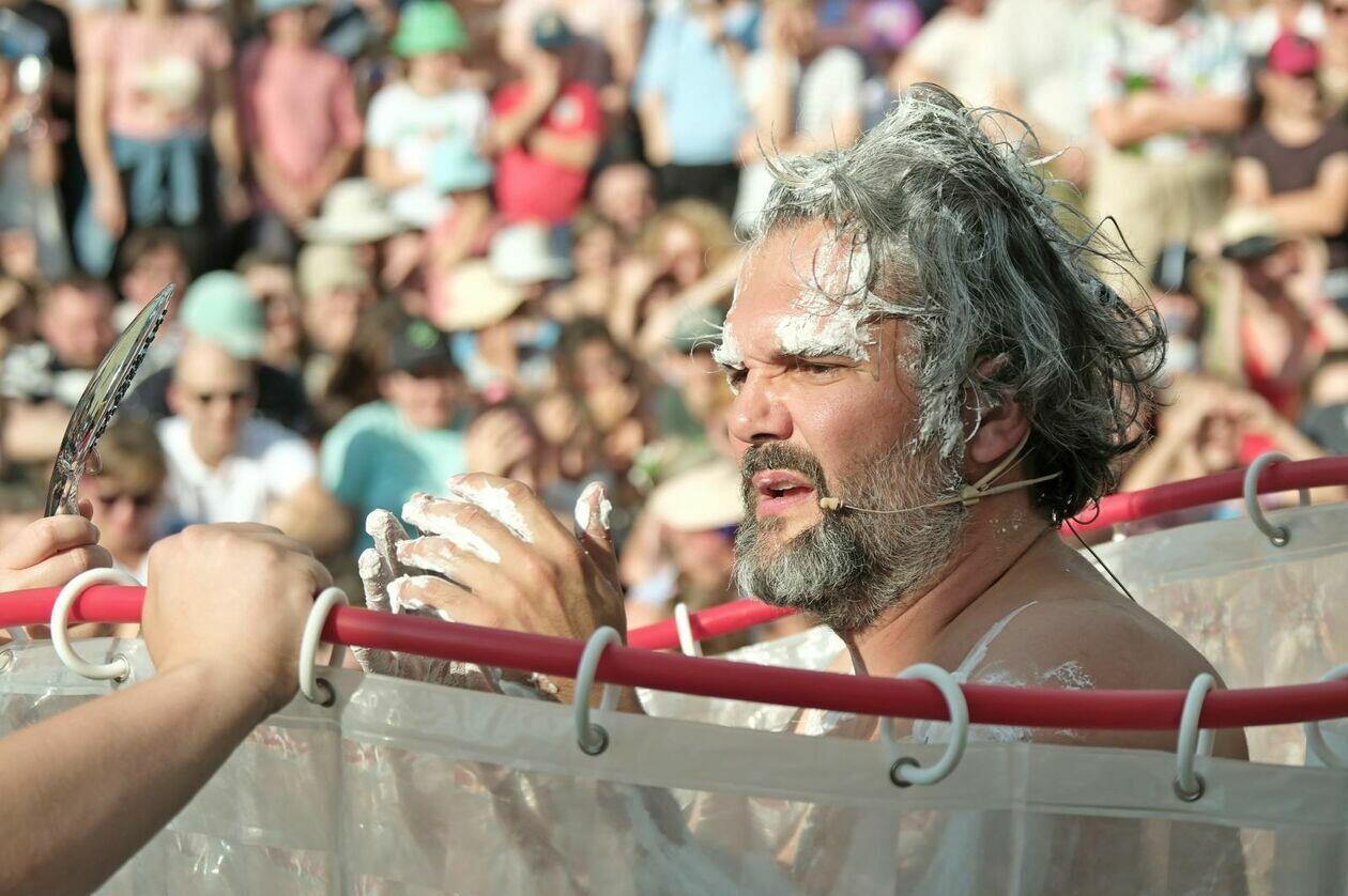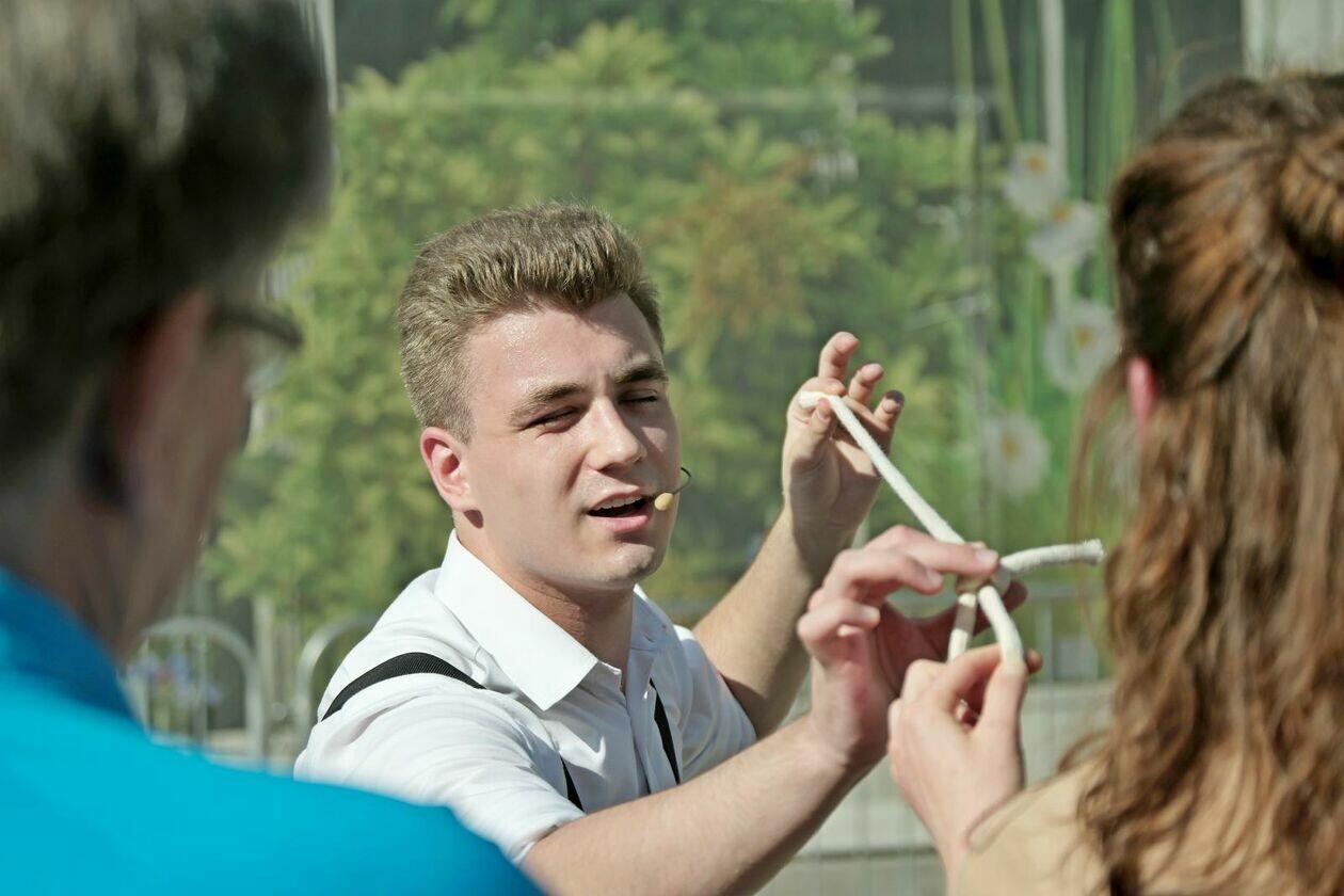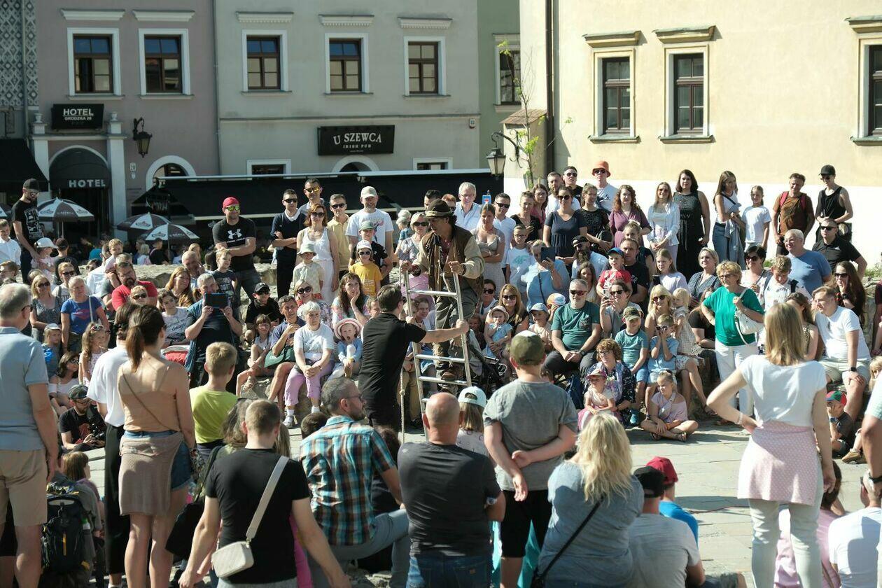 Na placu przed Centrum Kultury występuje Tres de la nada ze skeczem “H2Ooops”