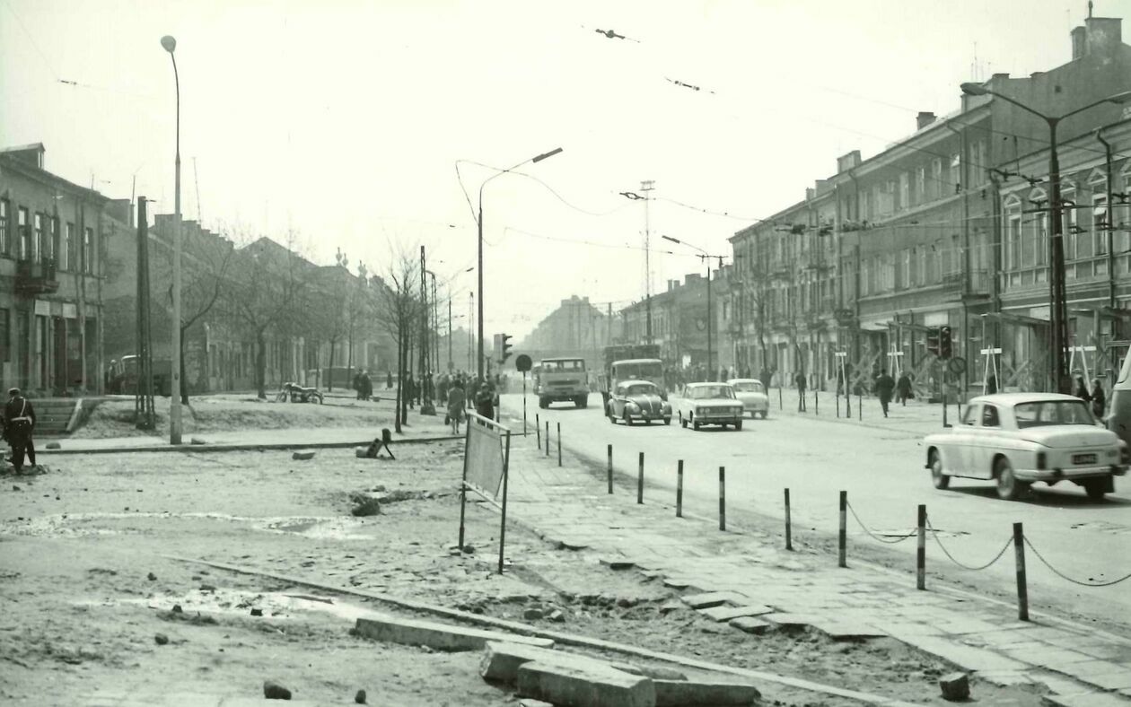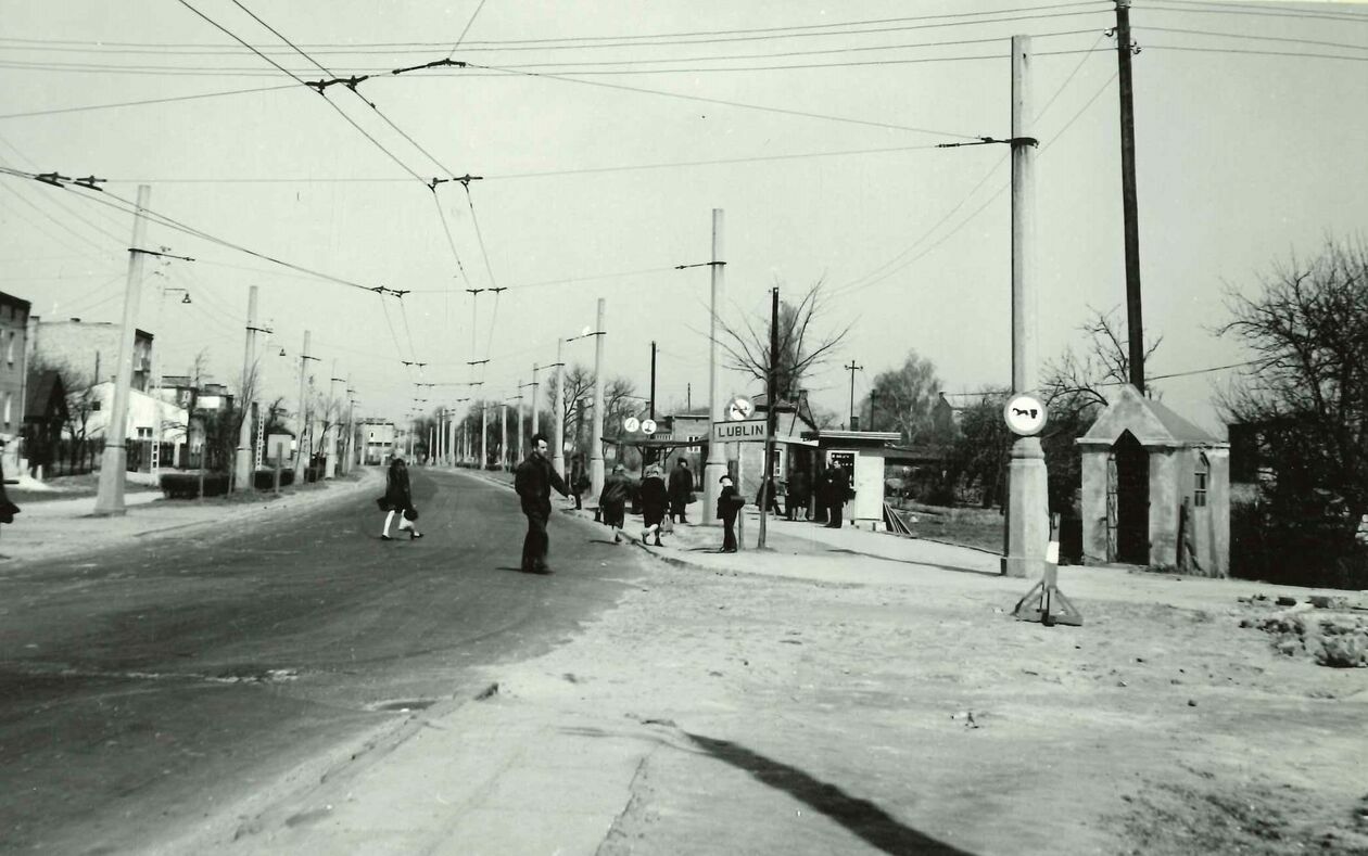 Ul. Kunickiego. Skrzyżowanie z ul. Wyścigową. W tle istniejąca obecnie kamienica przy ul. Kunickiego 79