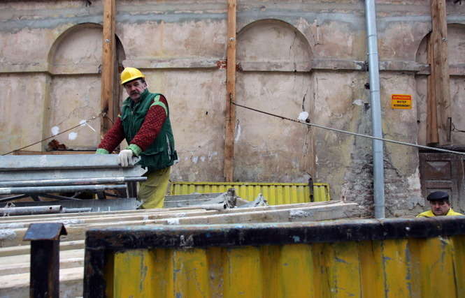 Trwa remont Teatru Starego. Aby ocalić ściany budynku, budowlańcy musieli zrobić wykop wysokości dwu kondygnacji.