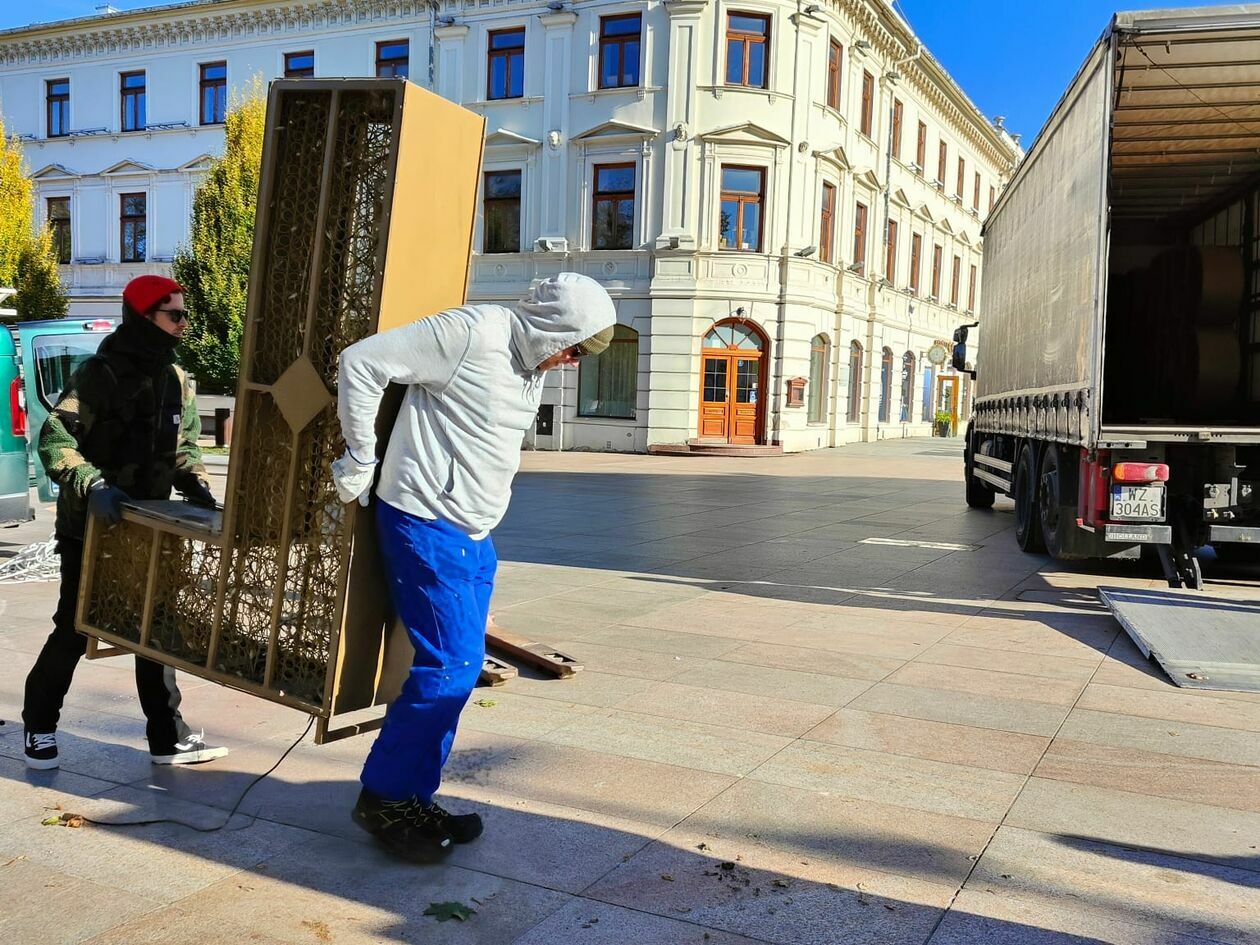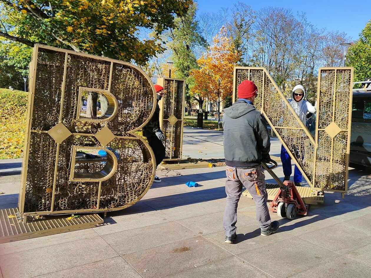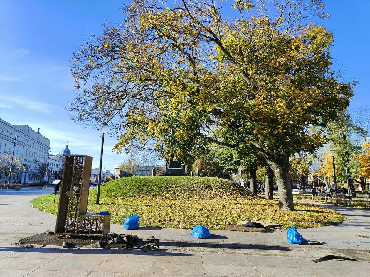 Demontaż napisu z placu Litewskiego