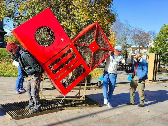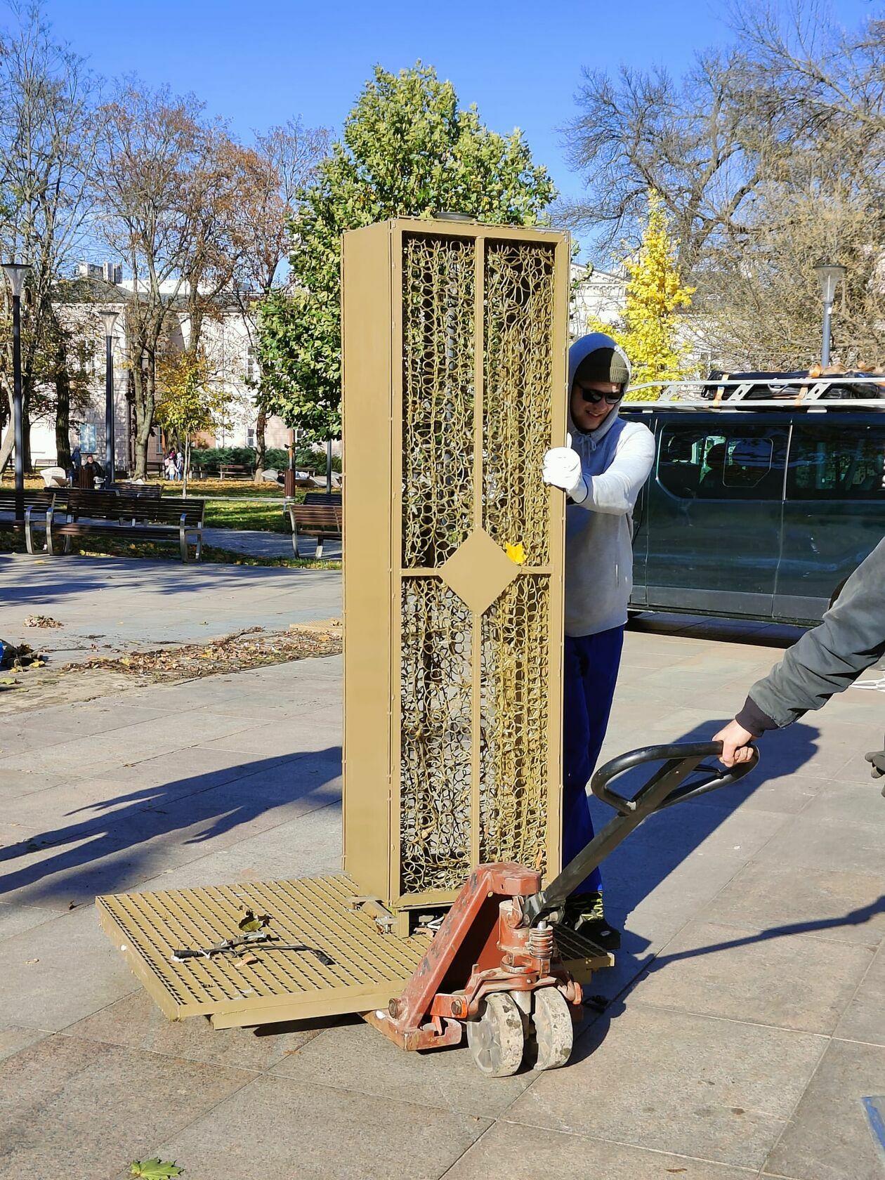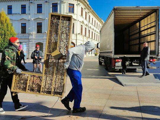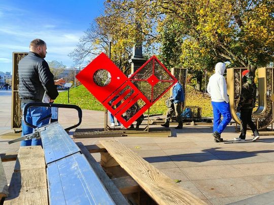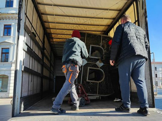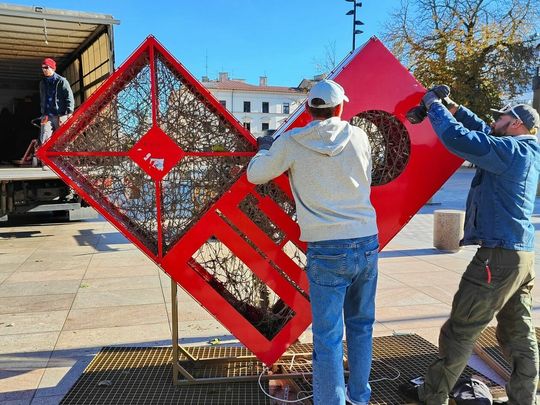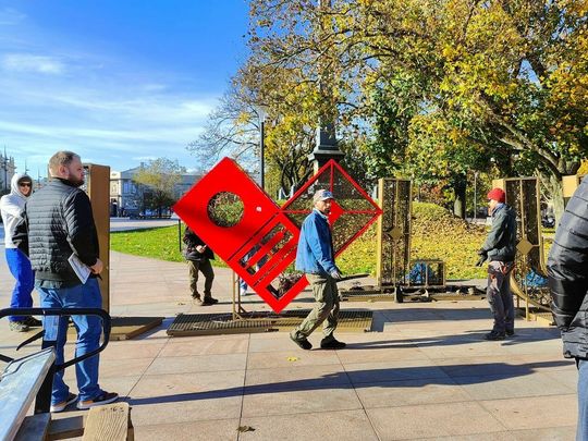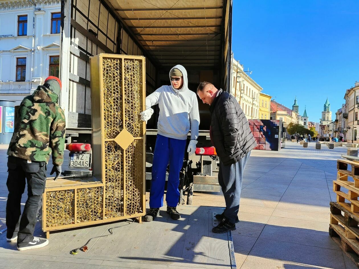 Demontaż napisu z placu Litewskiego